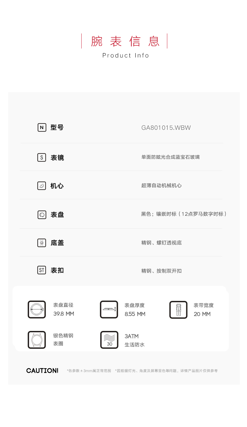 飞亚达马赫系列“歼-20”战斗机联名限定款自动机械腕表GA881000.WBB/GA881001.WBB