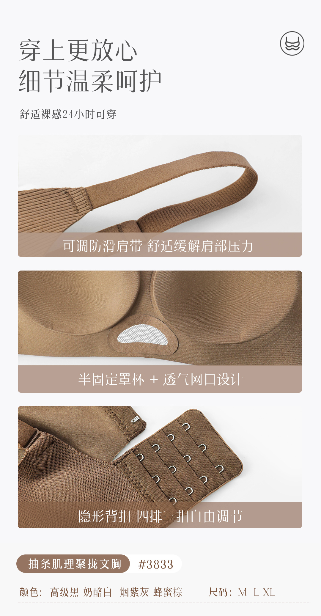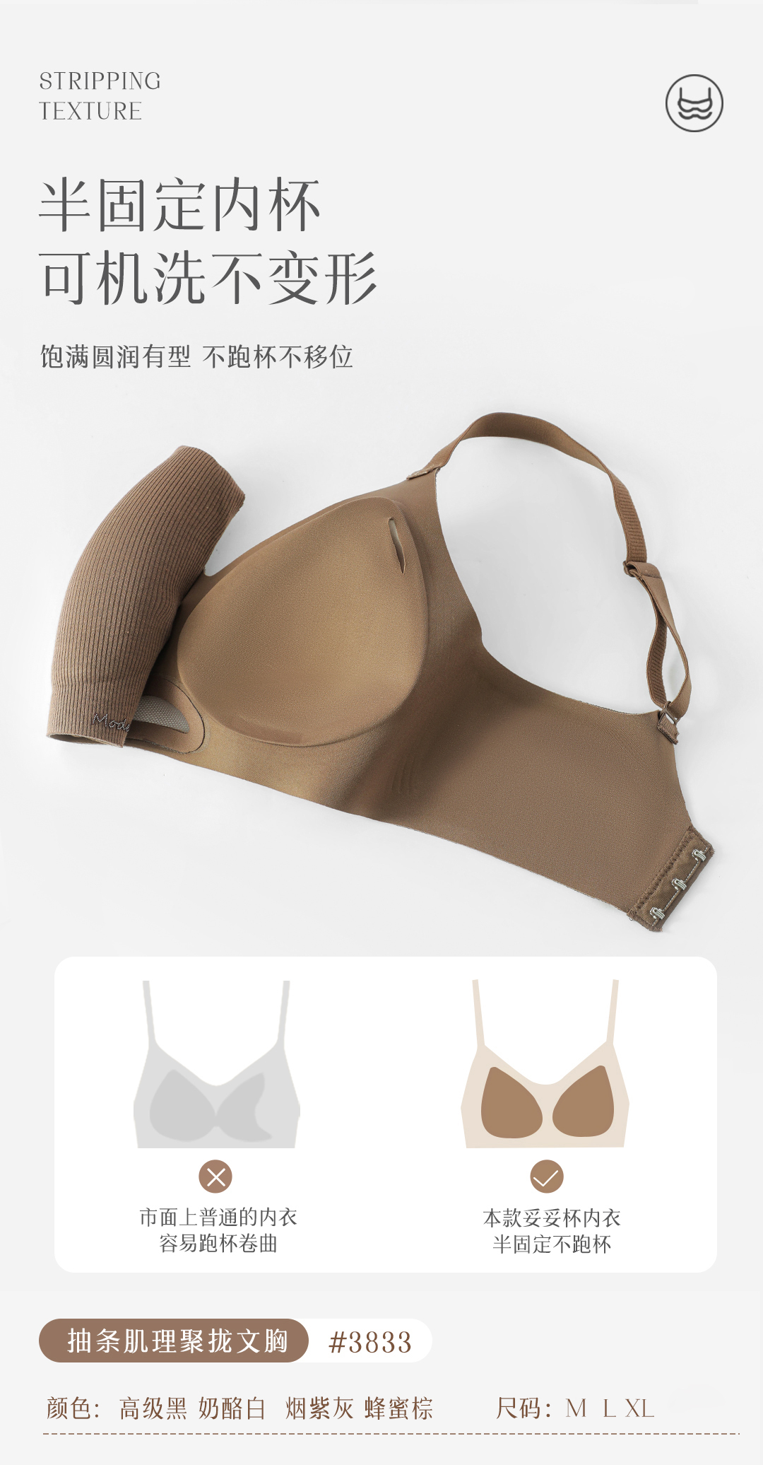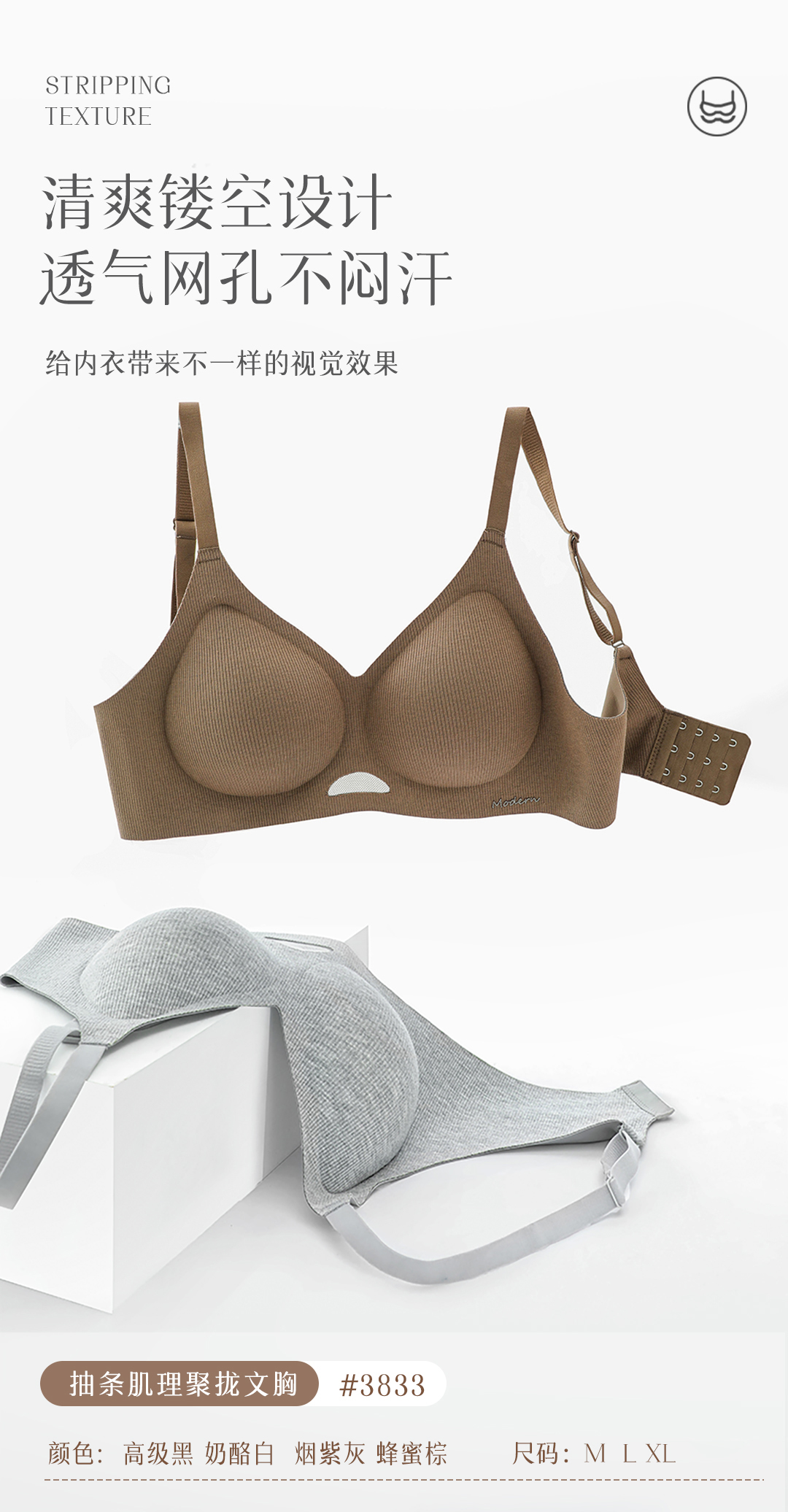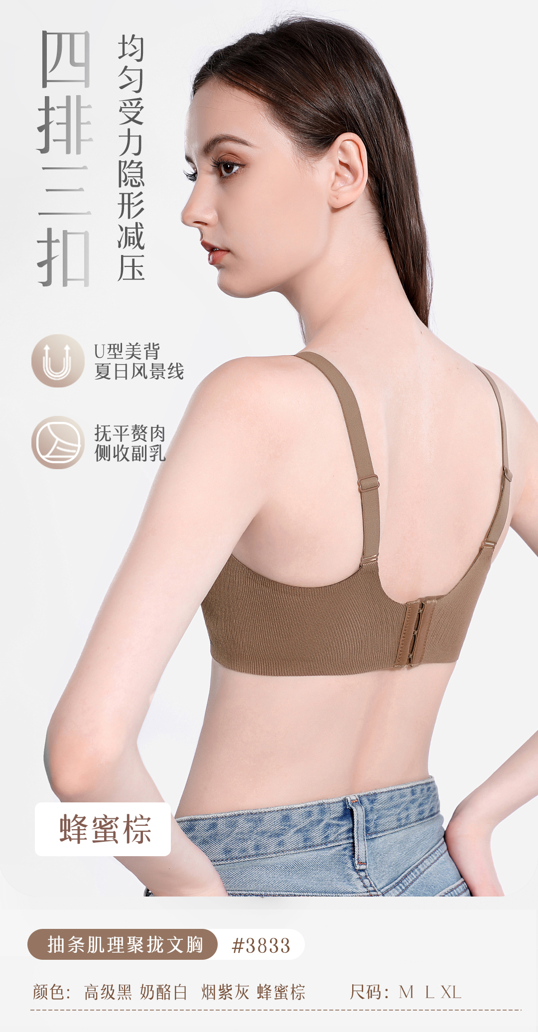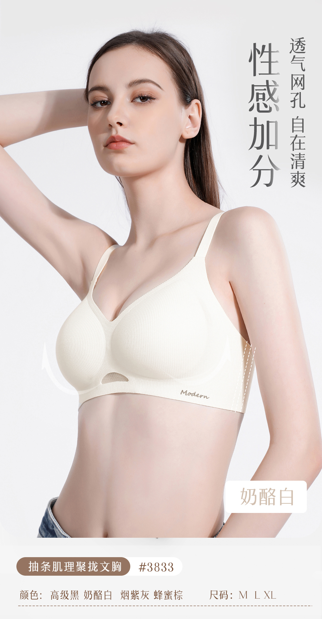 【买一送一】舒妍娜螺纹透气网孔聚拢文胸 清爽不闷汗 裸感无钢圈 侧边软支撑条提拉上托有型 半固定内杯机洗不变形