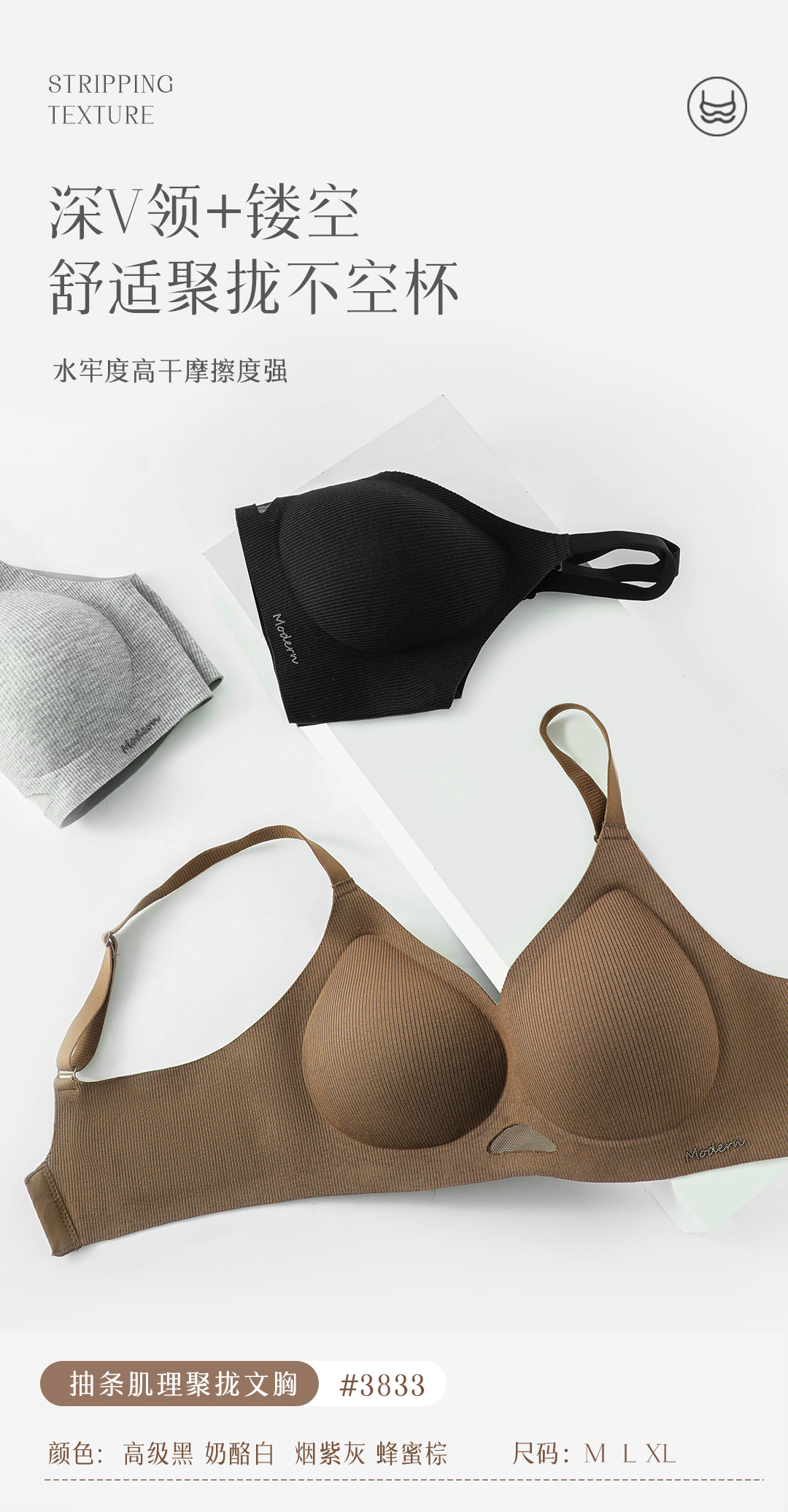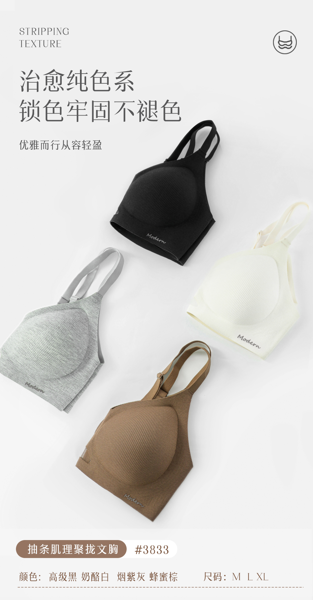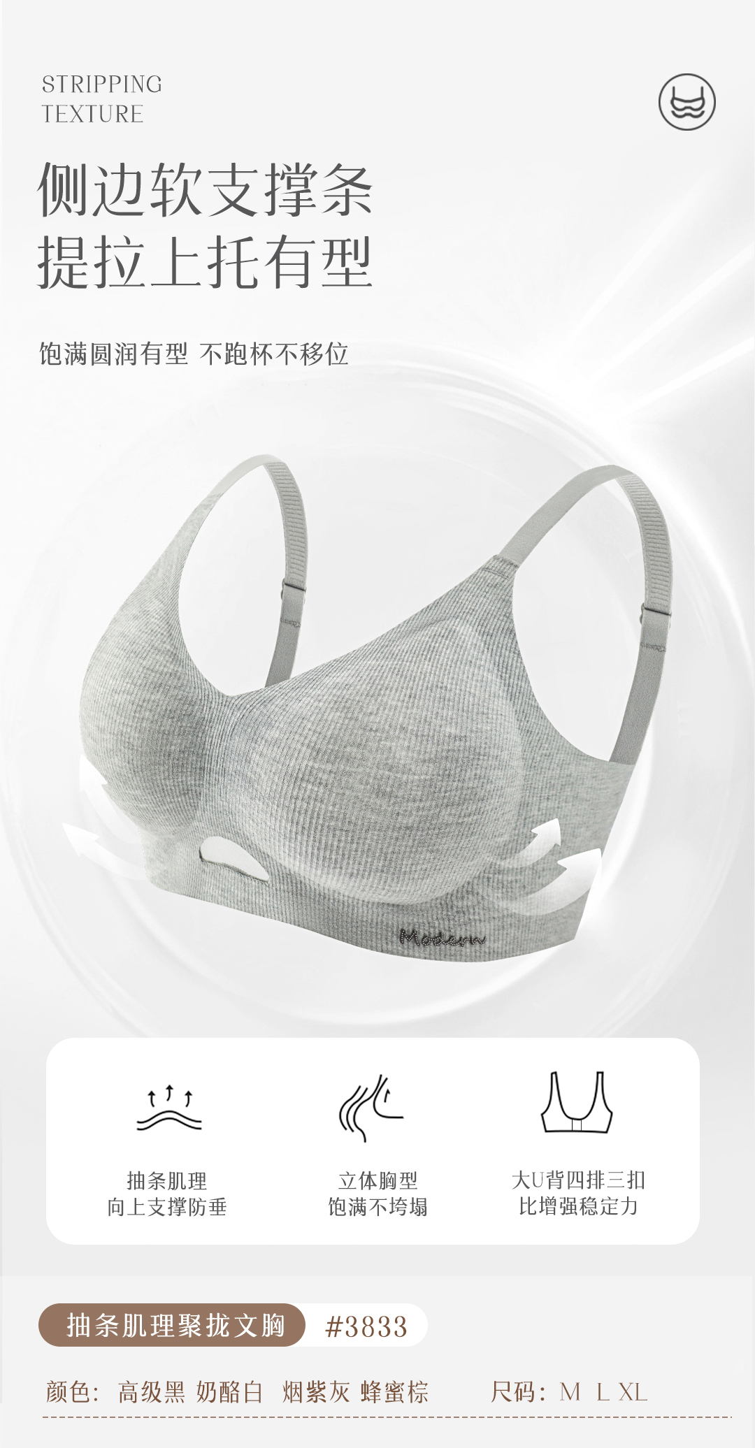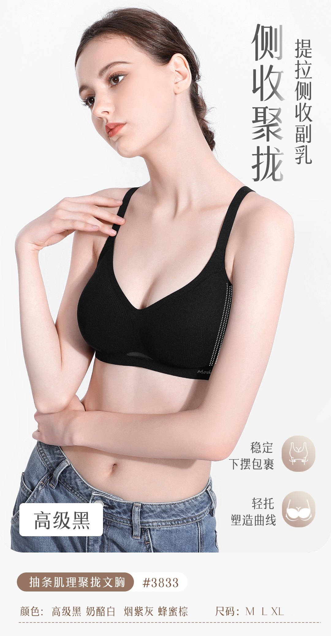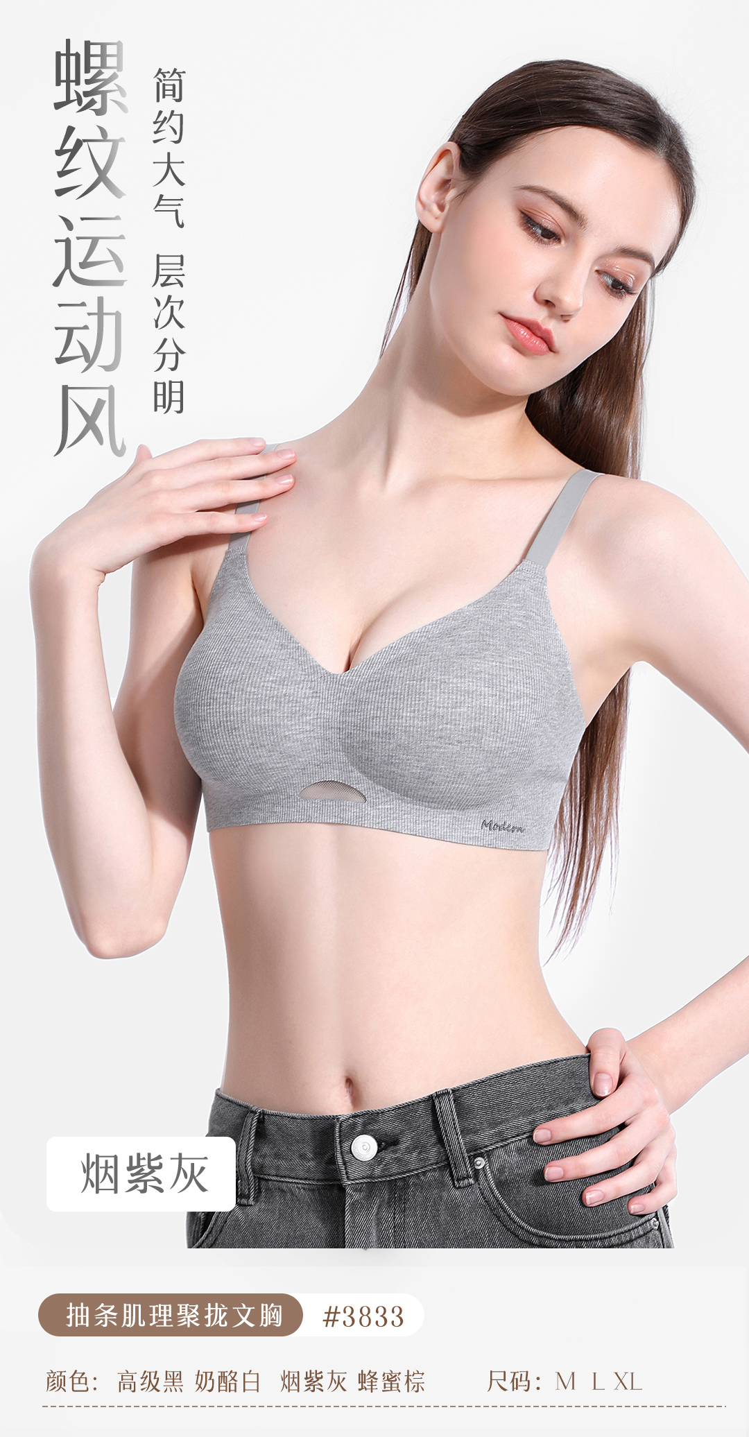 【买一送一】舒妍娜螺纹透气网孔聚拢文胸 清爽不闷汗 裸感无钢圈 侧边软支撑条提拉上托有型 半固定内杯机洗不变形