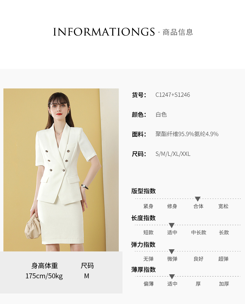 IWY/ 新品白色短袖西装裤子半裙套装C1247+S1246