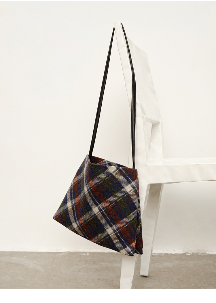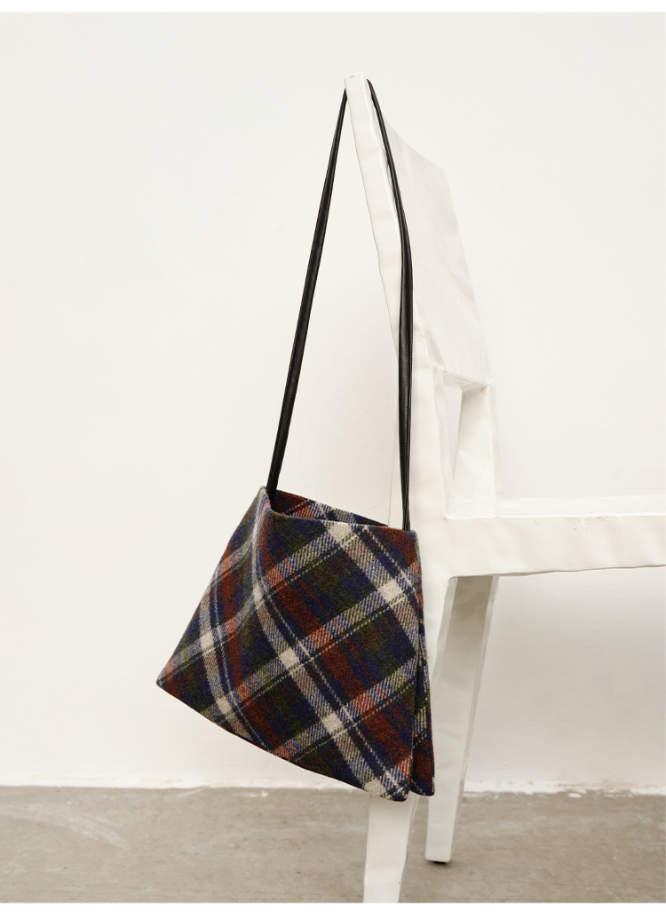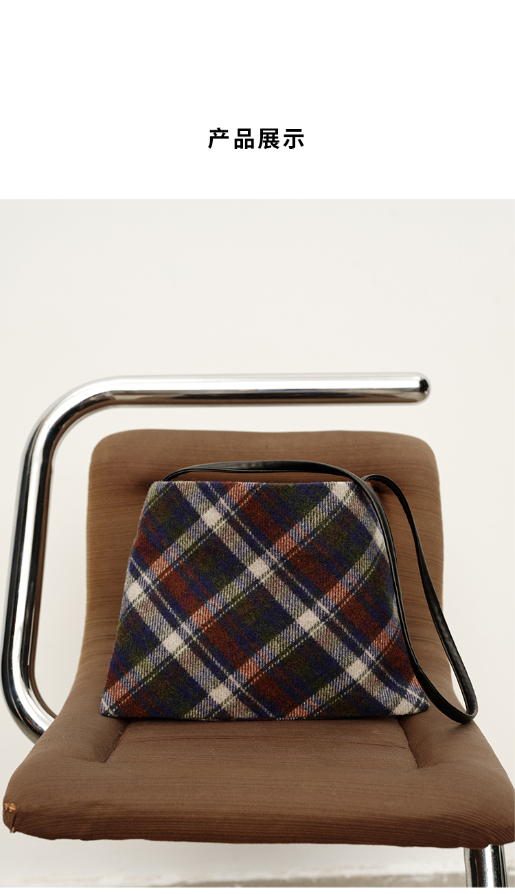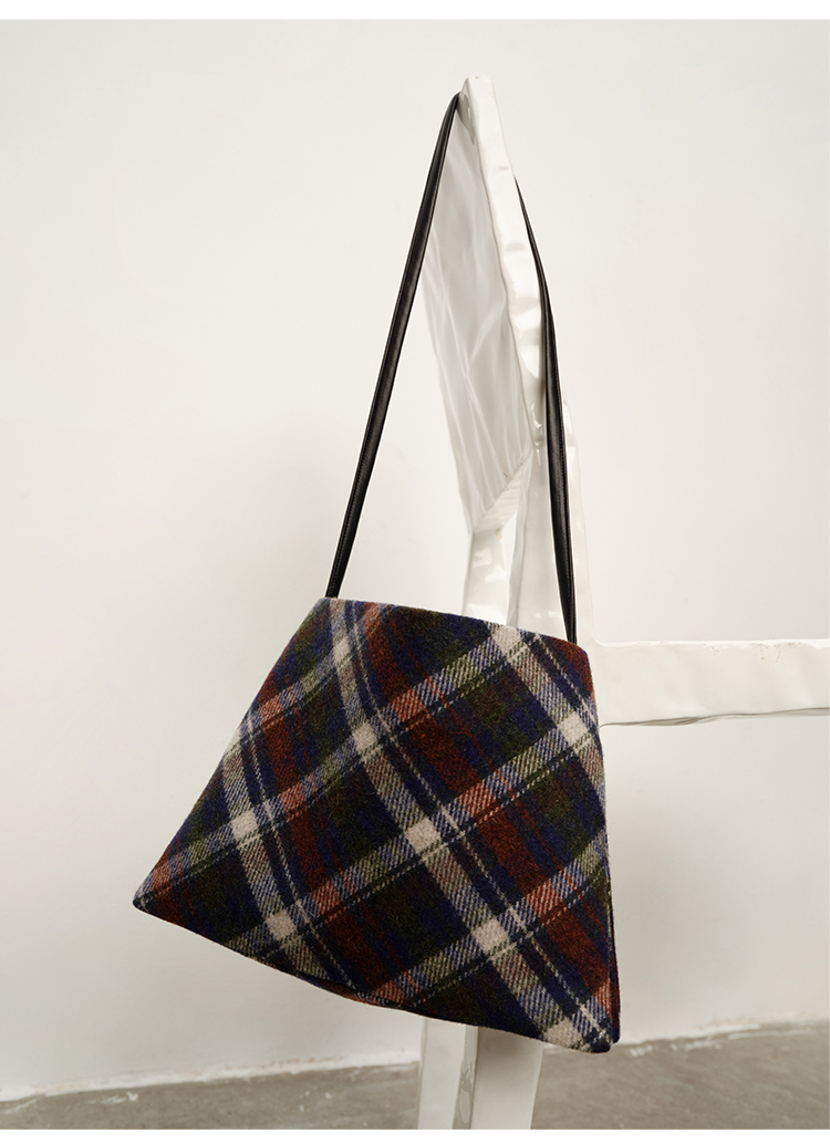 HIDEMI 复古色织格纹羊毛双层极简方形设计感托特单肩包小背包