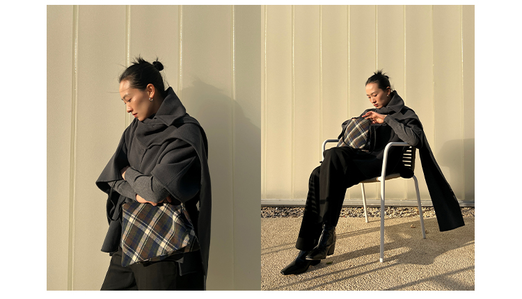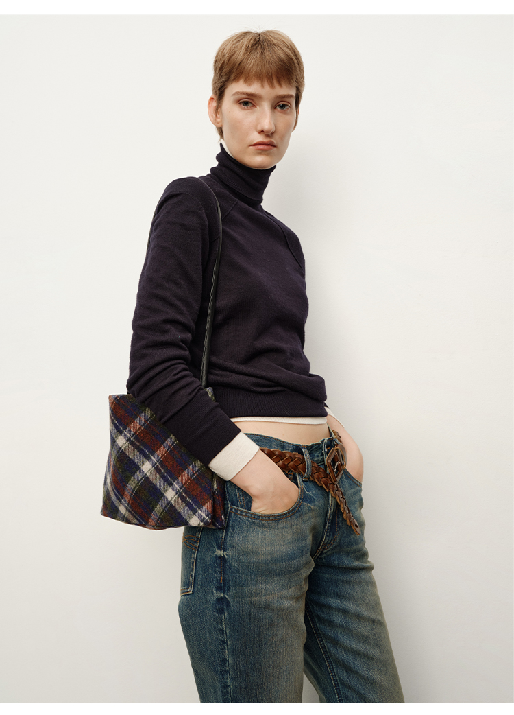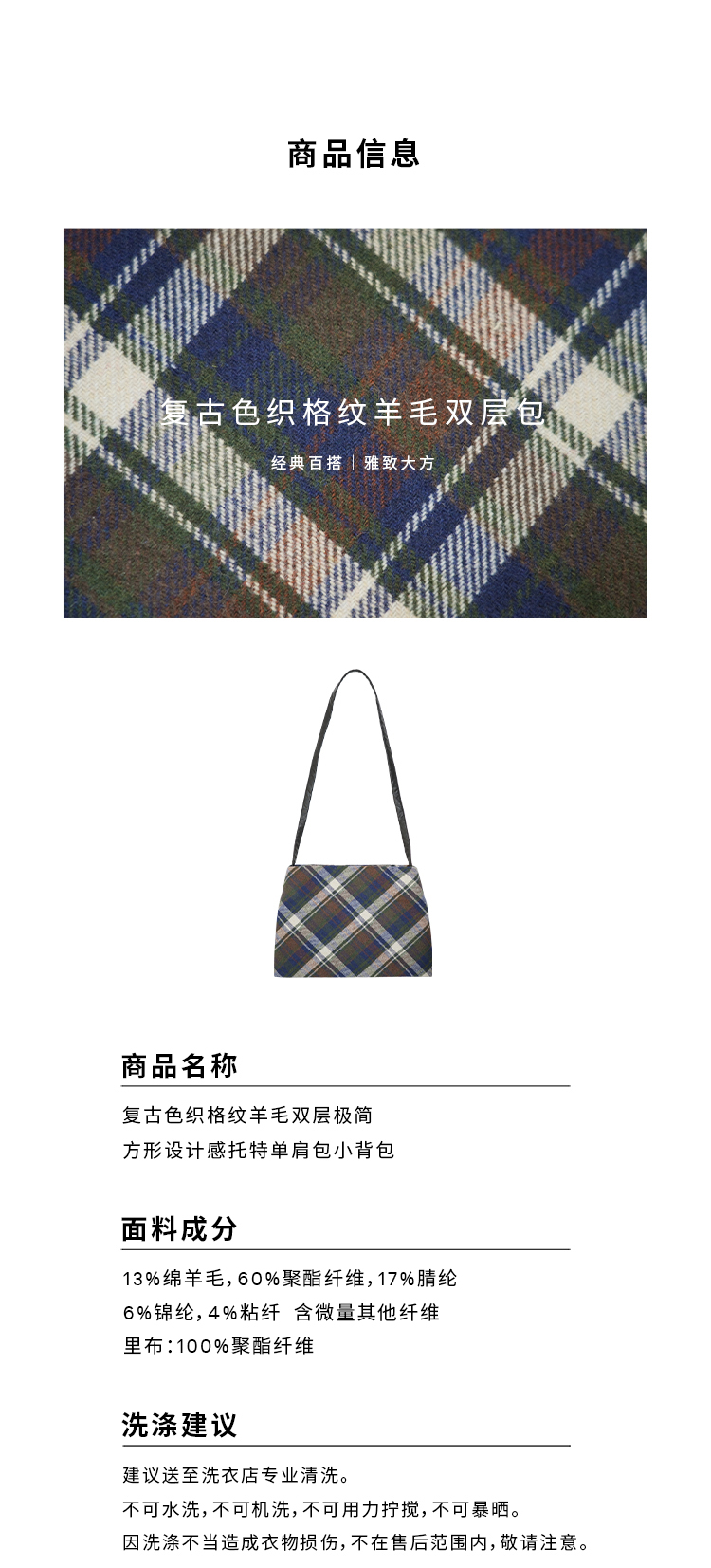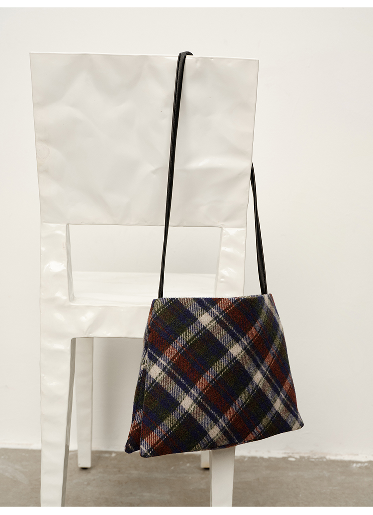 HIDEMI 复古色织格纹羊毛双层极简方形设计感托特单肩包小背包