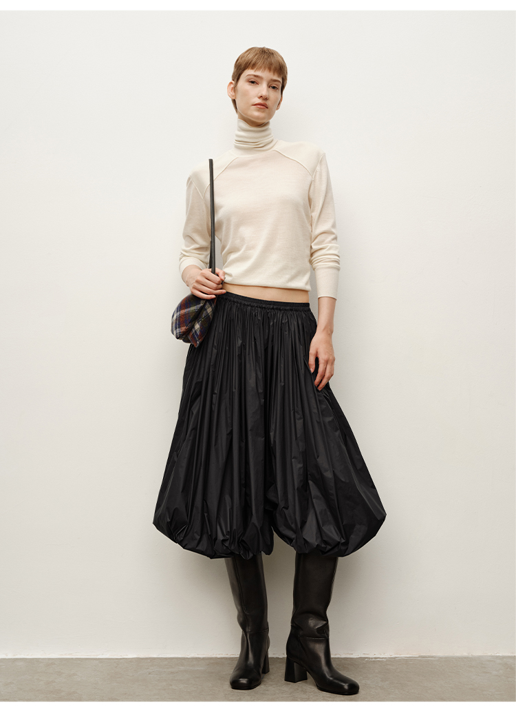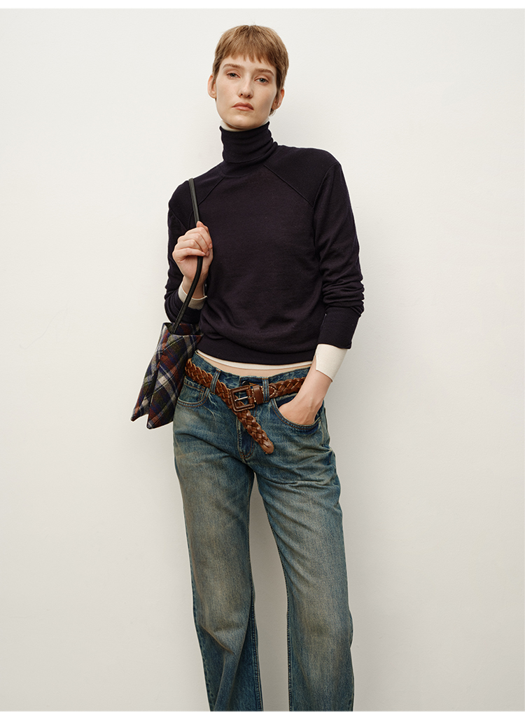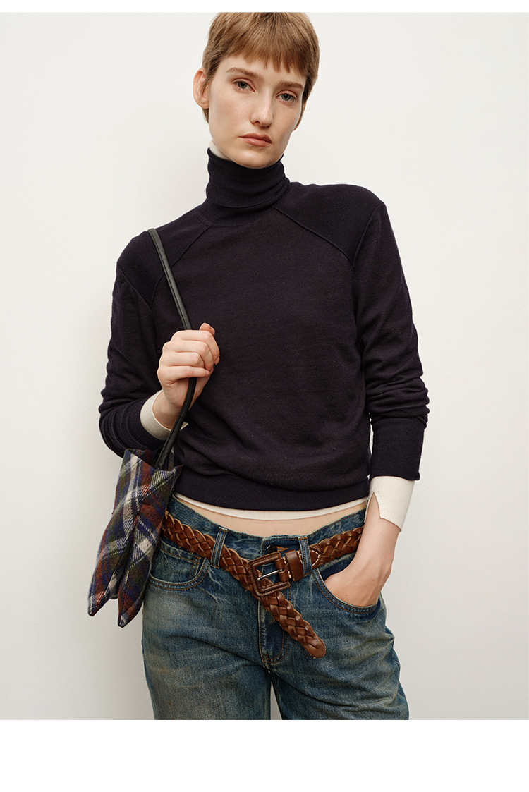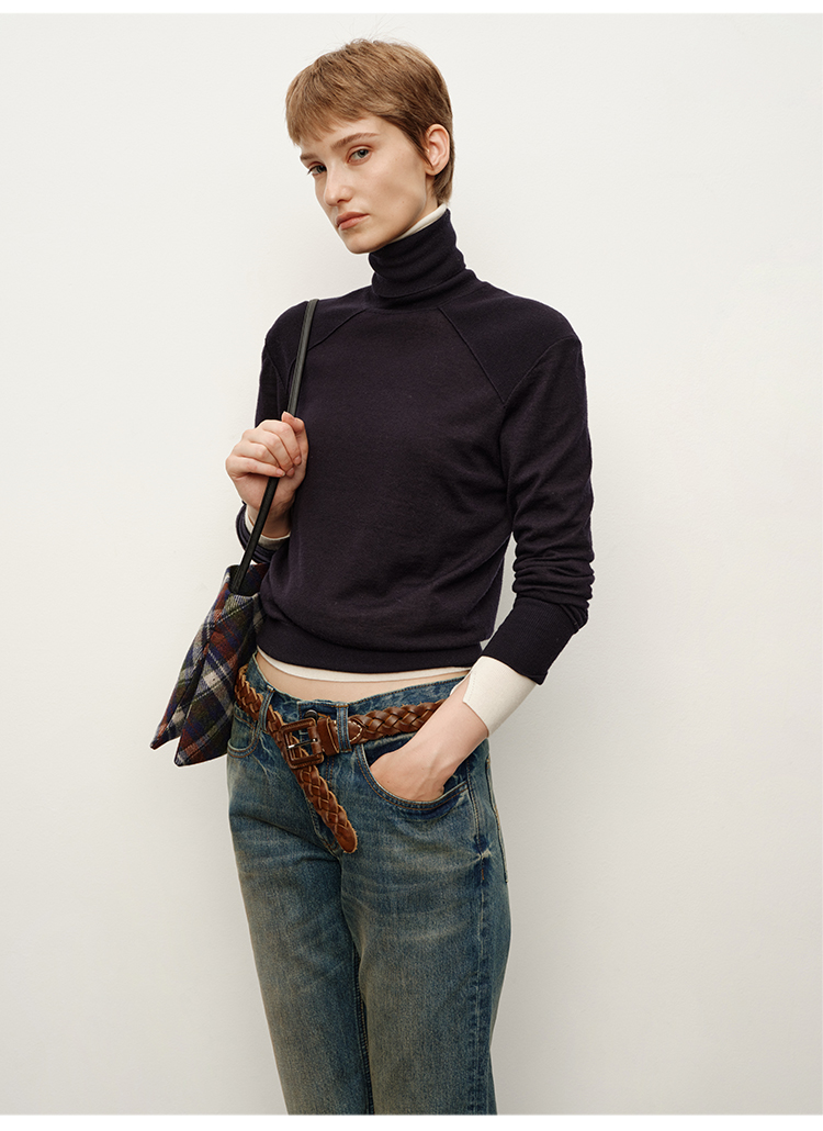 HIDEMI 美利奴超细羊毛立体交叉打结款V领修身毛衣 原白色/深摩卡/黑色