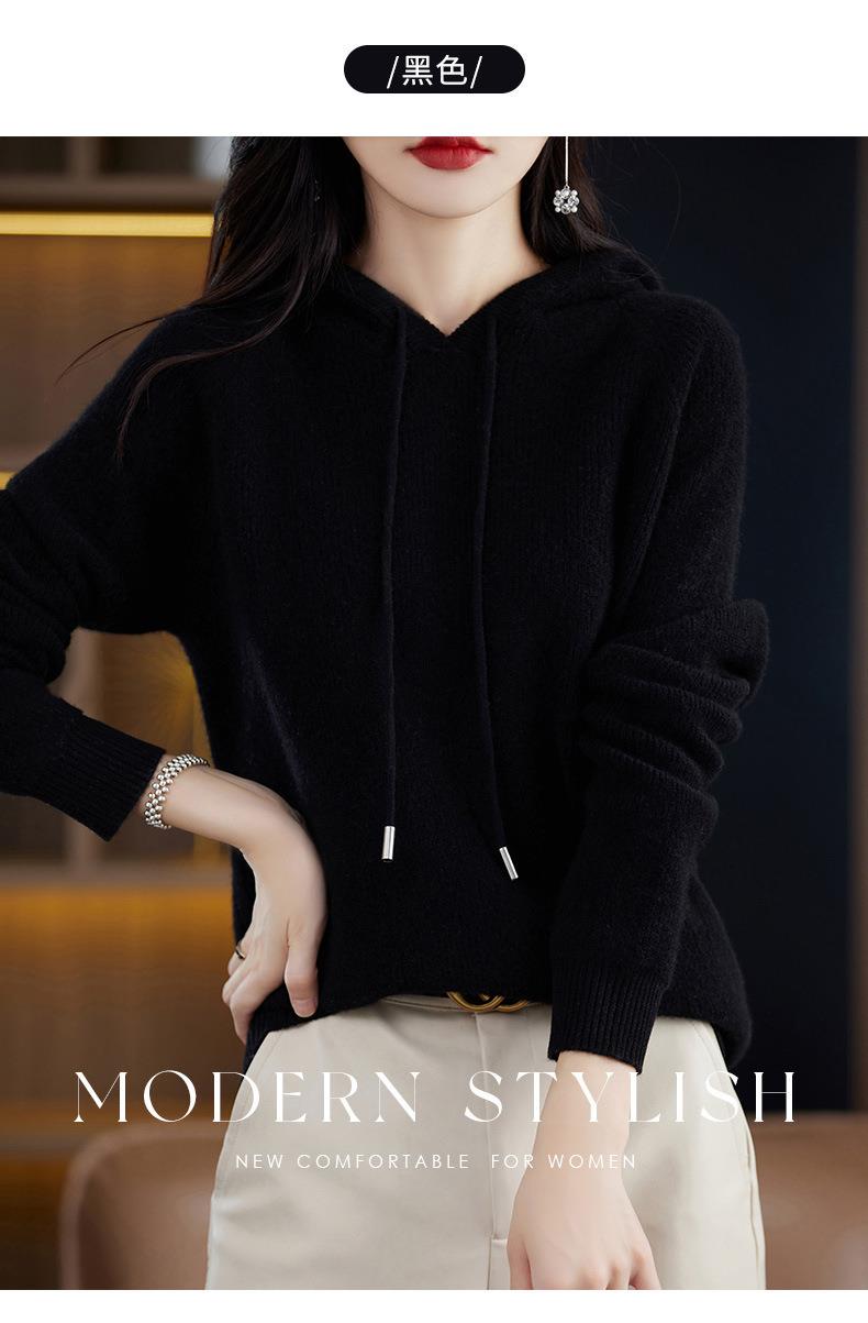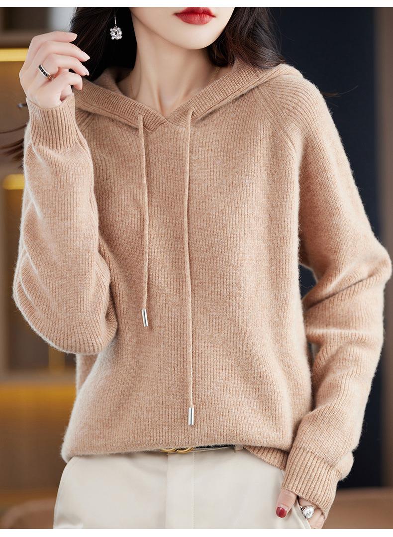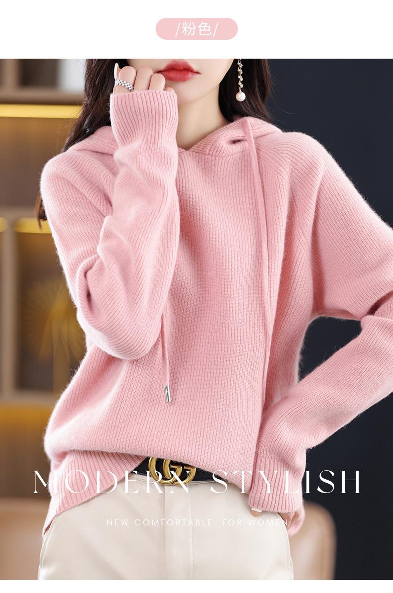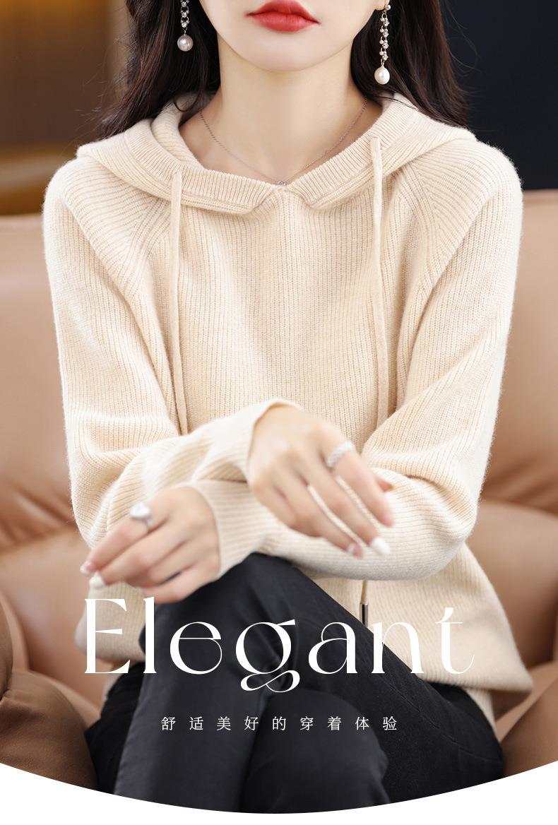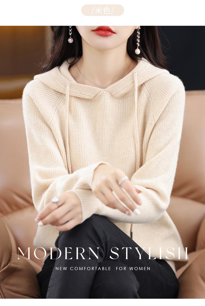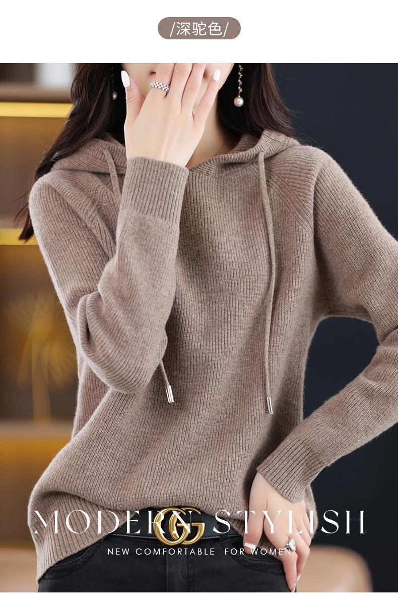 2023秋冬毛衣女针织衫帽衫连帽厚款外套绒衫宽松