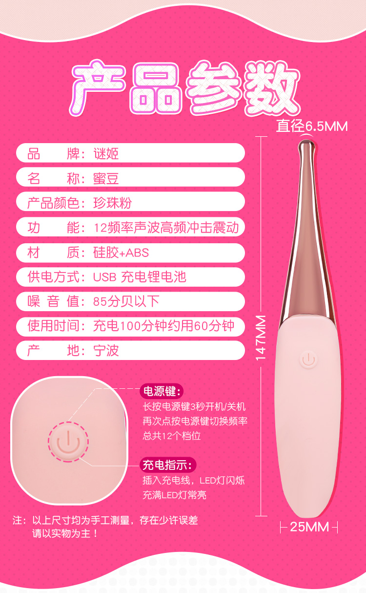 谜姬 蜜豆点潮笔阴蒂刺激高频震动棒点潮笔高频仙女棒G点私处按摩女性抽插处女插入式情趣工具房事女生自慰器兴奋神器 挑逗强震点潮笔
