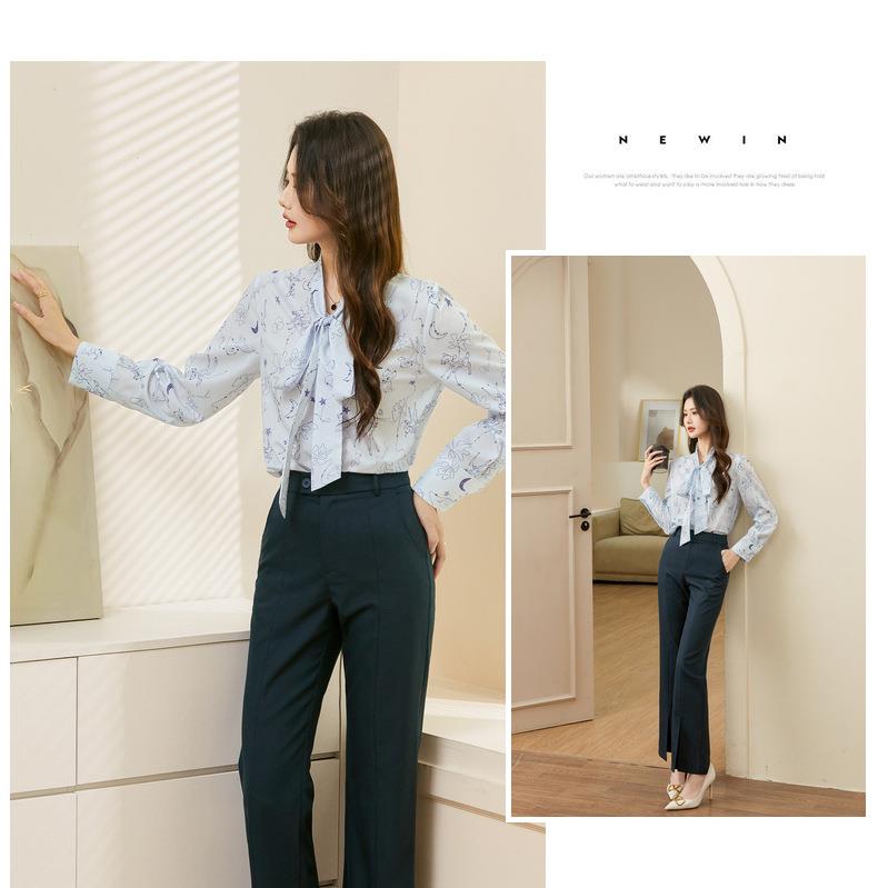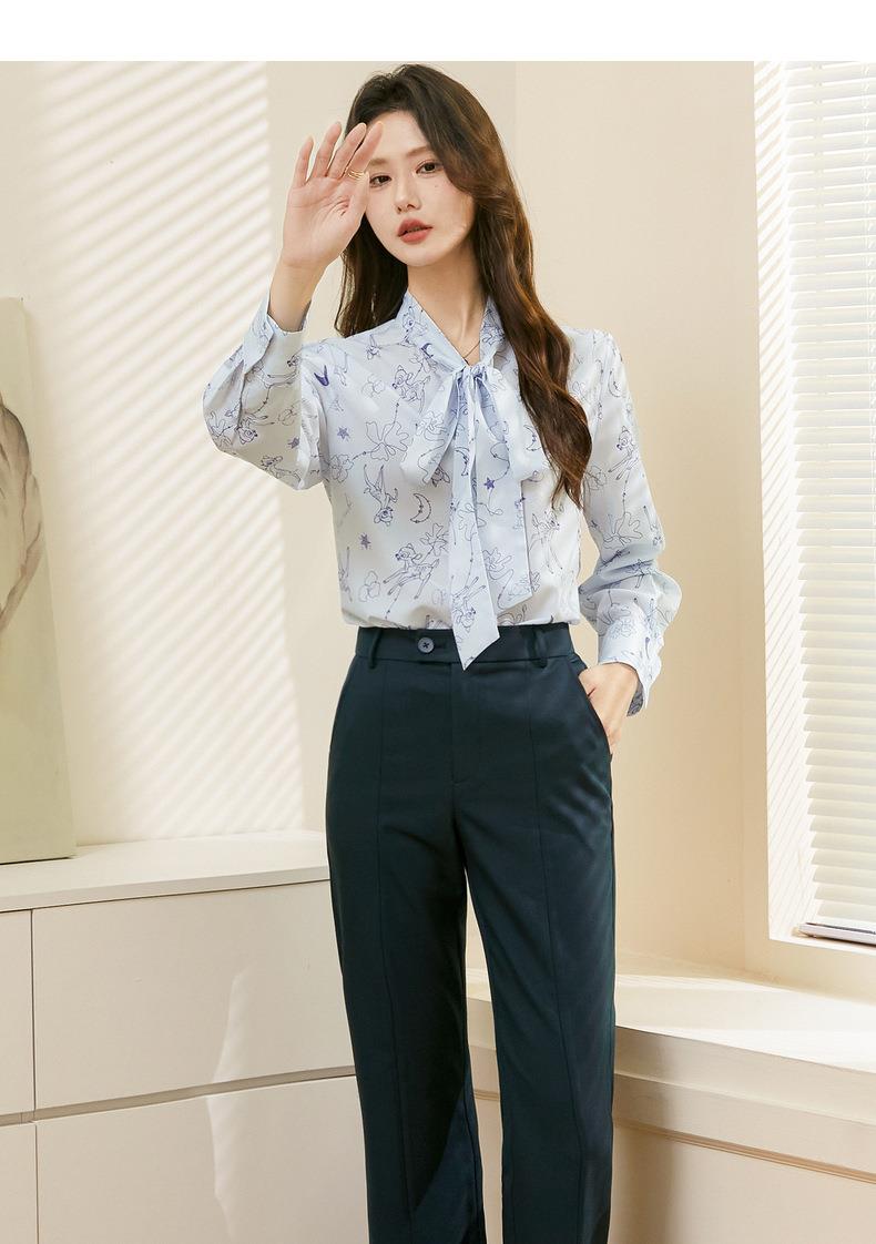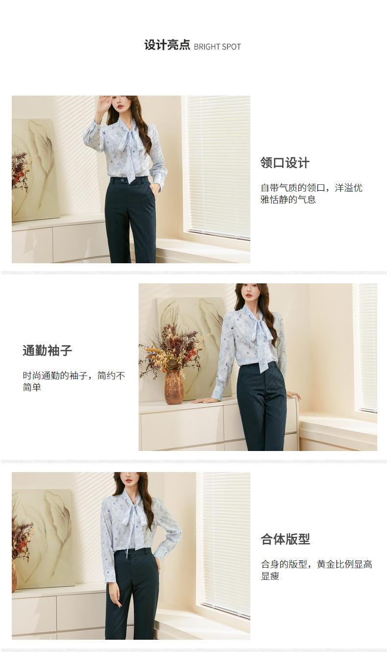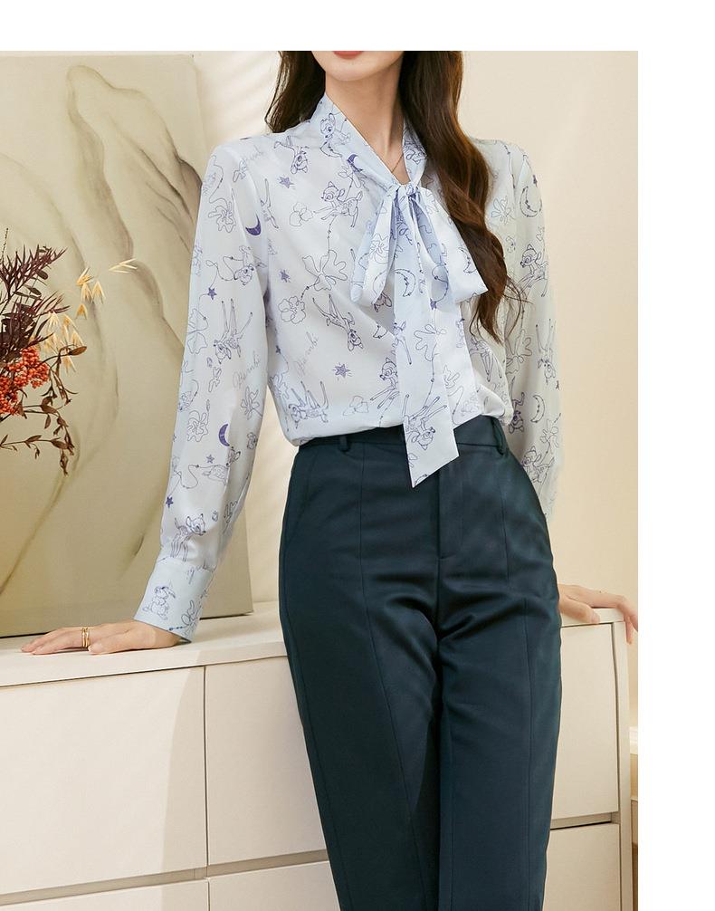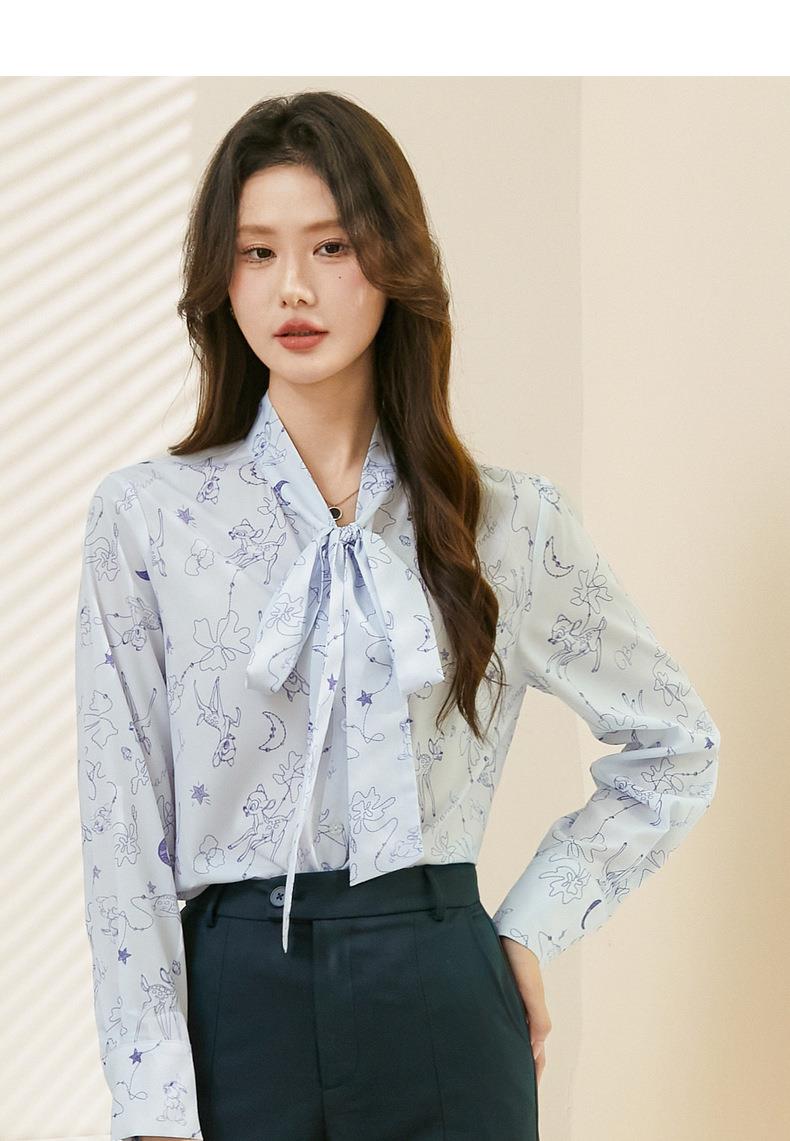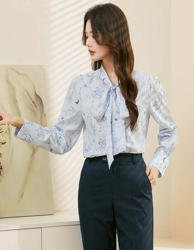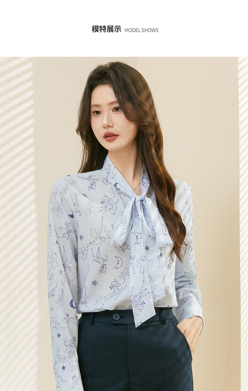 百姿 秋意微凉印花蝴蝶结衬衣2023早秋新款气质长袖衬衫女231243