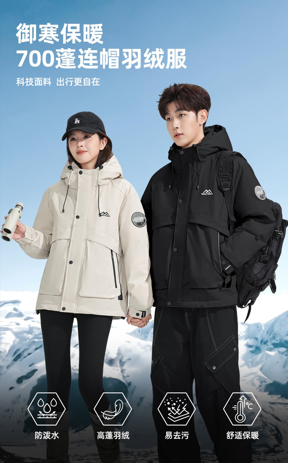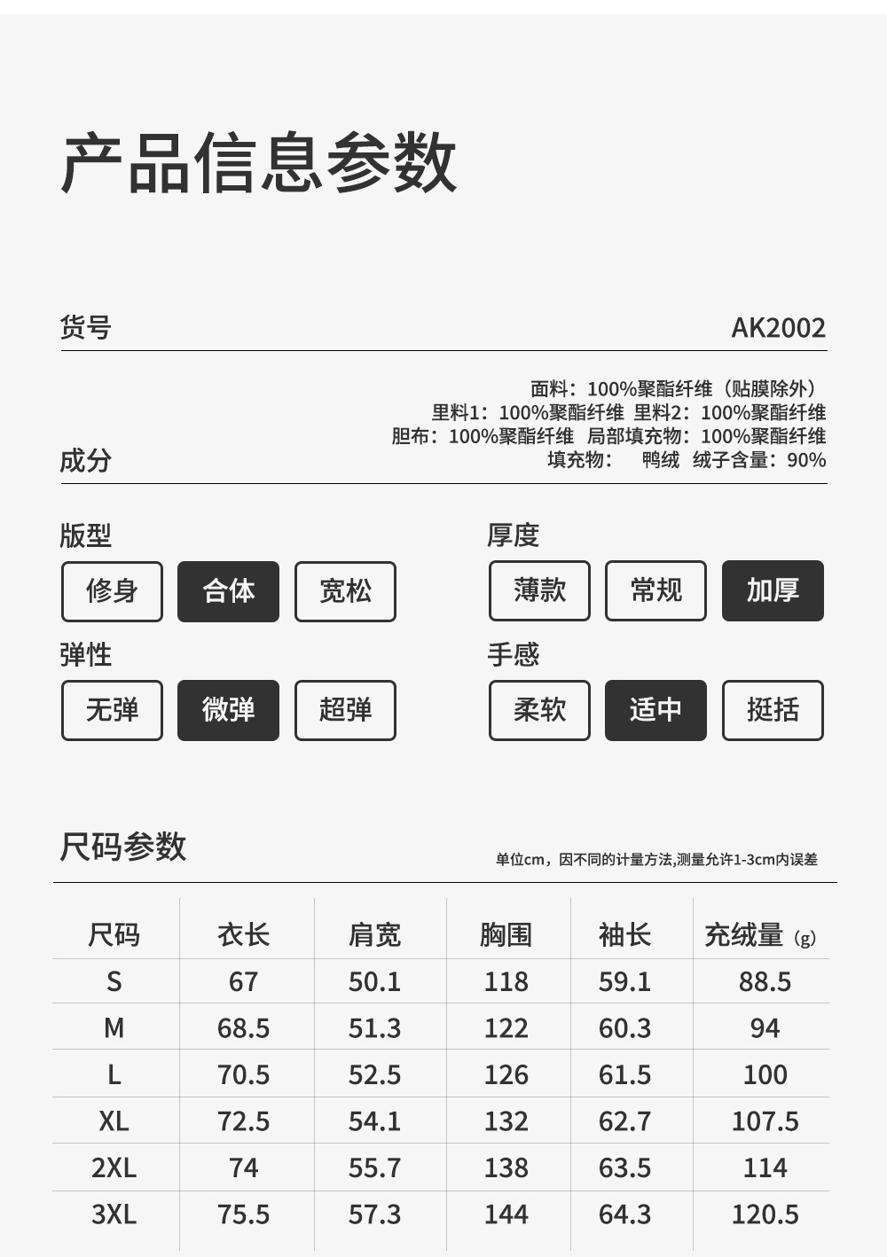 牧荒者漫旅系列情侣款AK2002保暖羽绒服 新国标90鸭绒 后背做了一整片的石墨烯保温贴片 抗寒0度-零下20度天气 6防黑科技 设计时尚,轻松百搭 六防面料 从容应对寒冷天气