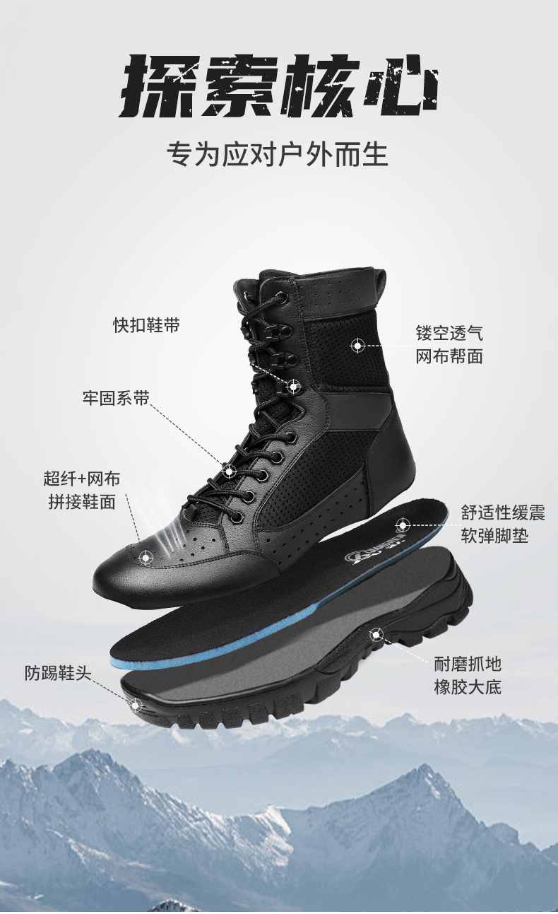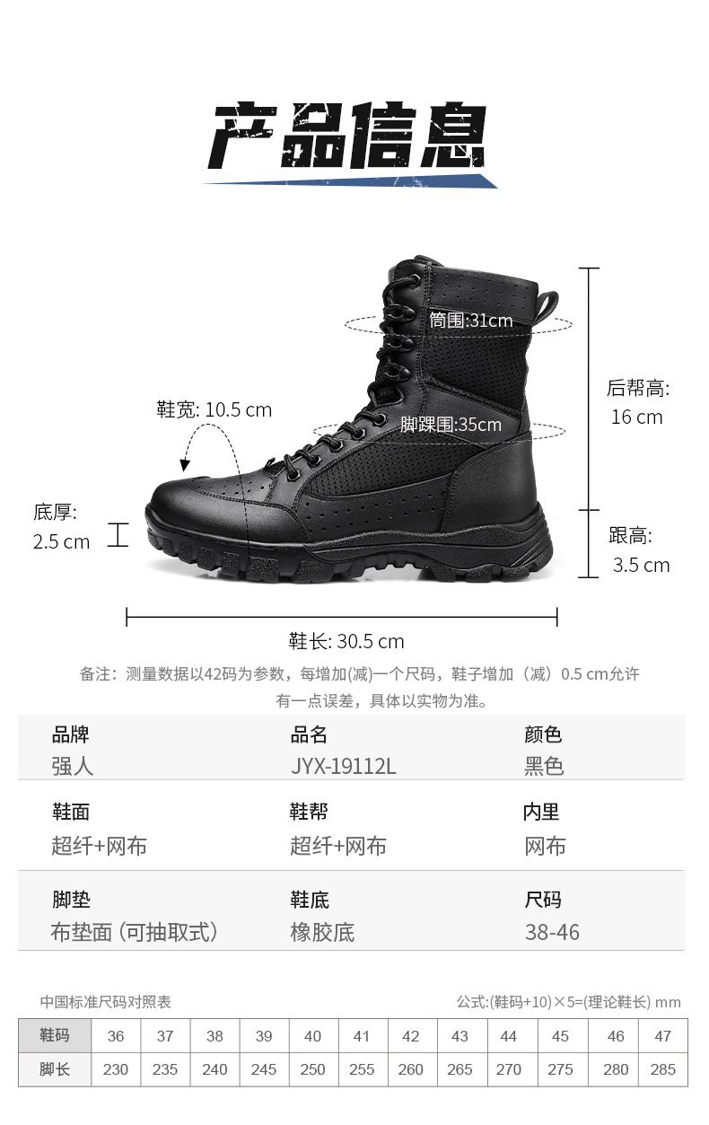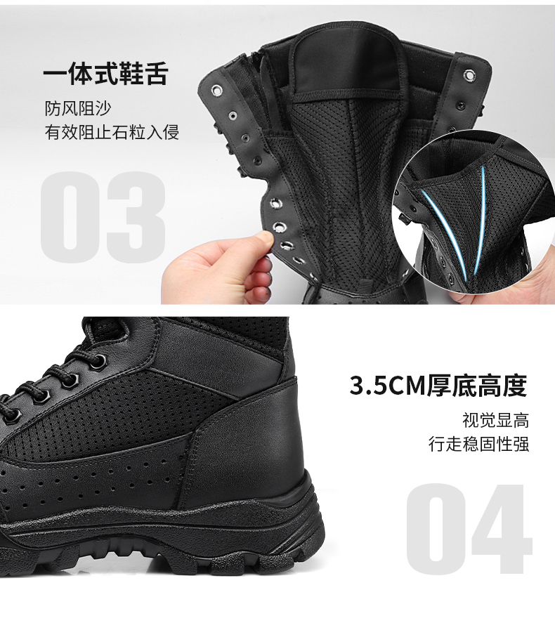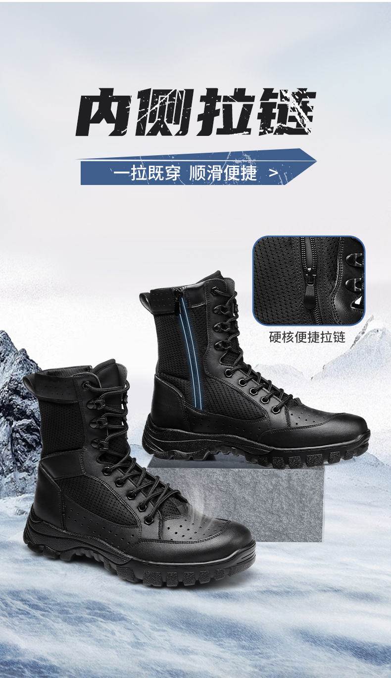 强人3515男靴作战训靴户外高帮训练鞋战术靴子安检安保靴子侧拉链