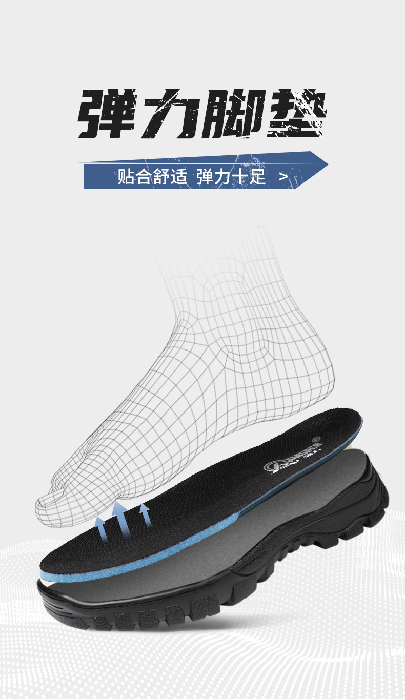 强人3515运动休闲鞋男款户外登山鞋黑色通勤鞋厚底百搭潮流旋转扣