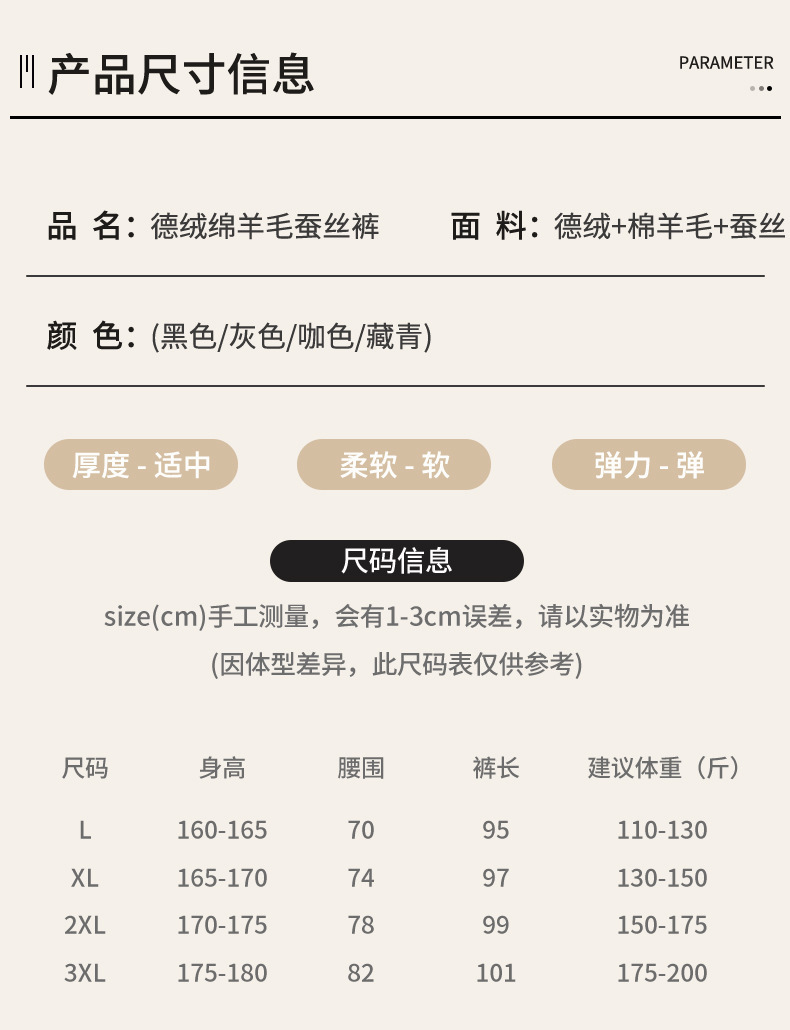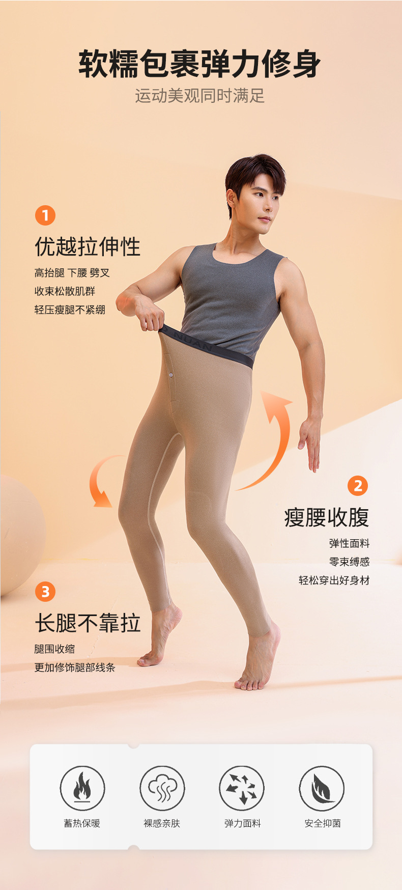 【保暖裤男士打底加绒加厚】冬季毛裤羽绒蚕丝护膝秋裤绒裤大码不起球