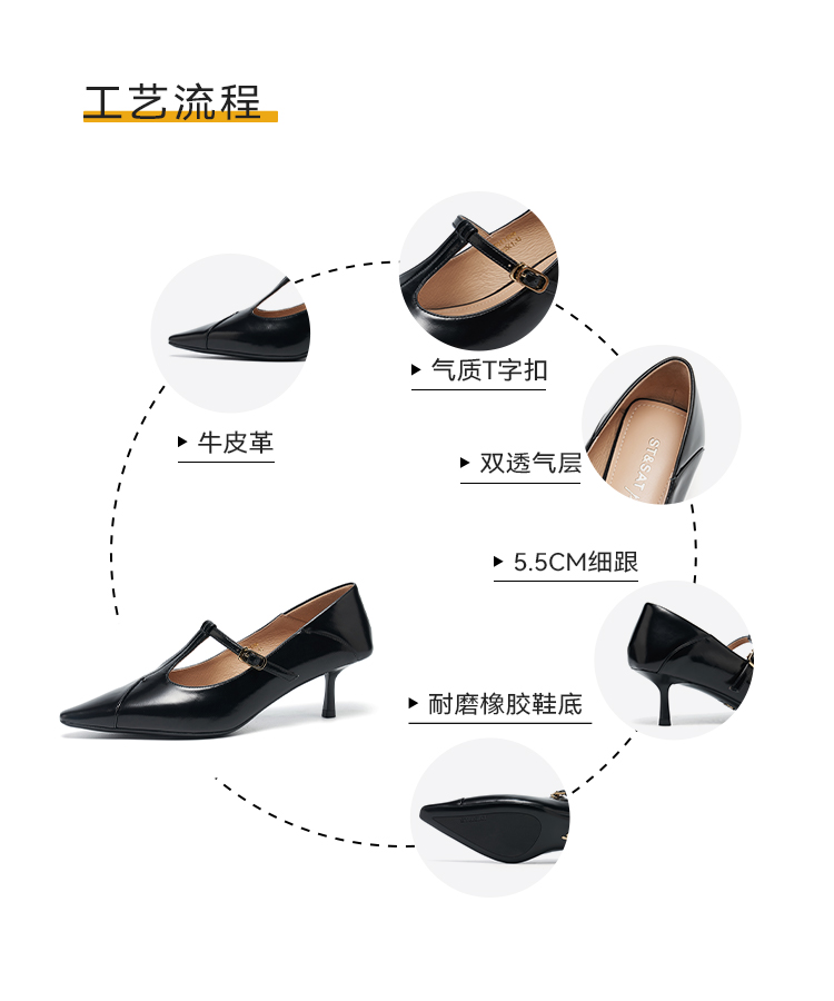 【精选牛皮】星期六优雅T 字带显瘦细高跟SSD3111089