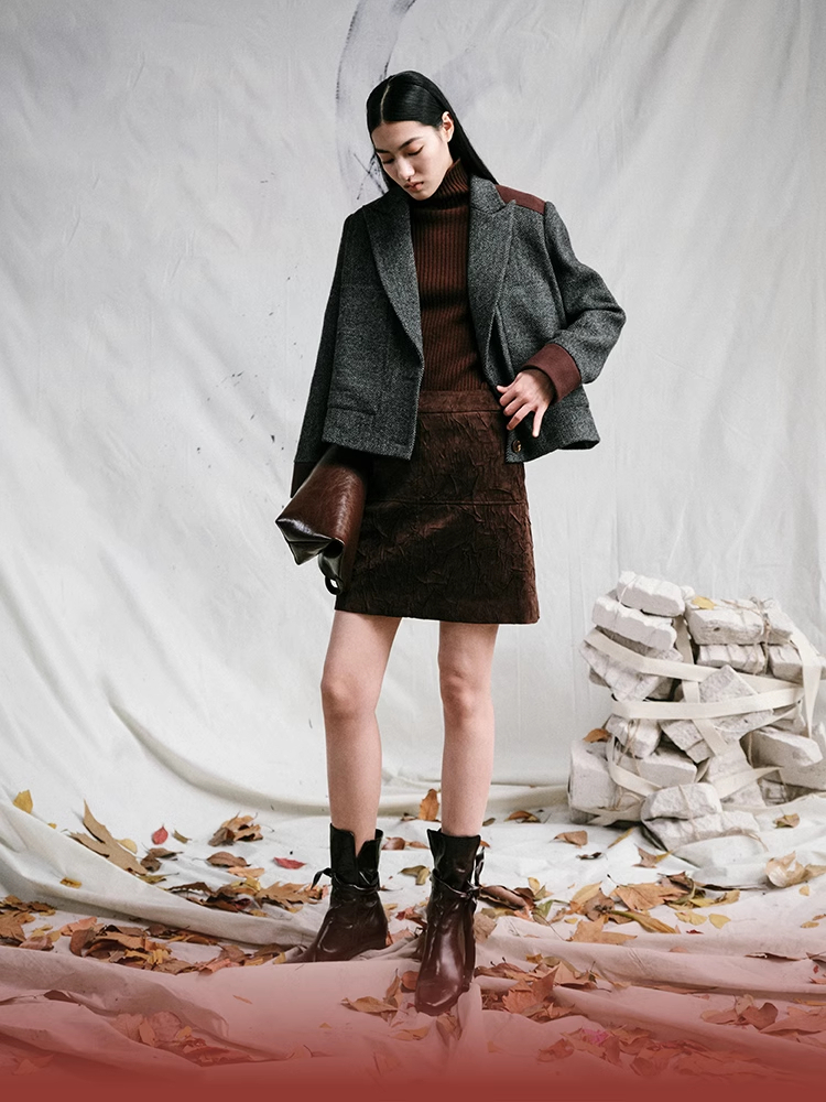 LIYIHAN 秋冬新款麂皮高级复古短款休闲包裙半裙
