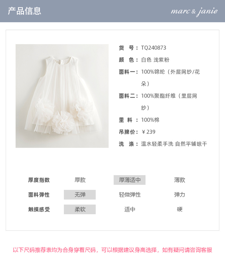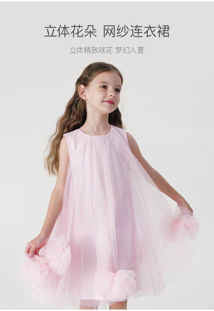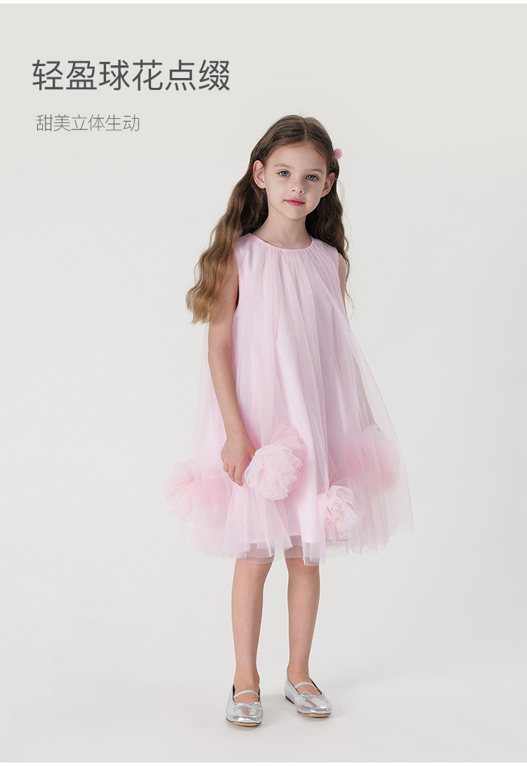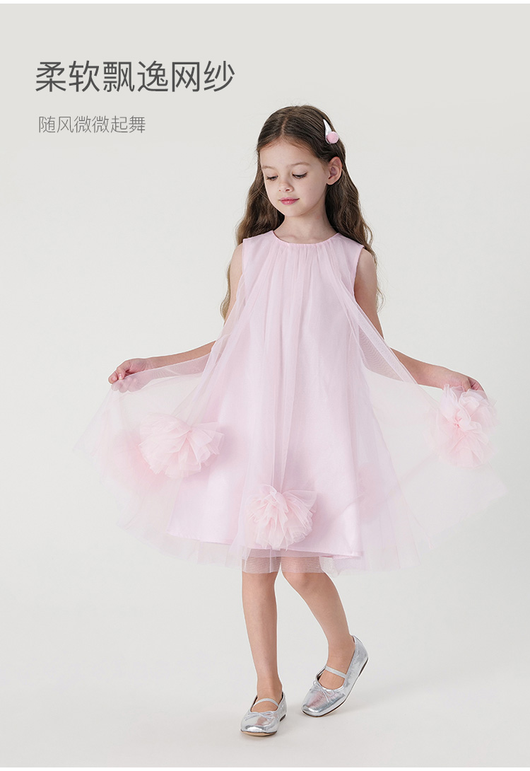 马克珍妮女童立体花朵裙摆网纱连衣裙儿童背心裙子夏装新款240873