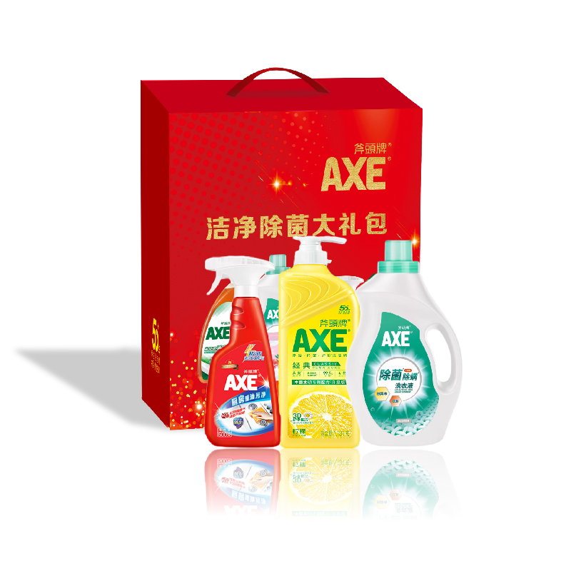 香港斧头三件套(除菌除螨洗衣液1kg+柠檬护肤洗洁精1.18kg+厨房重油污净500ml)