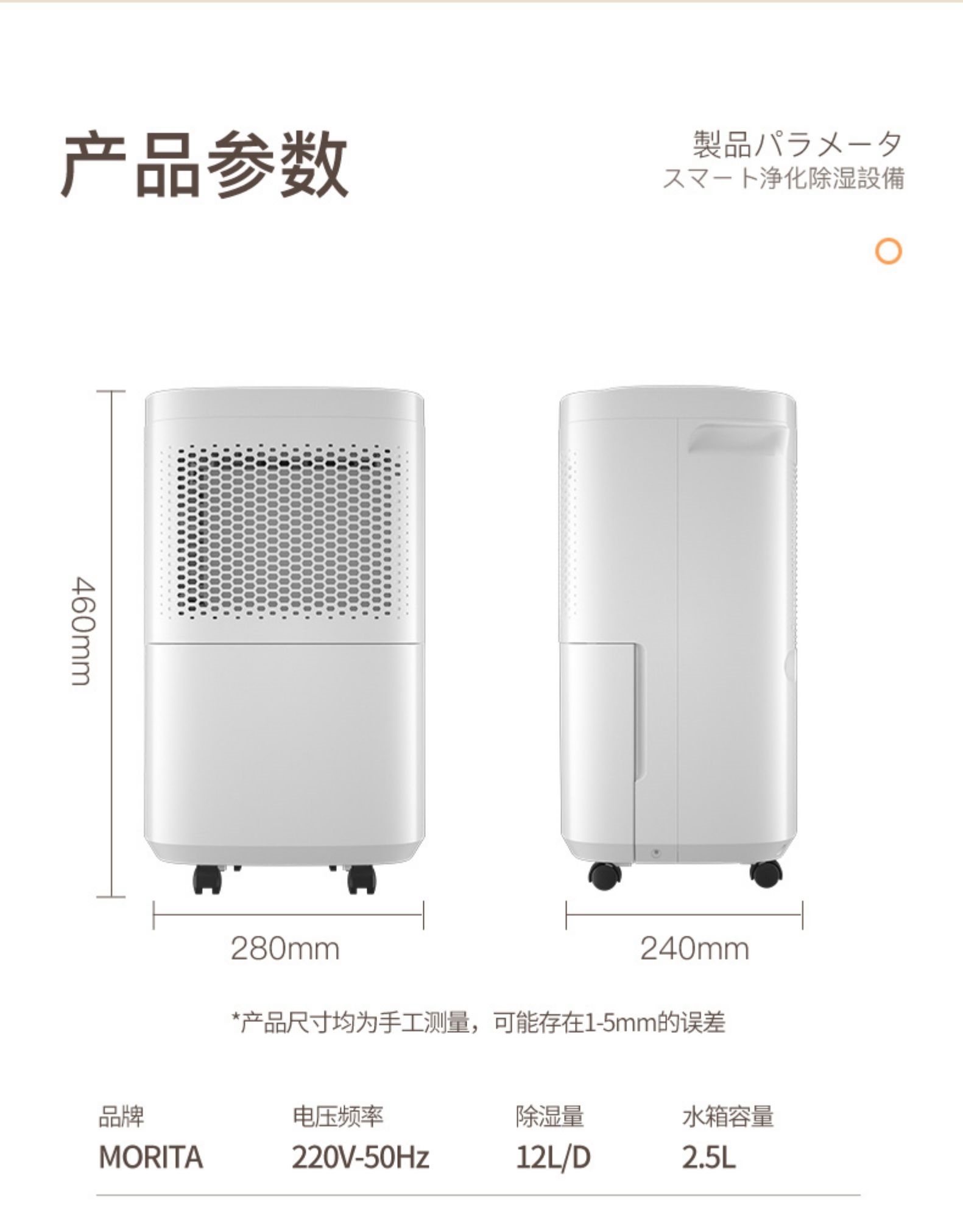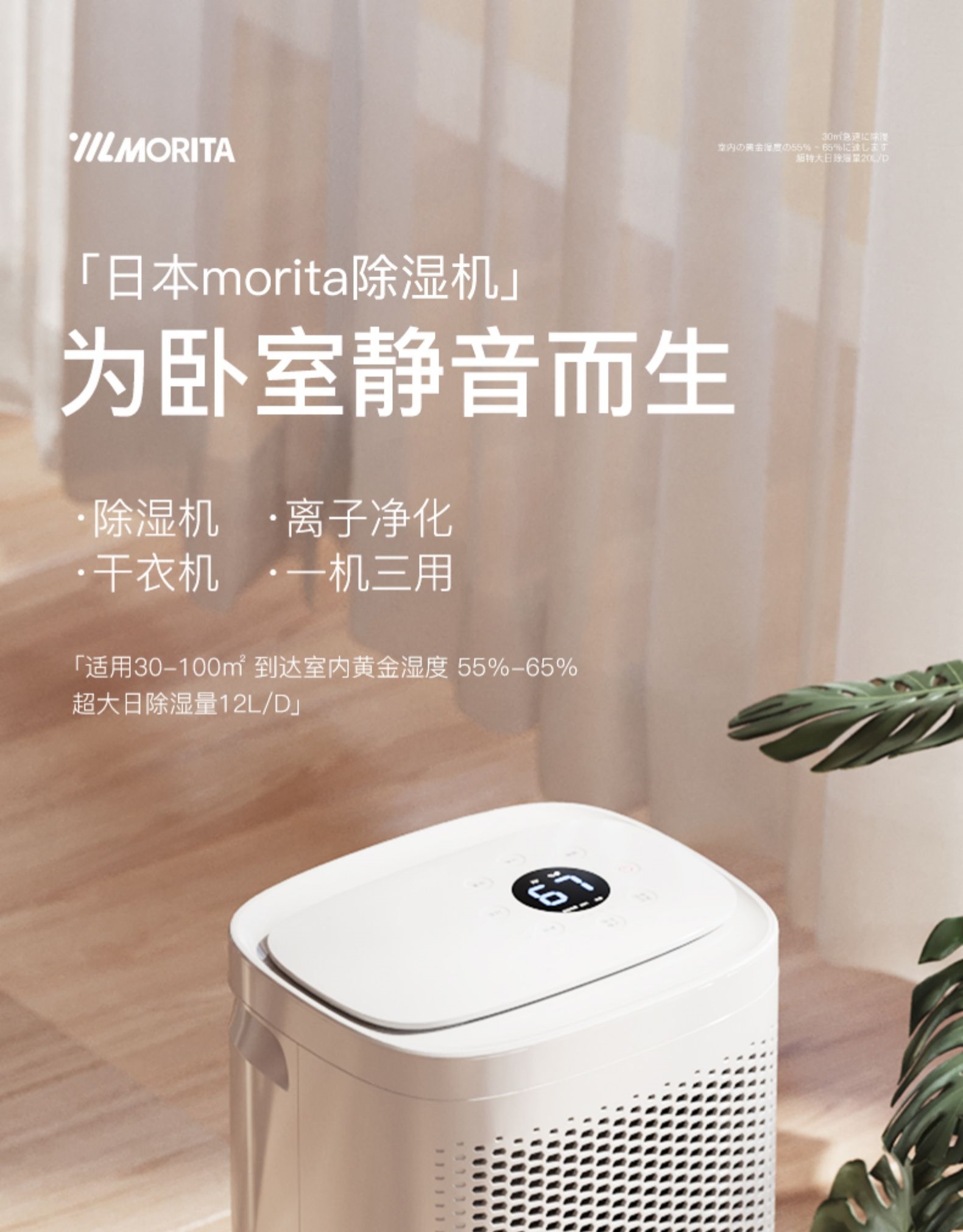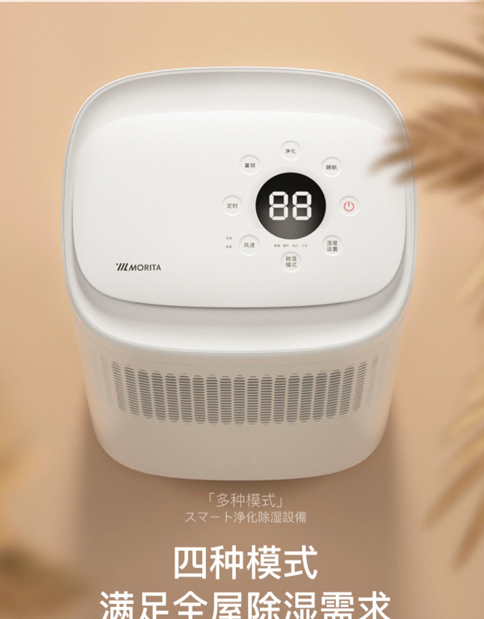 日本森田MORITA除湿机家用抽湿机回南天室内防潮去湿器干燥机除潮吸湿去潮抽湿器12L天除湿量 白色