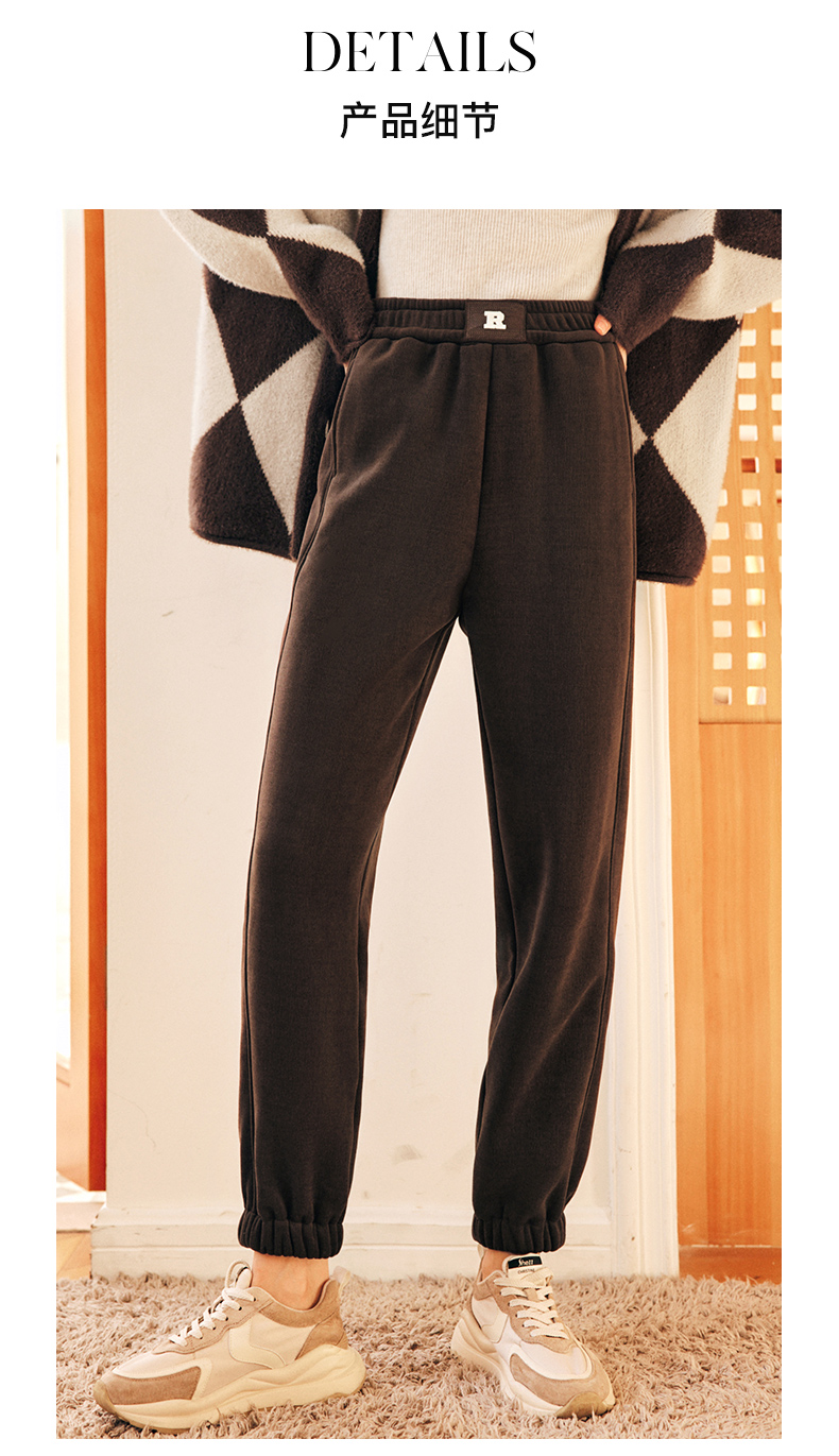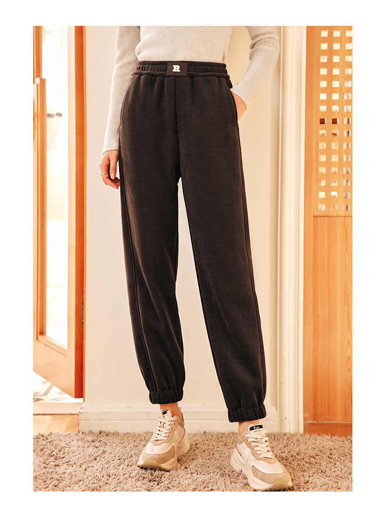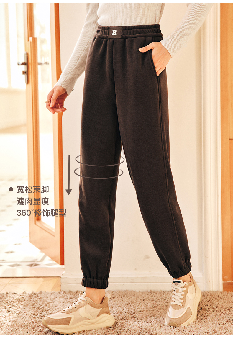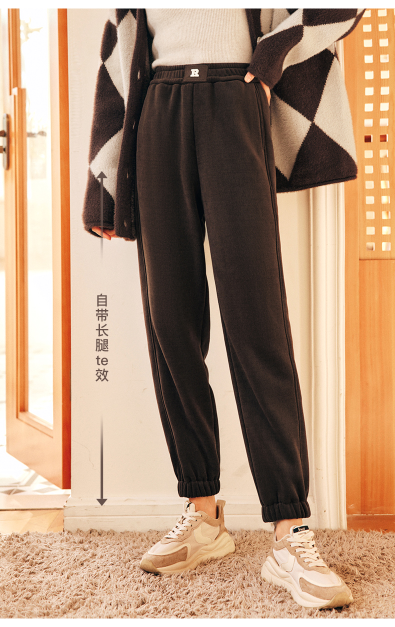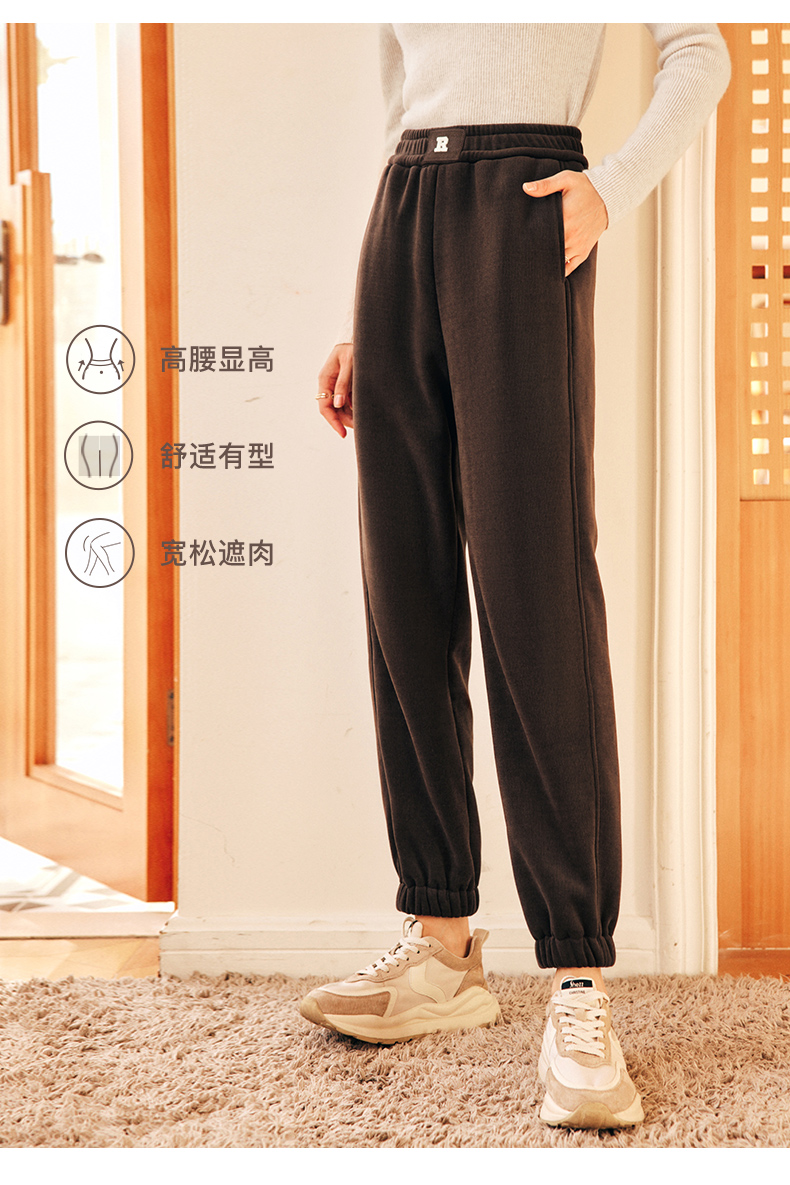 OLrain欧芮儿法式加厚抓绒休闲裤女秋冬2024新款高腰束脚运动卫裤