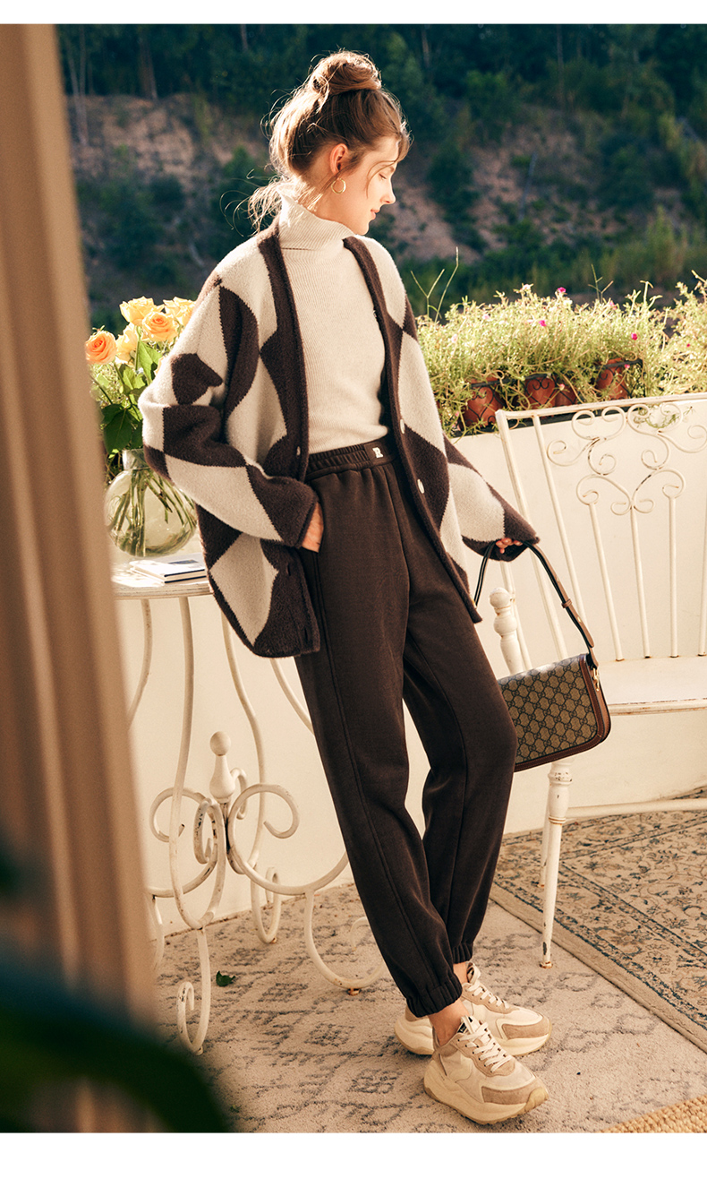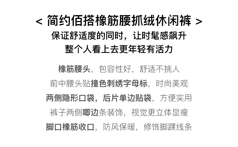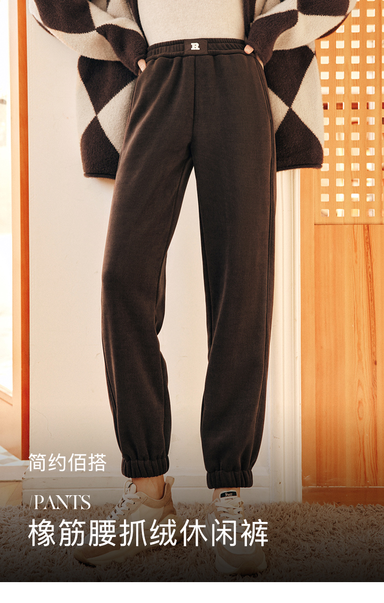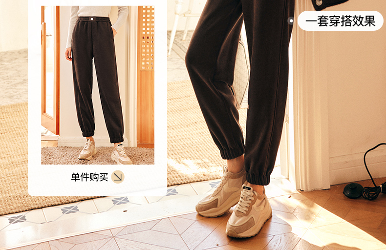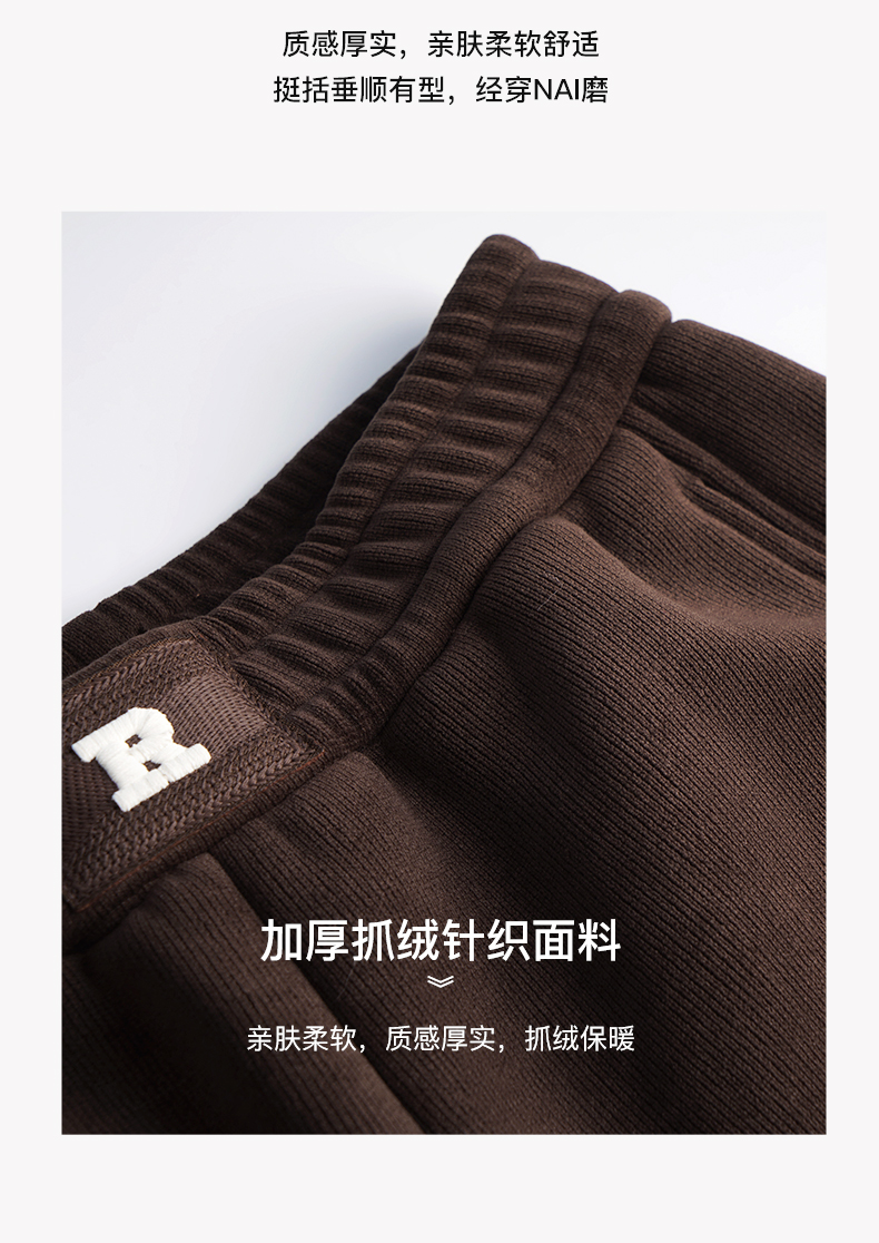 OLrain欧芮儿法式加厚抓绒休闲裤女秋冬2024新款高腰束脚运动卫裤