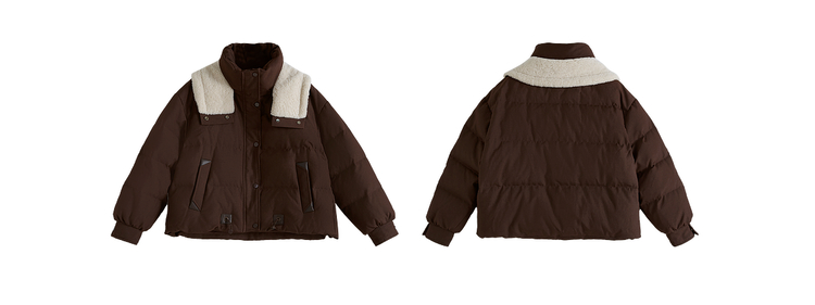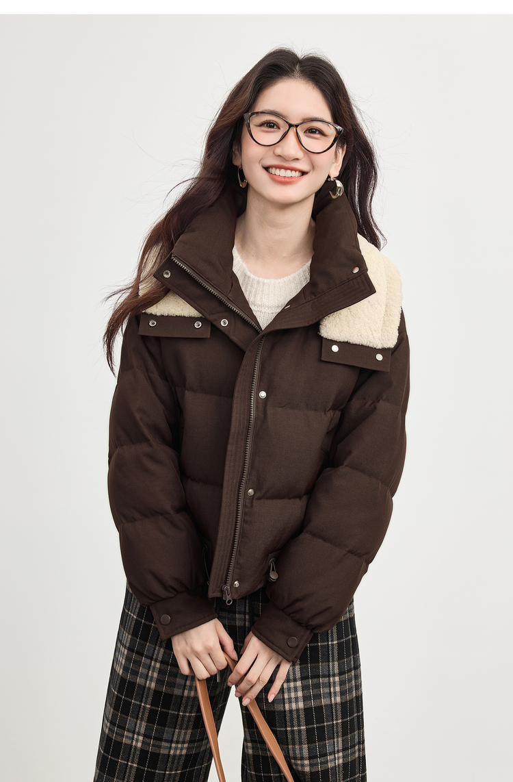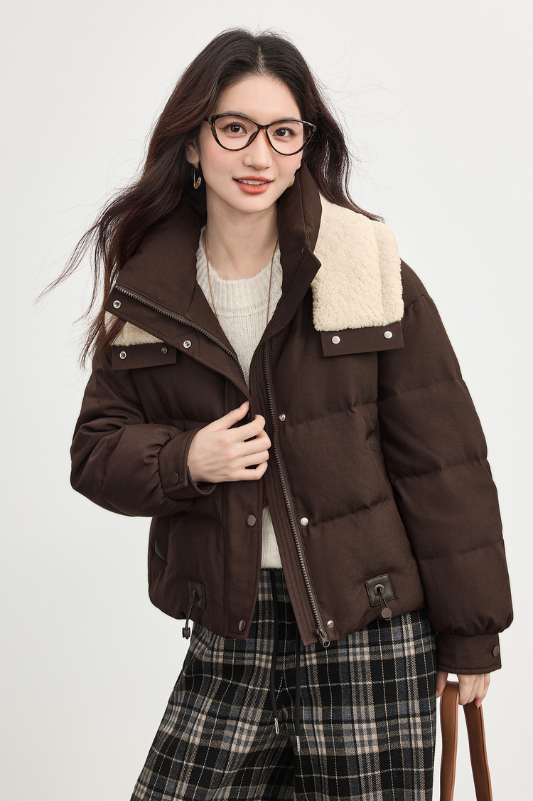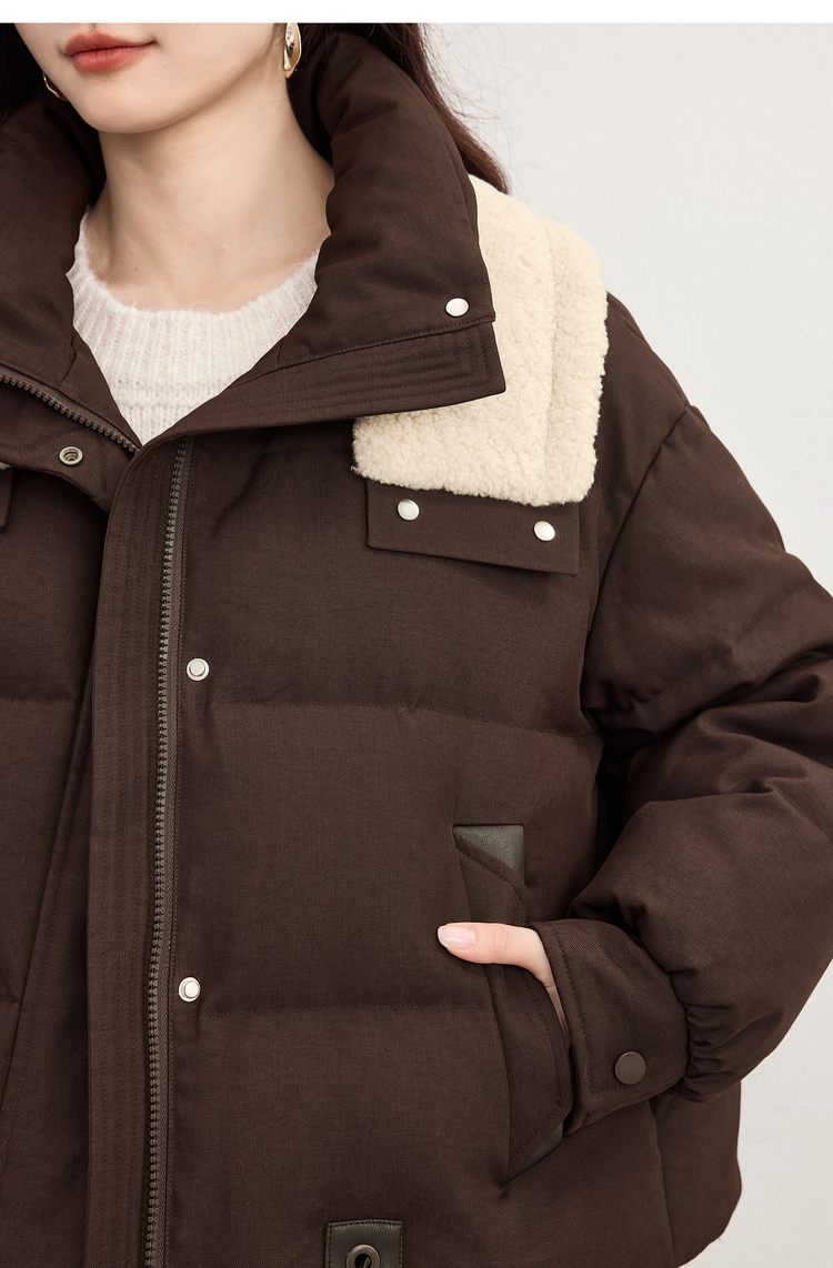 【年货节】熙世界琥珀流光风毛绒立领羽绒服女冬季高级感复古白鸭绒短款外套
