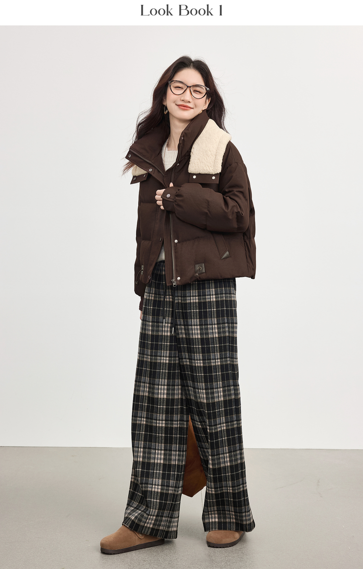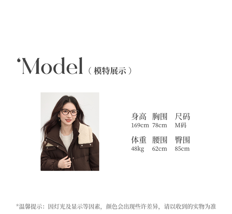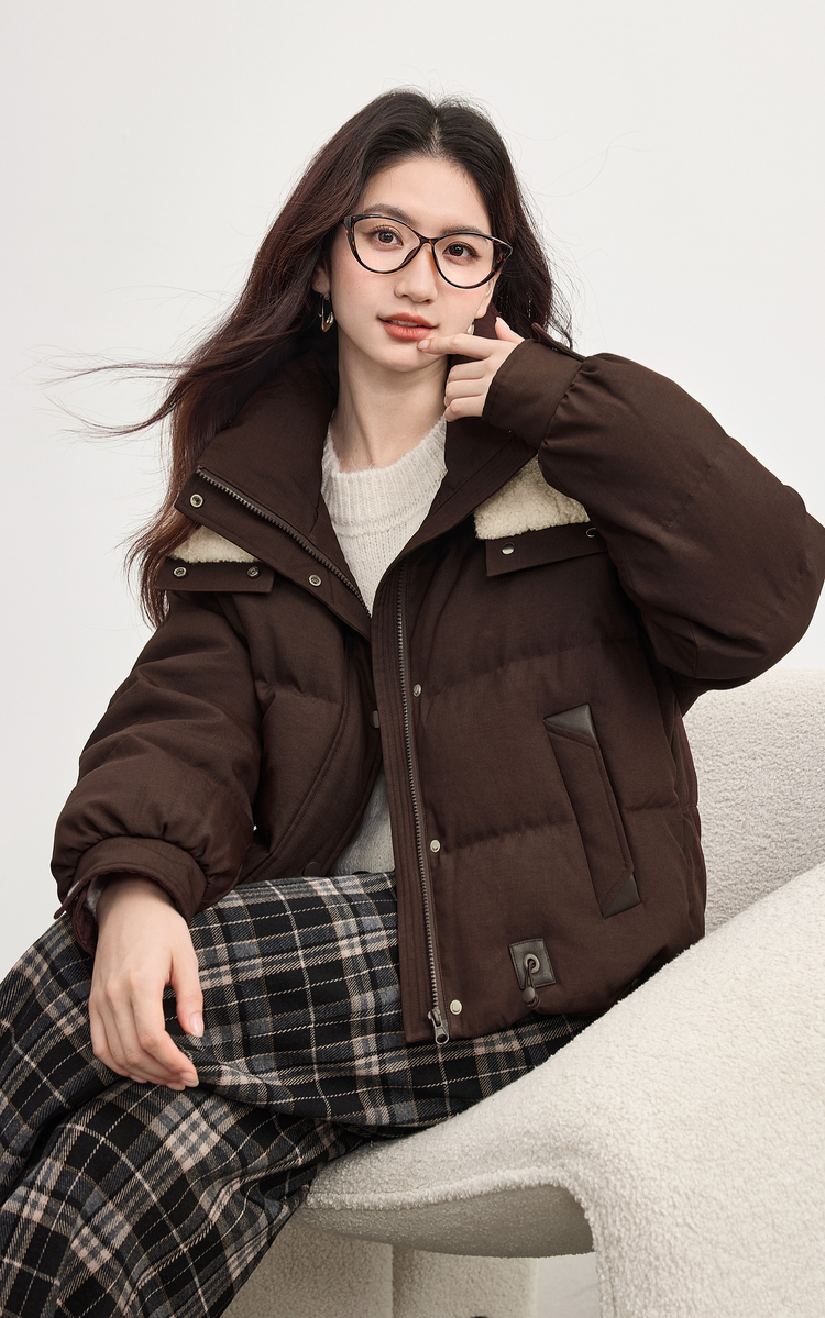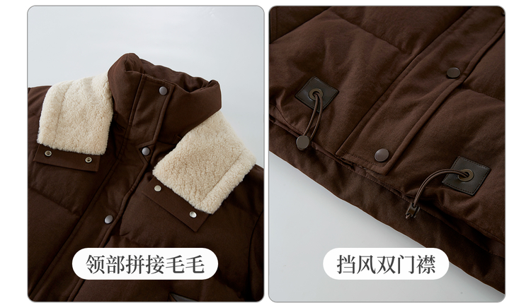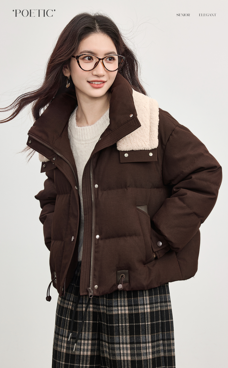 【年货节】熙世界琥珀流光风毛绒立领羽绒服女冬季高级感复古白鸭绒短款外套