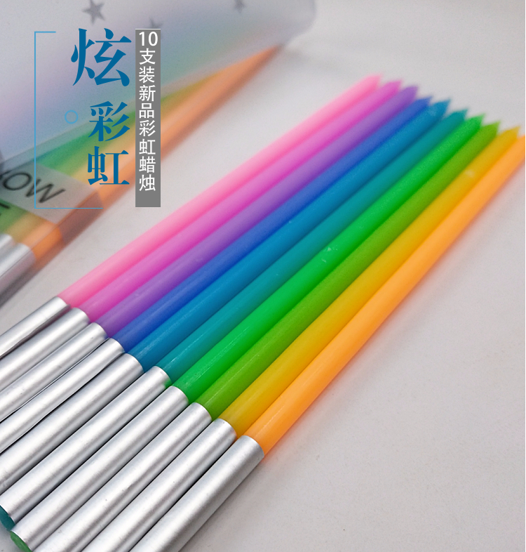 韩式清新盒装彩虹蜡烛 长杆生日节日 装饰蜡烛 10支/板 50板/盒两种规格