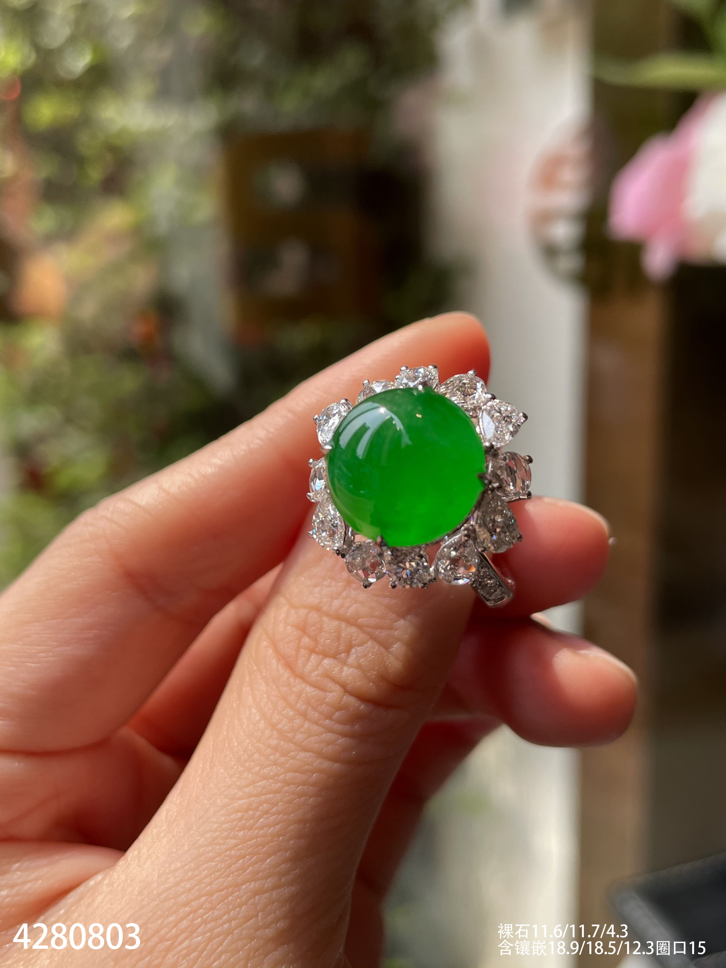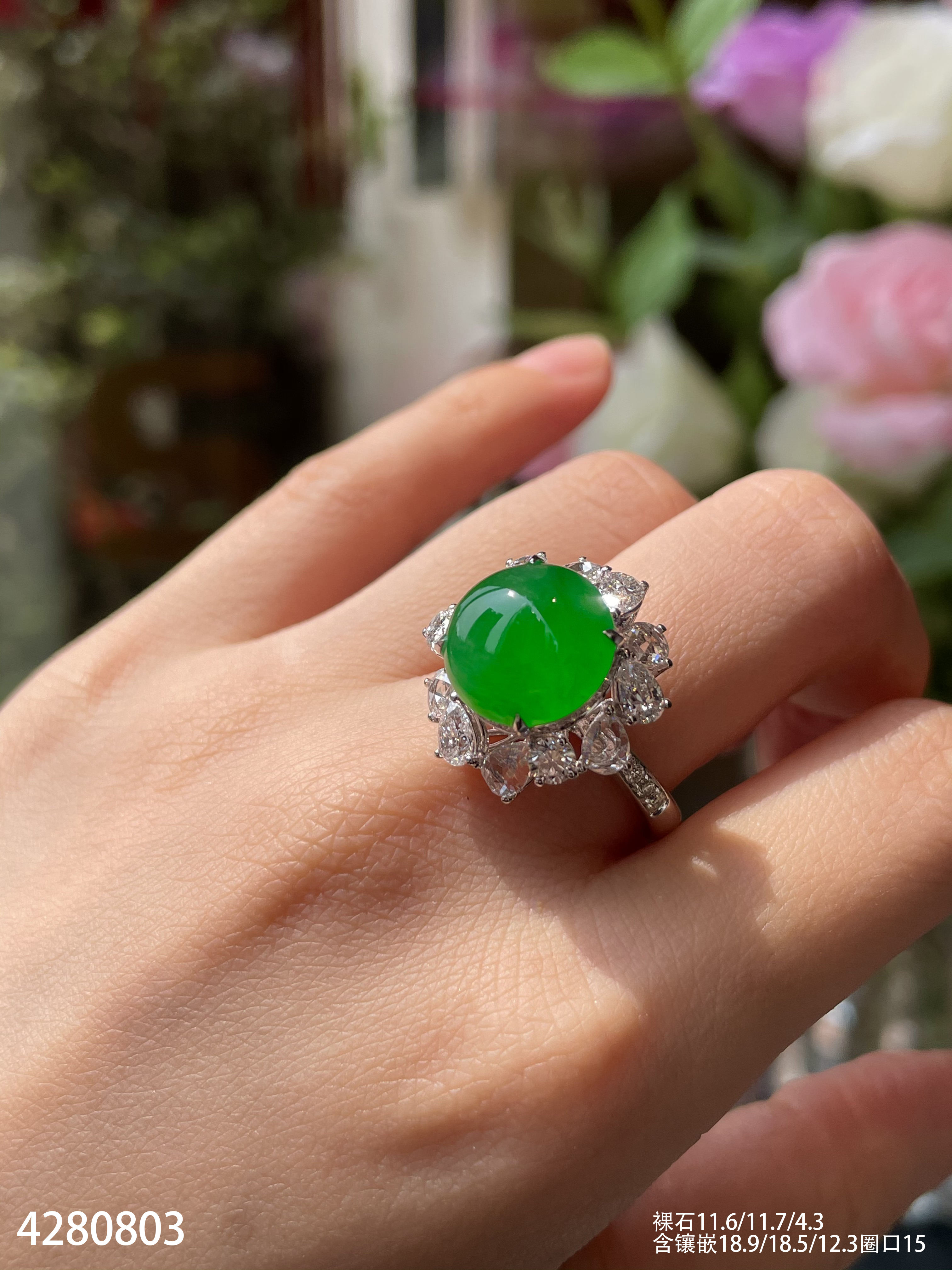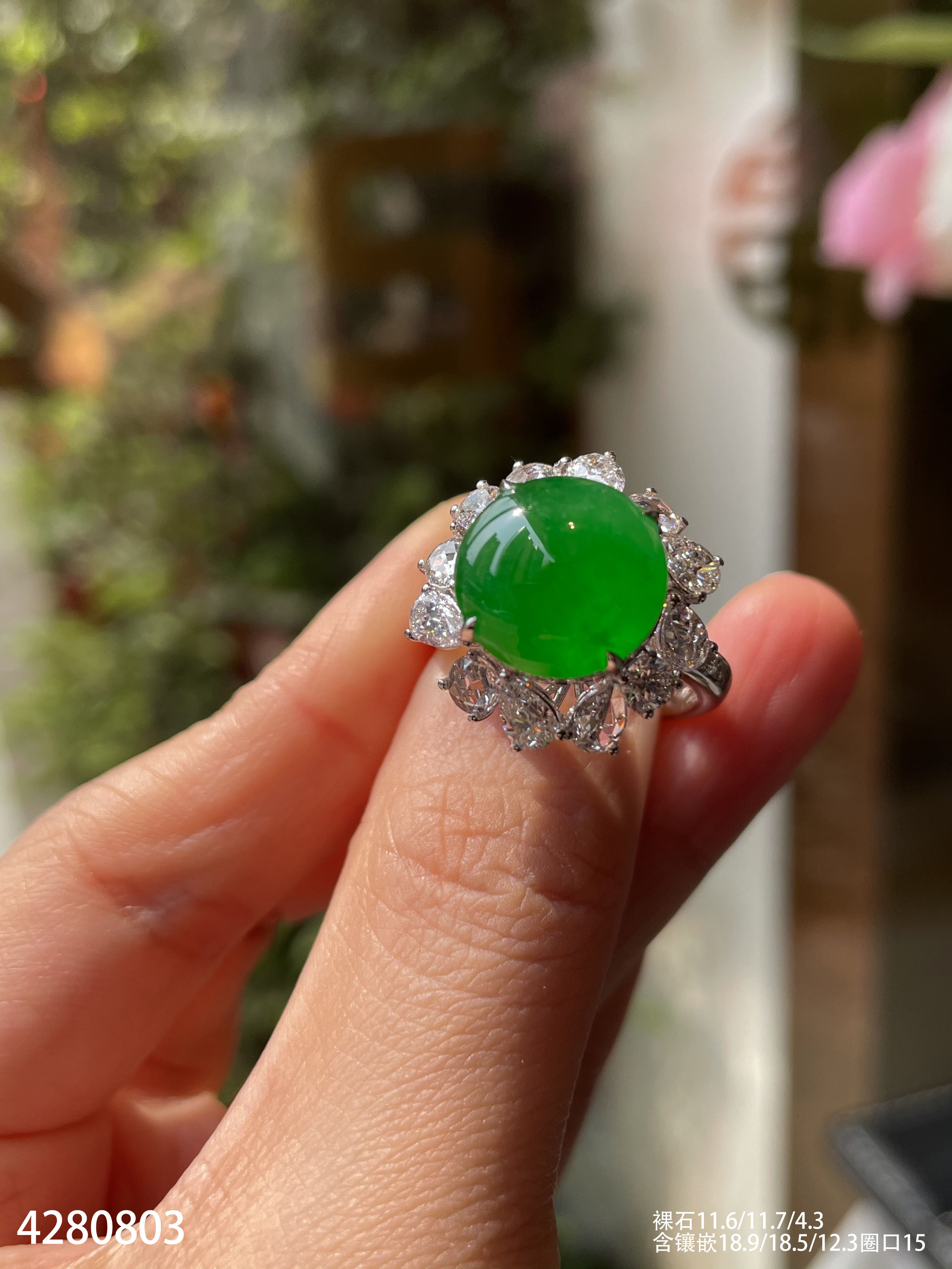 玻璃种蛋面戒指【6300503】具体价格微信咨询
