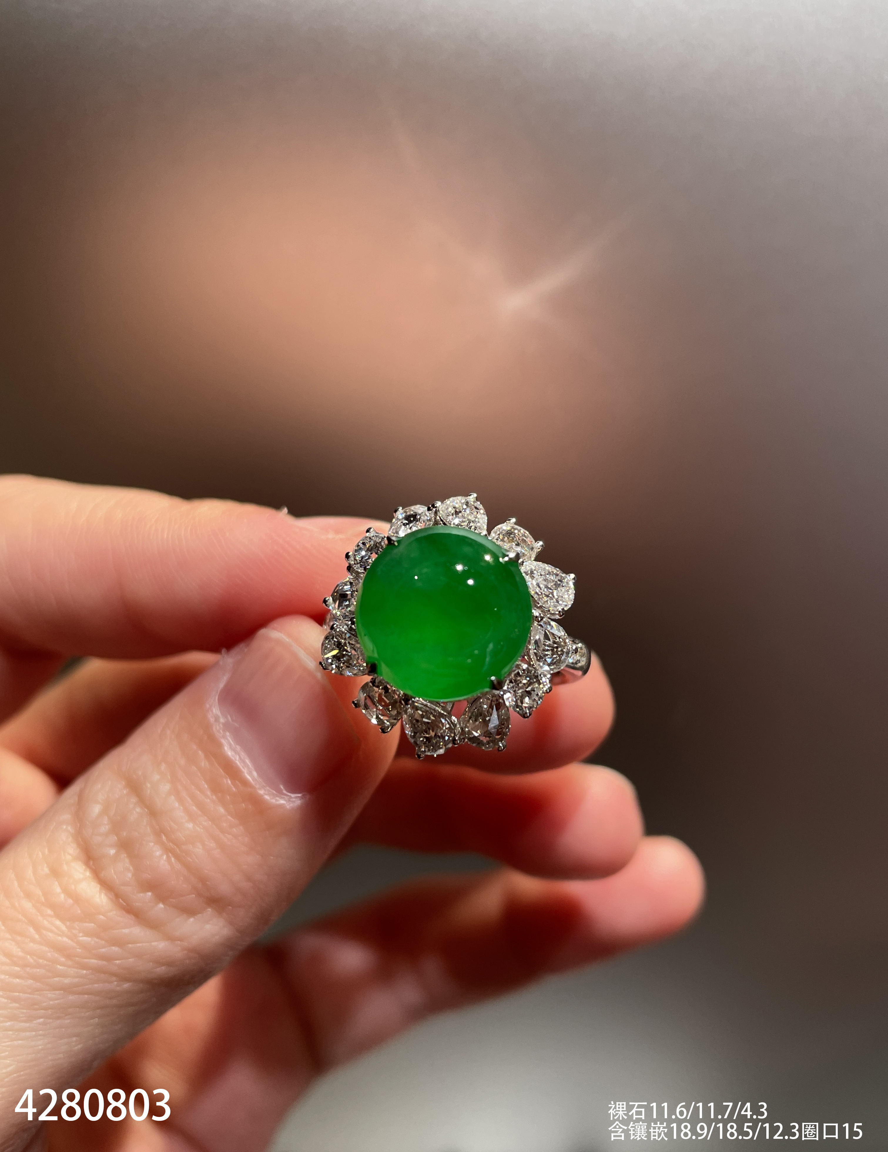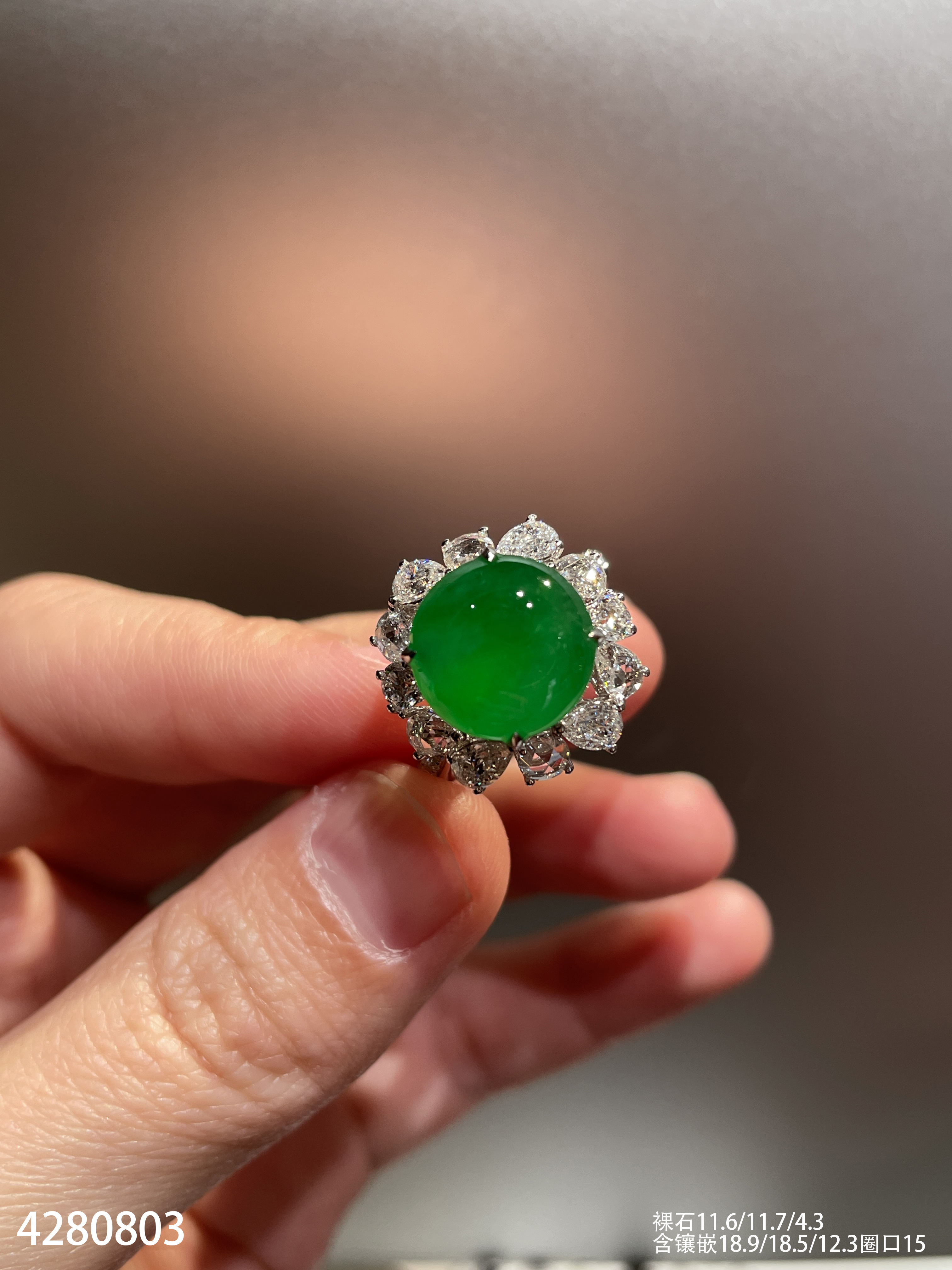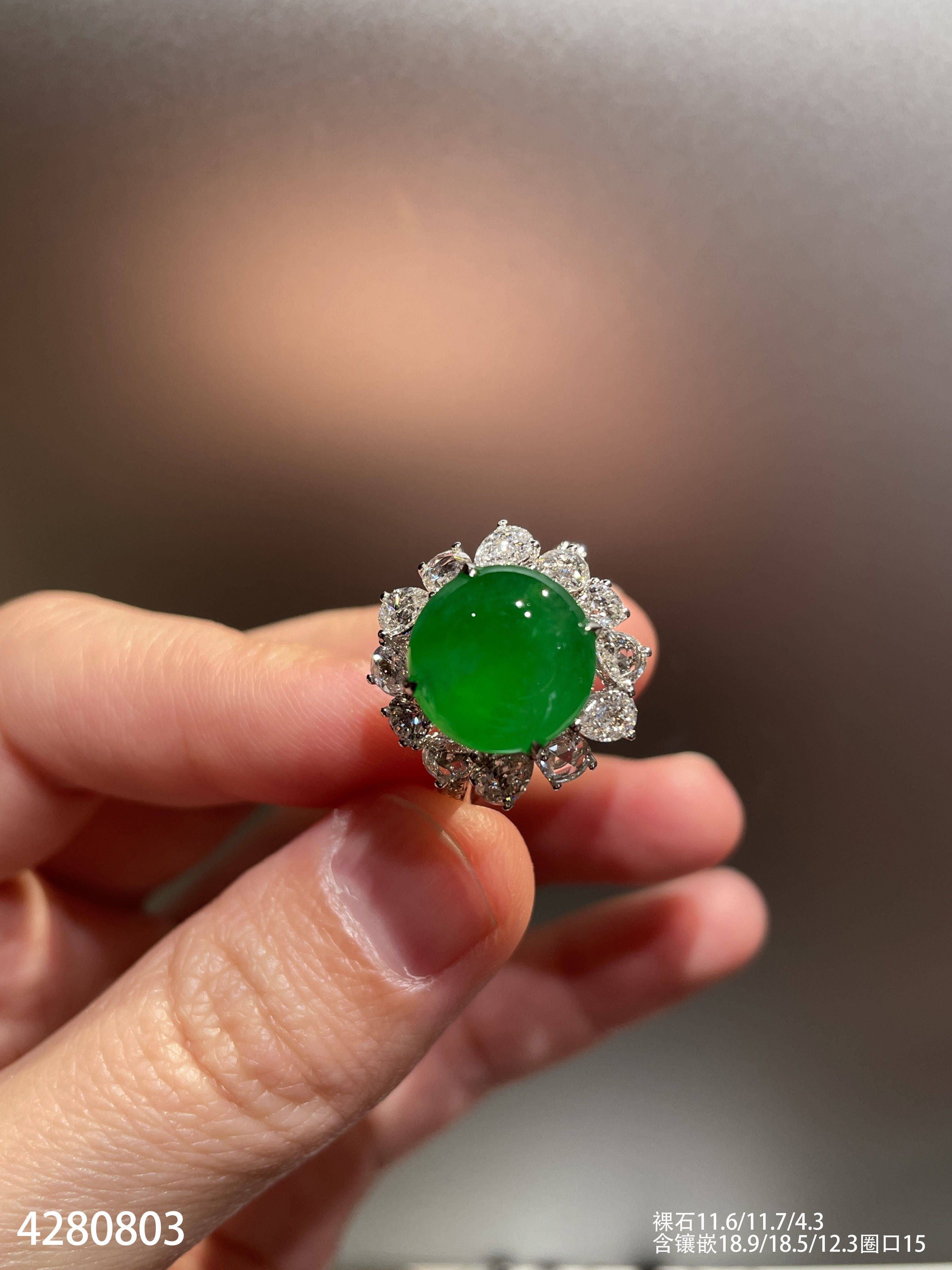 玻璃种蛋面戒指【6300503】具体价格微信咨询