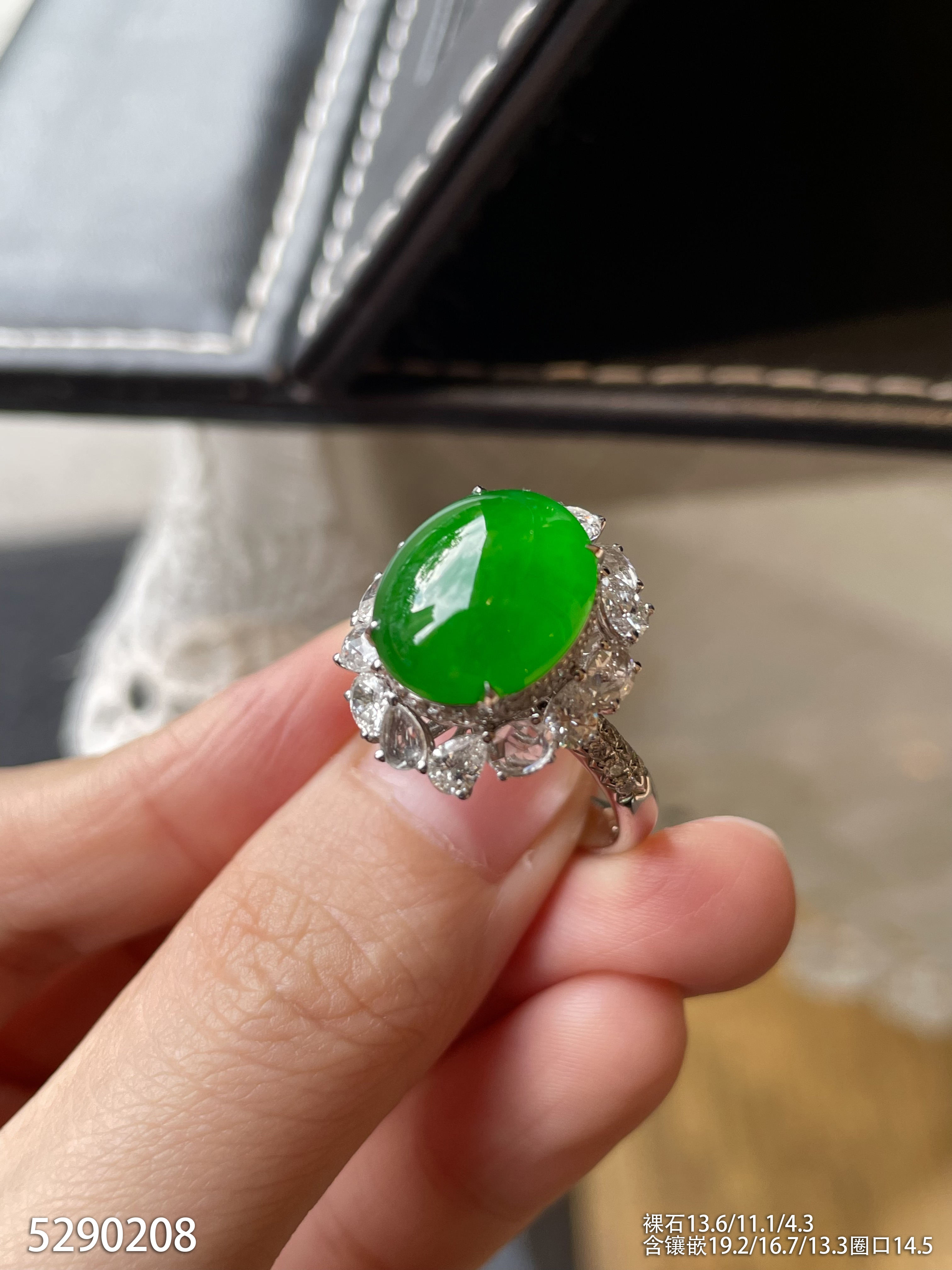 冰艳绿蛋面戒指【5290208】具体价格微信咨询