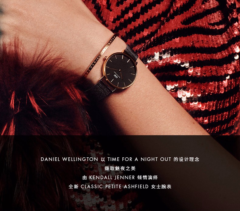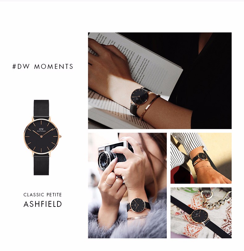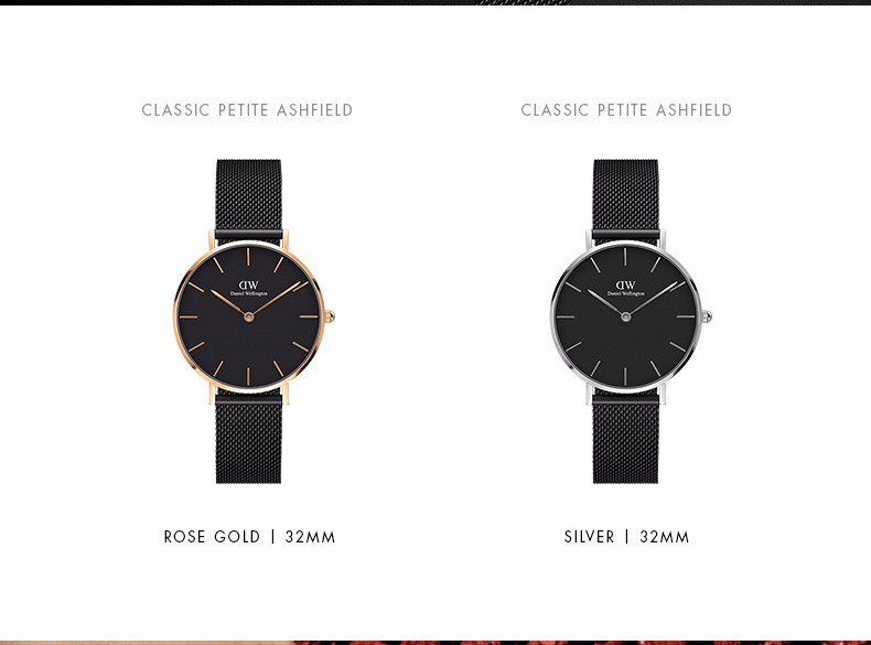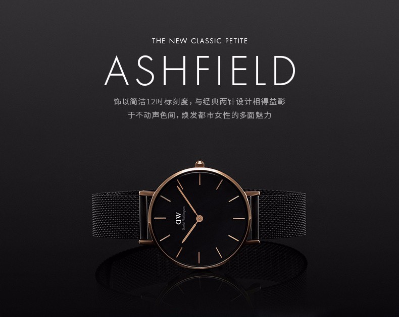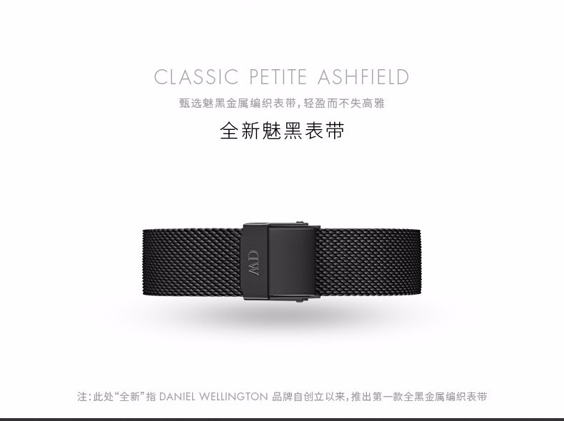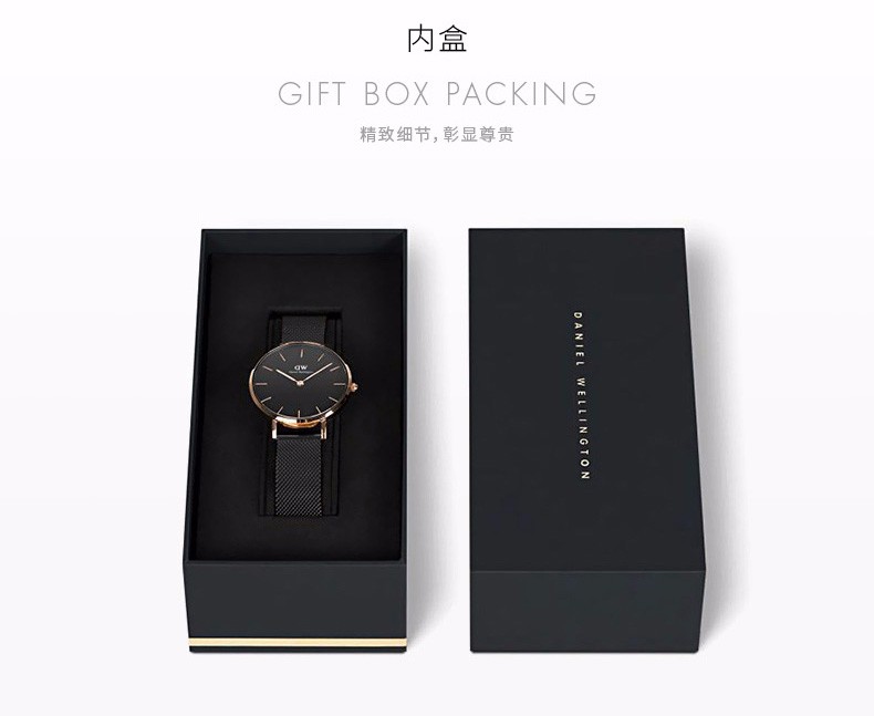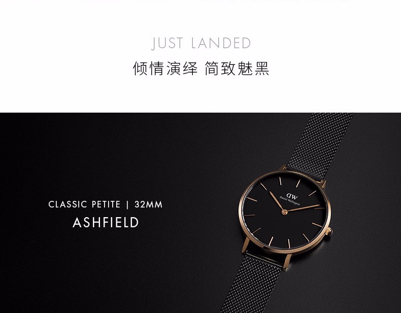 DANIEL WELLINGTON/新款石英女表金色盘黑色钢带 32MM DW00100201JPY带授权招加盟代理