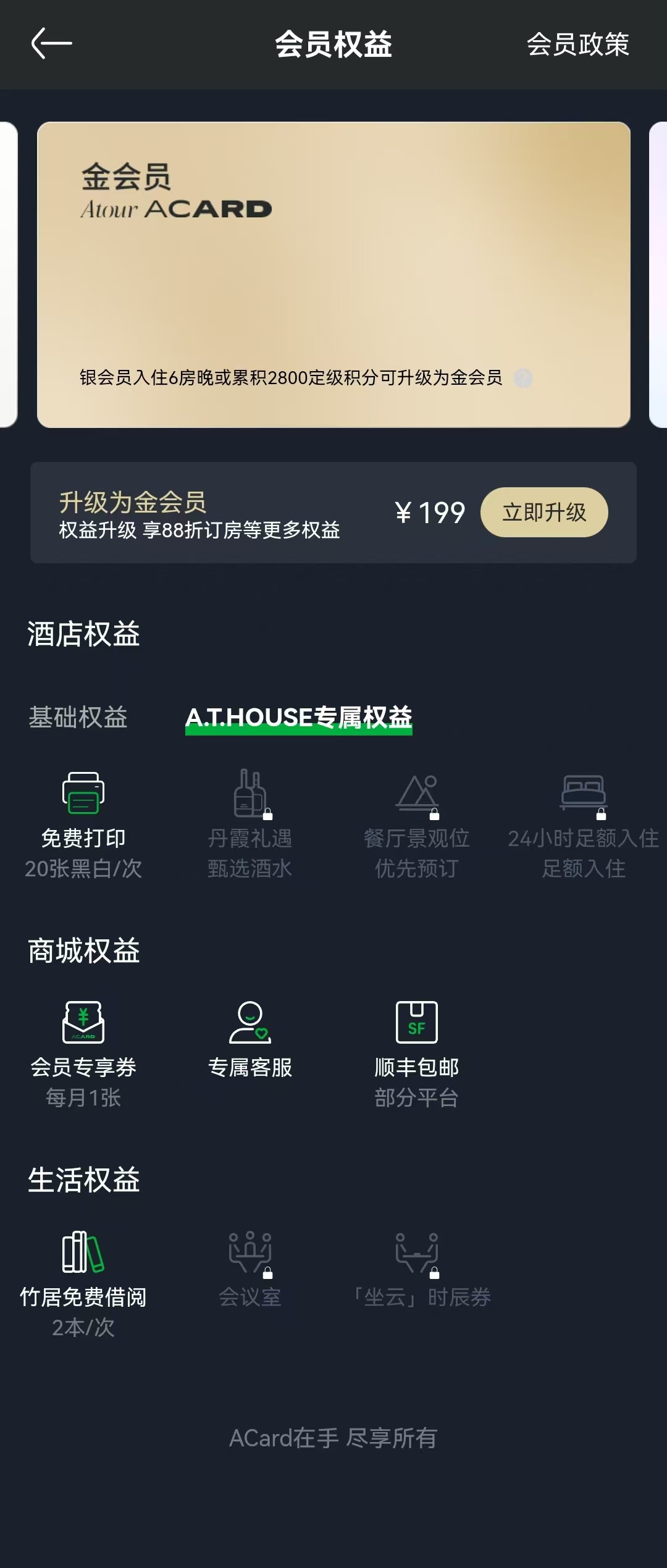 亚朵酒店金卡年卡