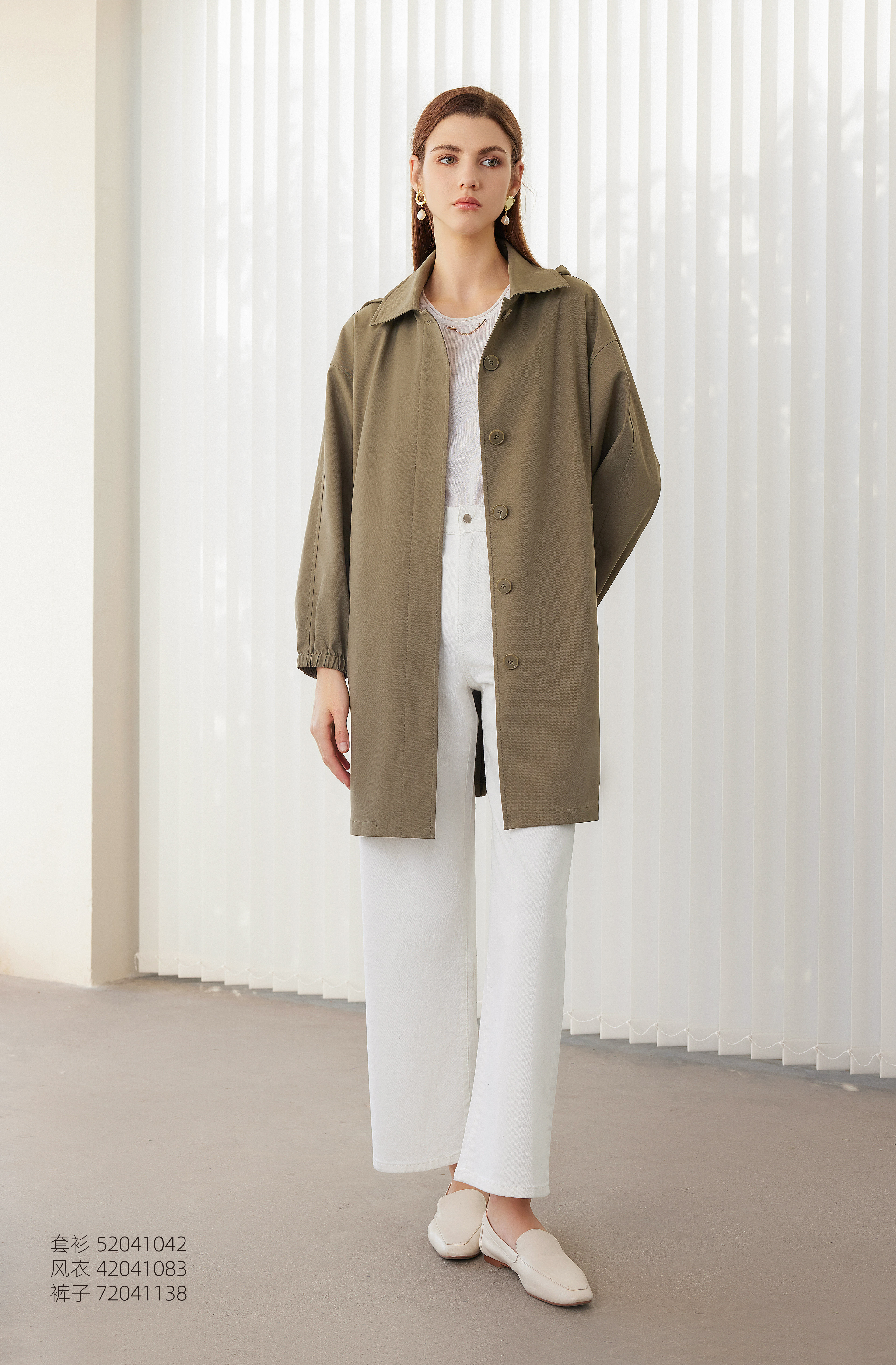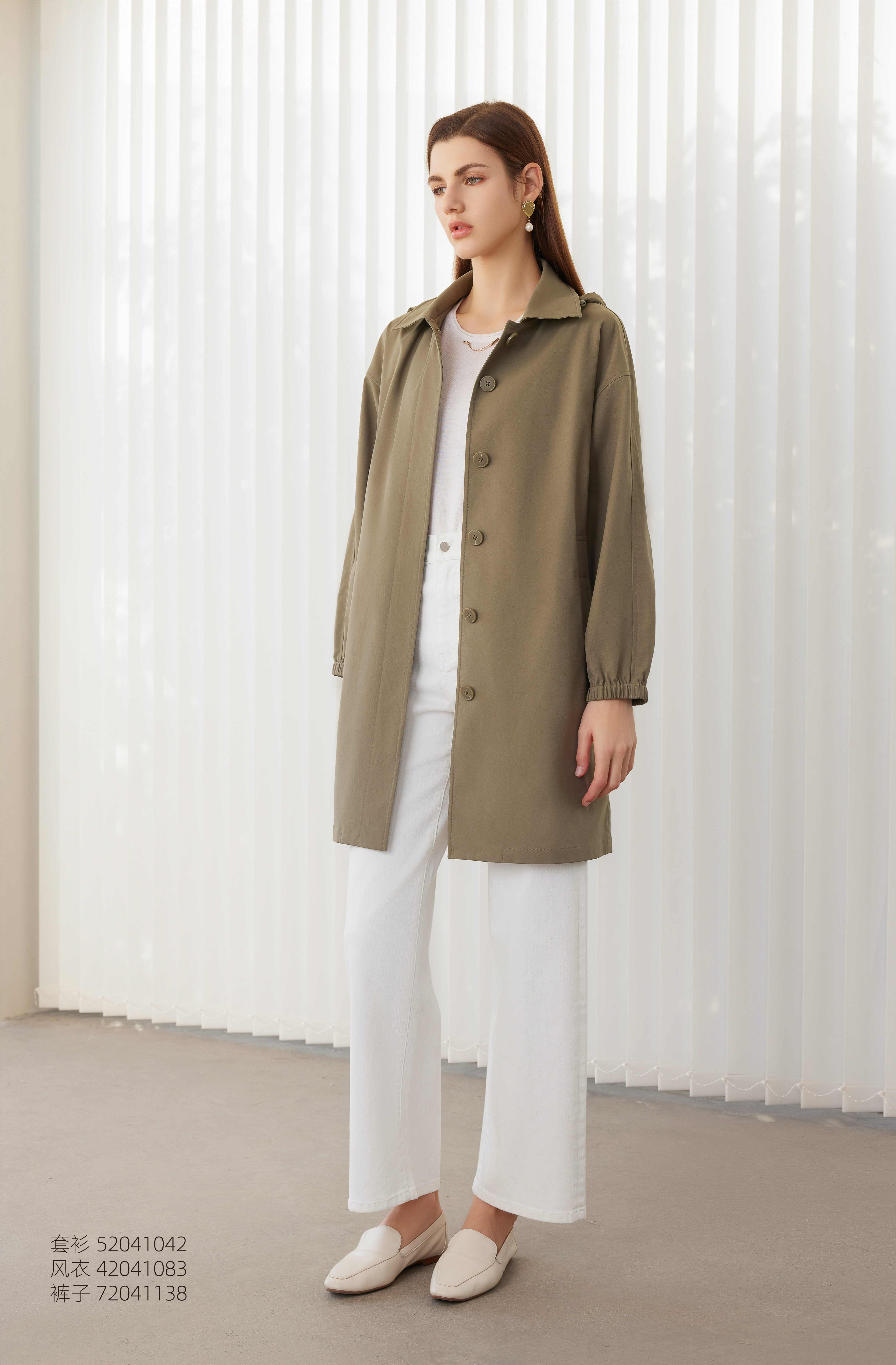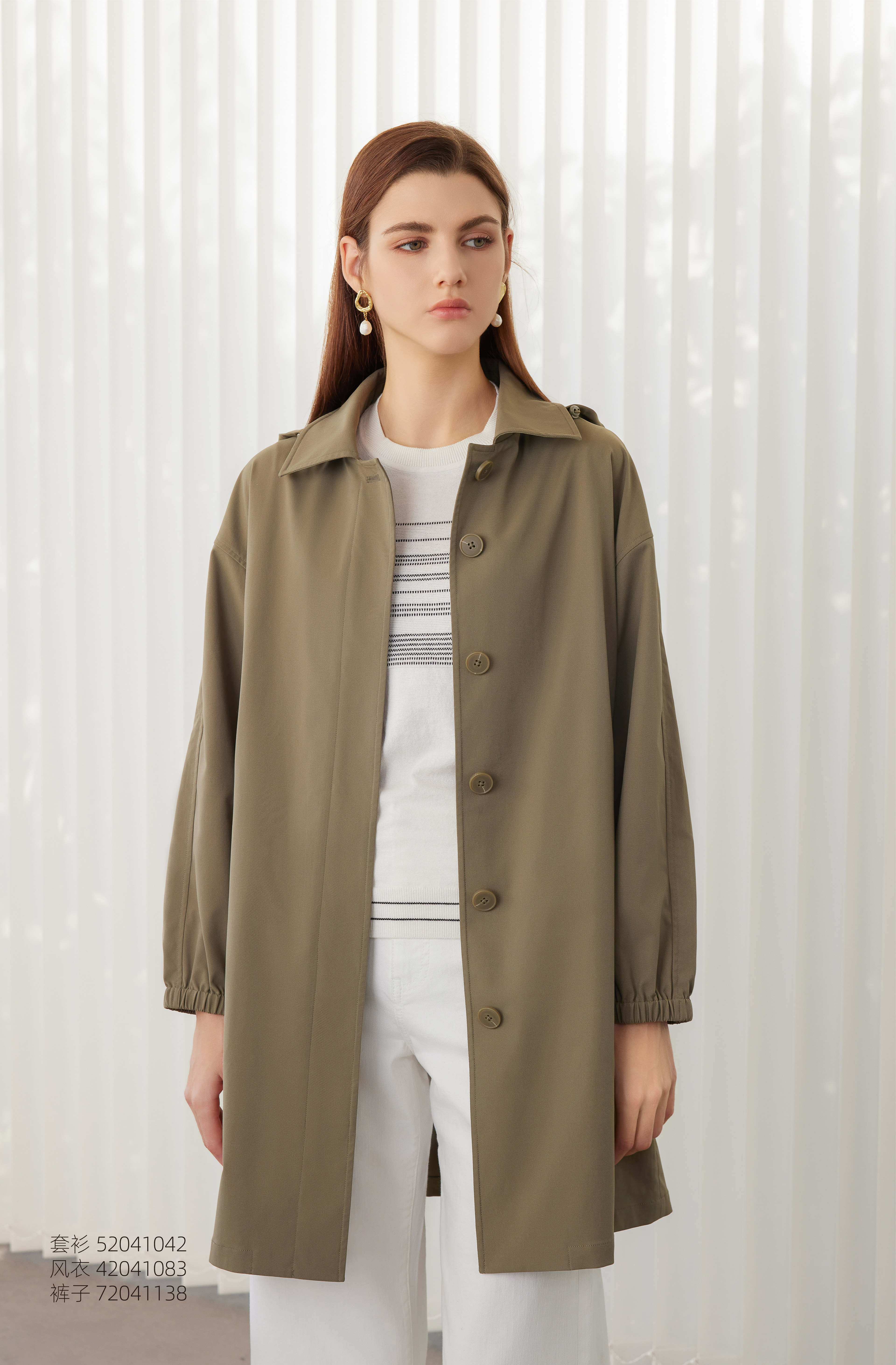 【女士风衣外套】24年春夏新品女士中长款单排扣直筒长袖外套