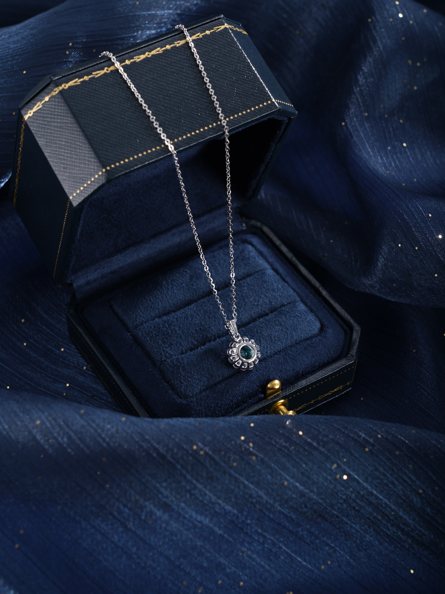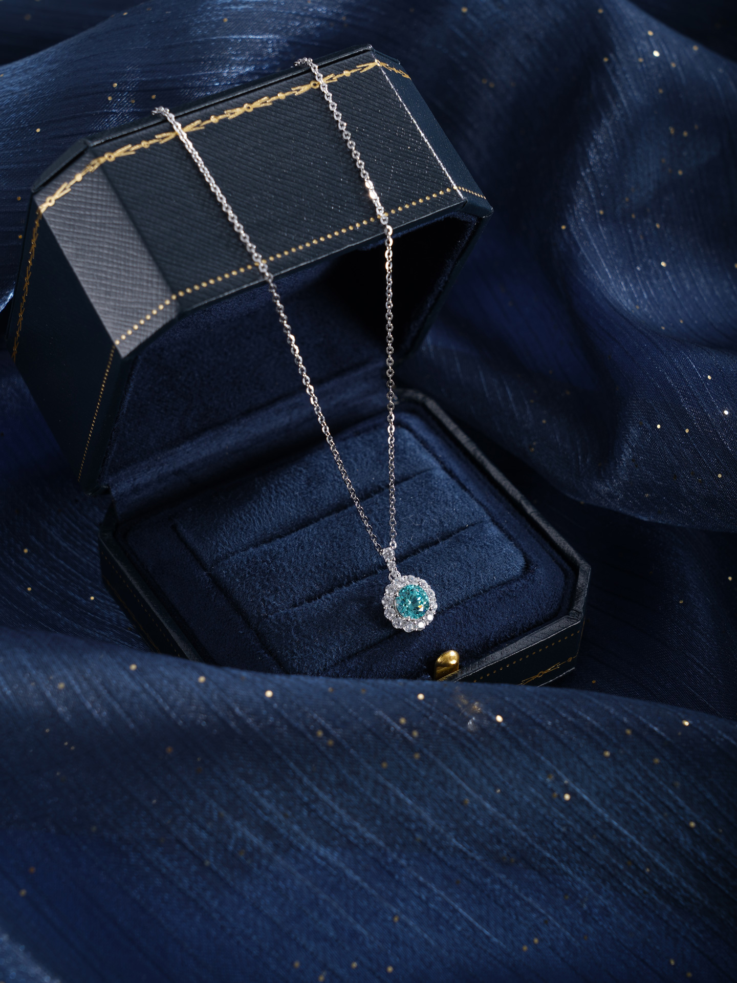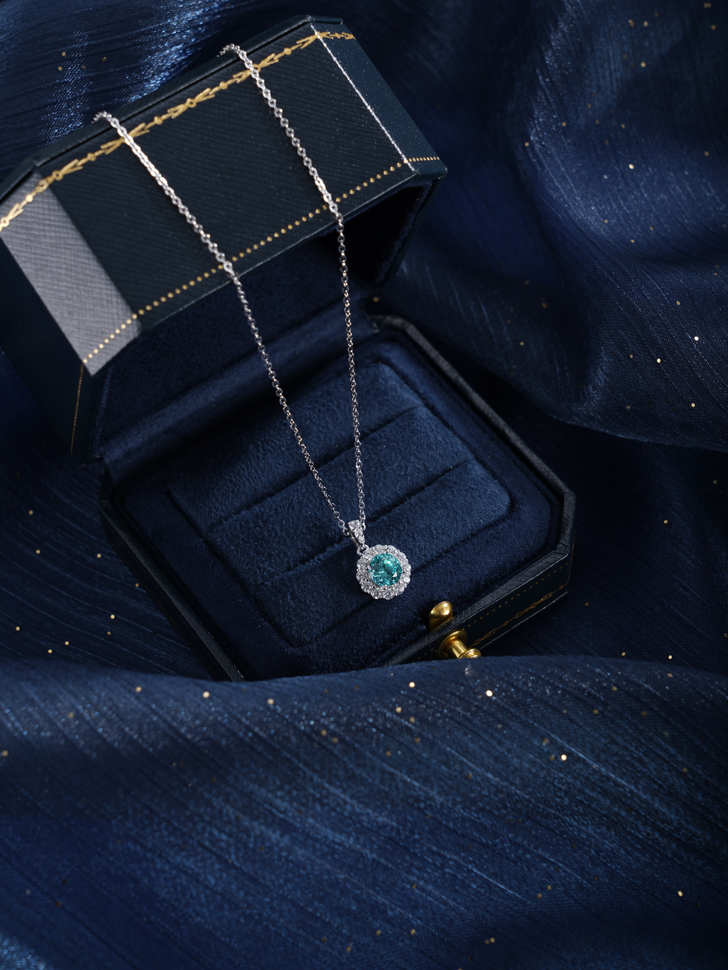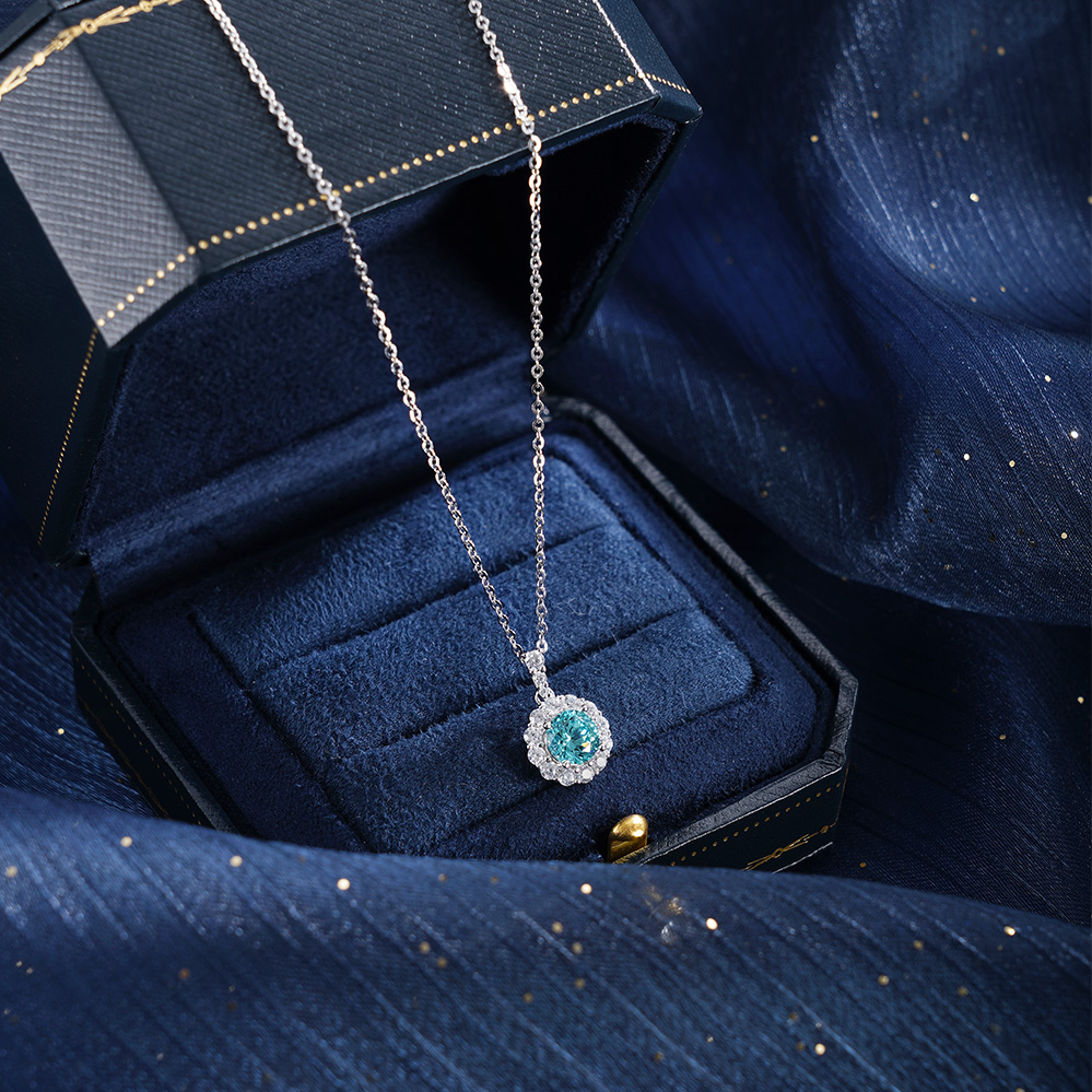 子佩集【悦光圆满】银S925套链【PM2307-1-XF】项链培育宝石帕拉伊巴蓝碧玺2601