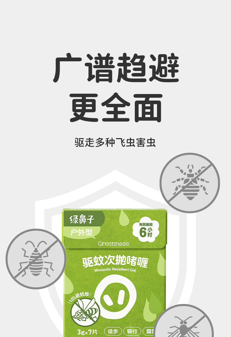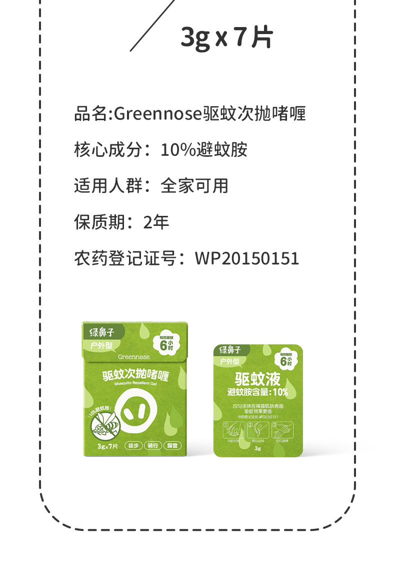 *【绿鼻子】次抛啫喱户外便携全家可用驱蚊水蚊怕水防虫防蚊喷雾驱蚊液