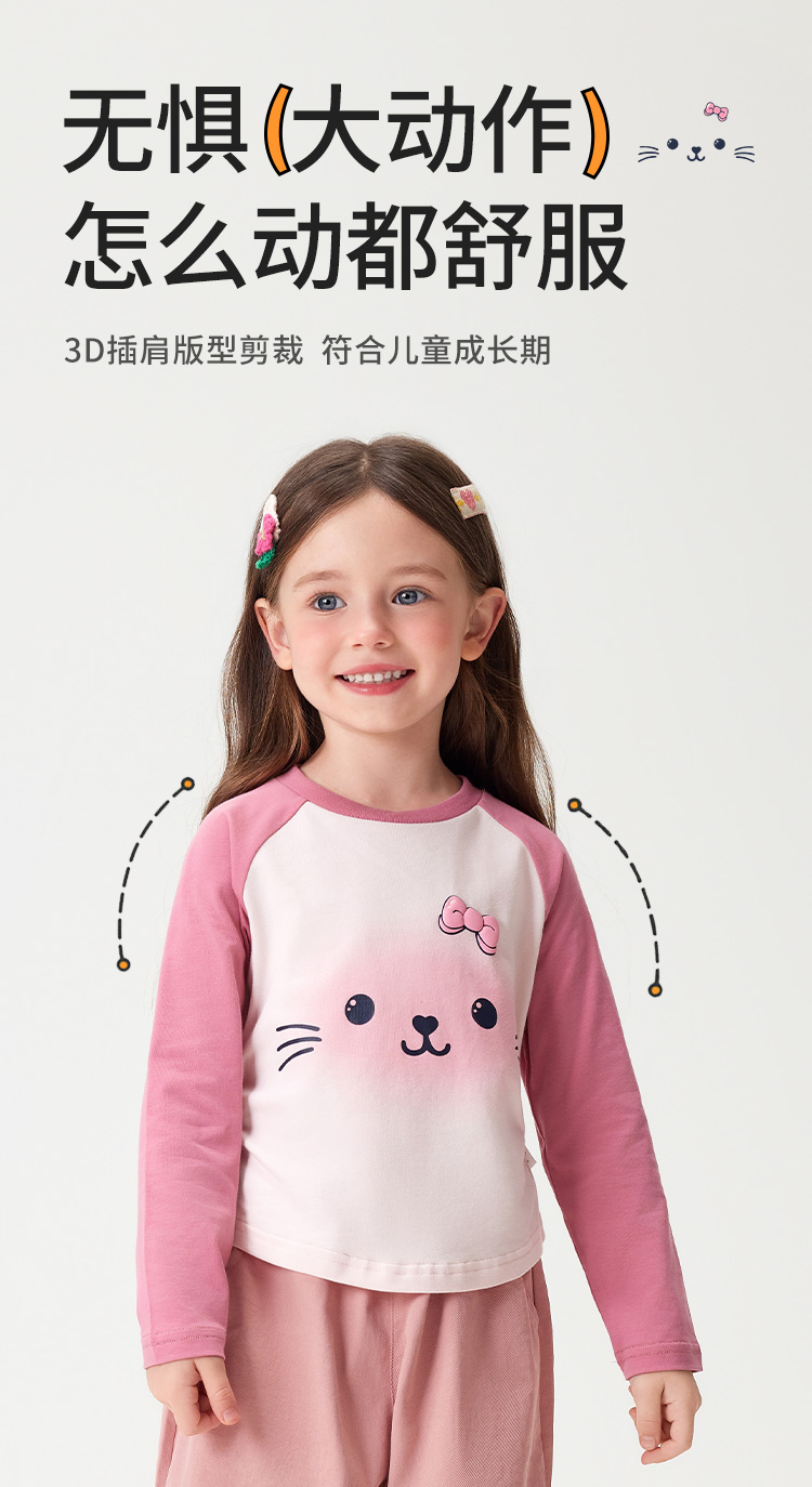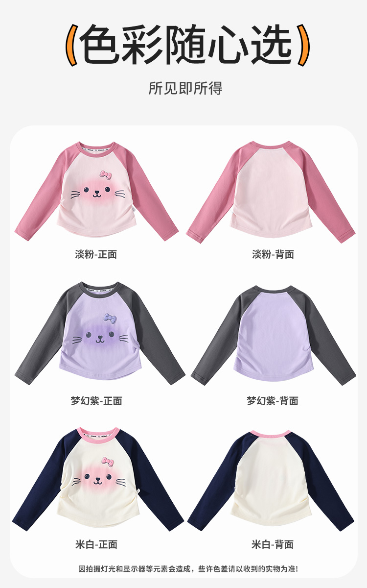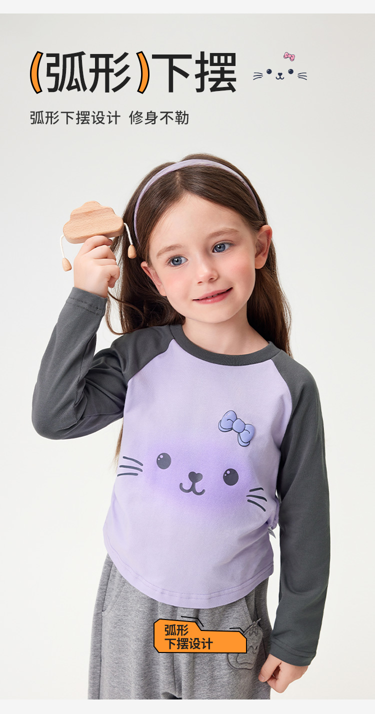 【10A抑菌 弧形下摆】【90-130】【可可鸭】女童春秋甜美长袖T恤