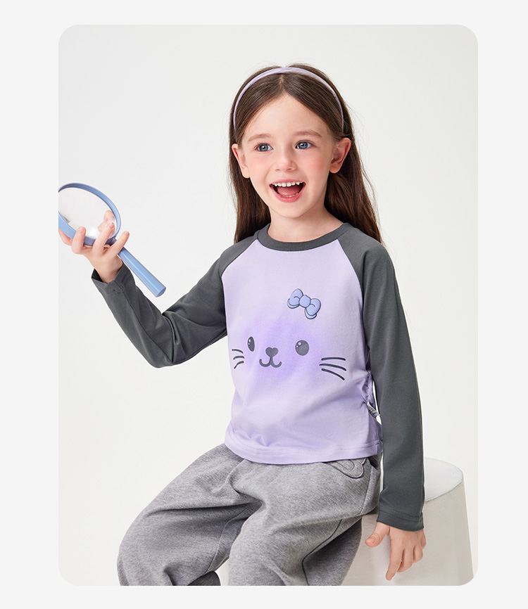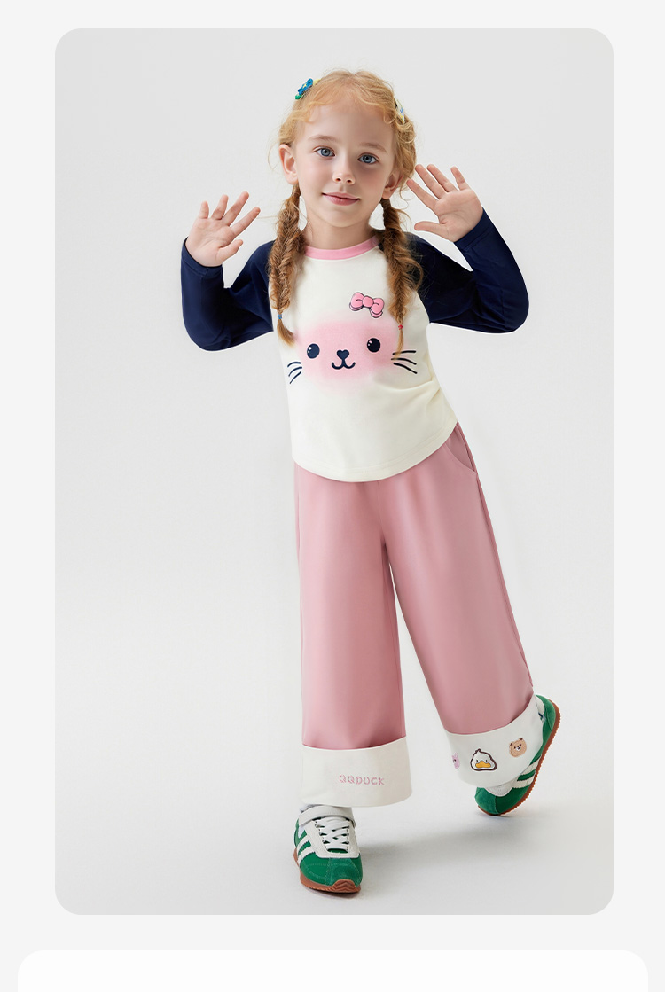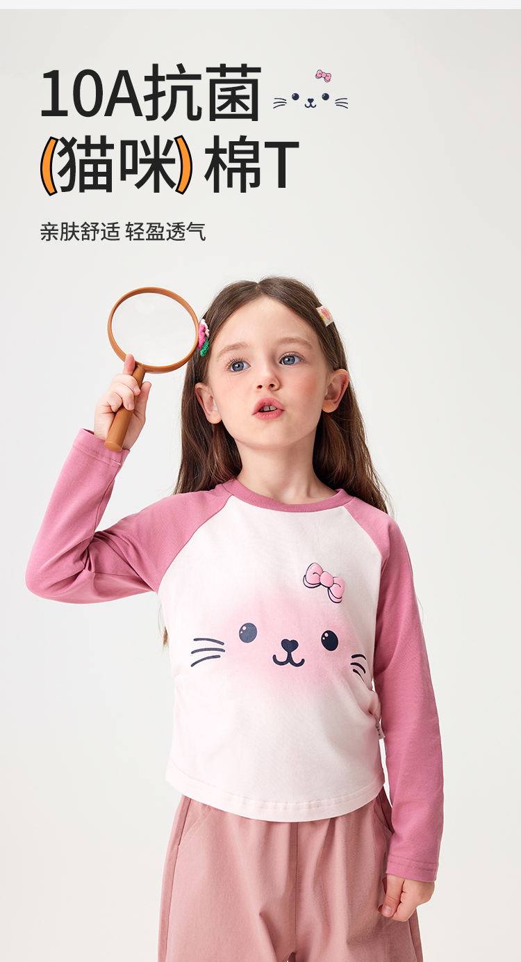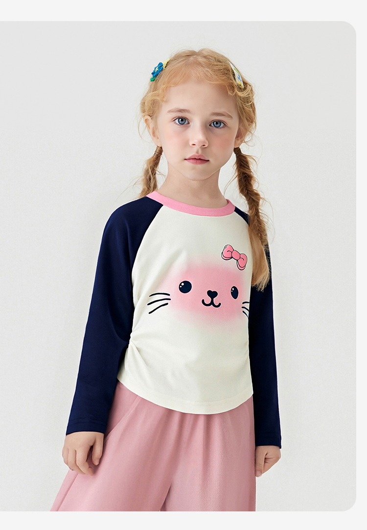 【10A抑菌 弧形下摆】【90-130】【可可鸭】女童春秋甜美长袖T恤