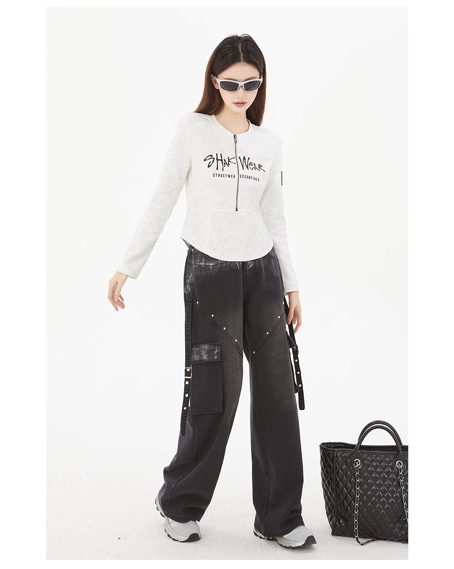 P&X设计师女装时尚潮流字母针织短款T恤半拉链设计825102135 白色