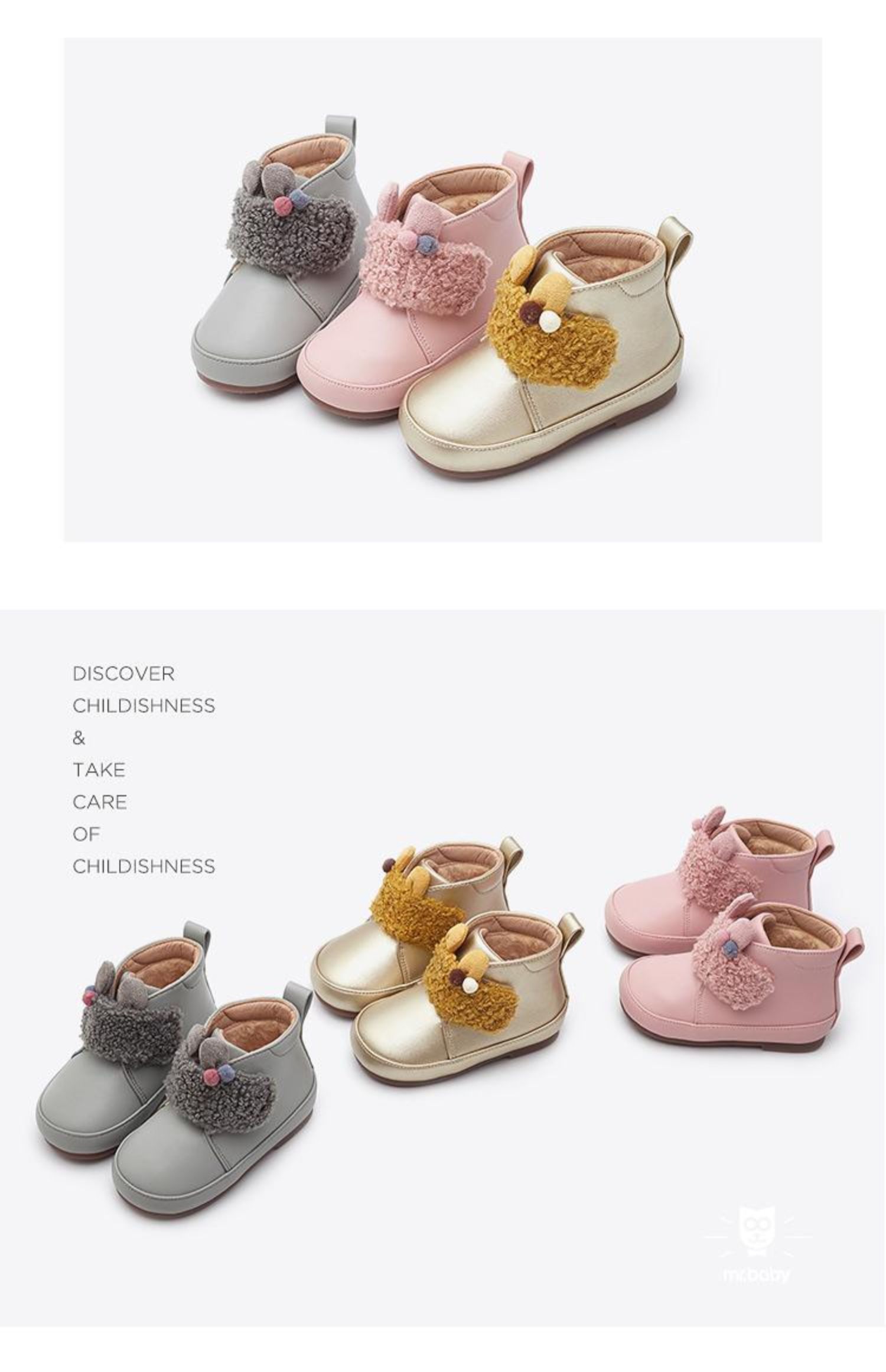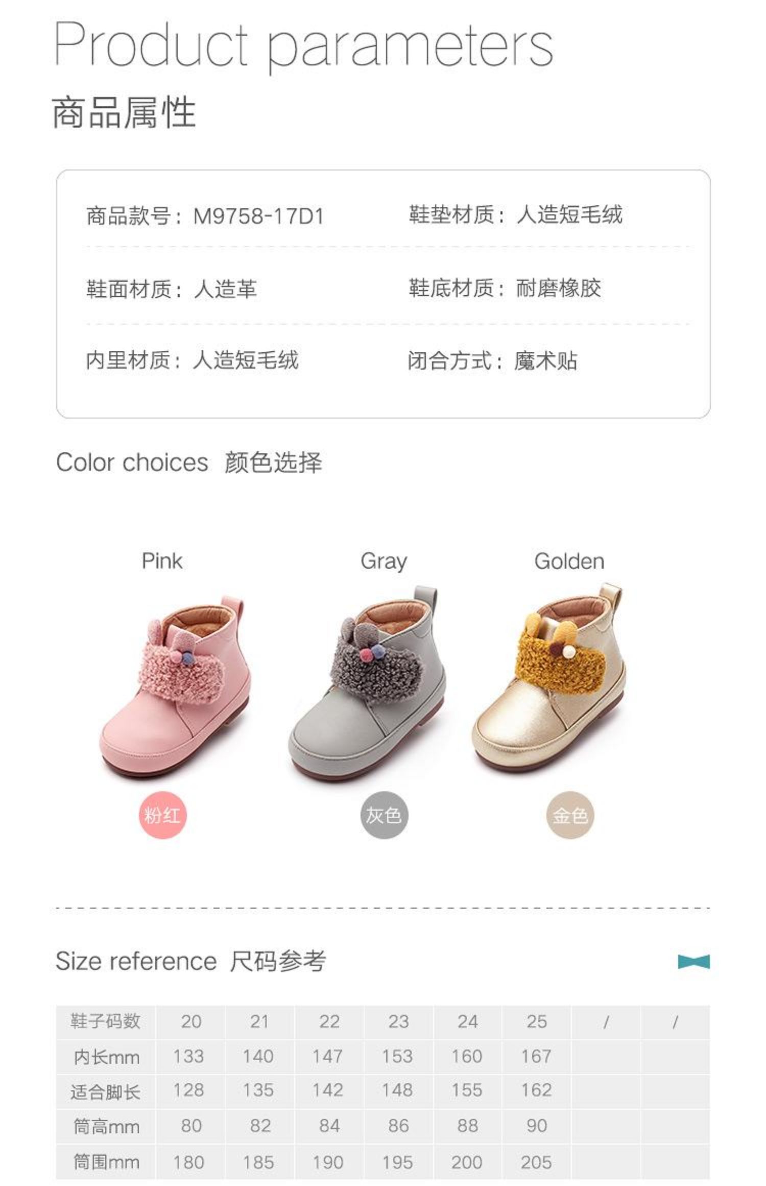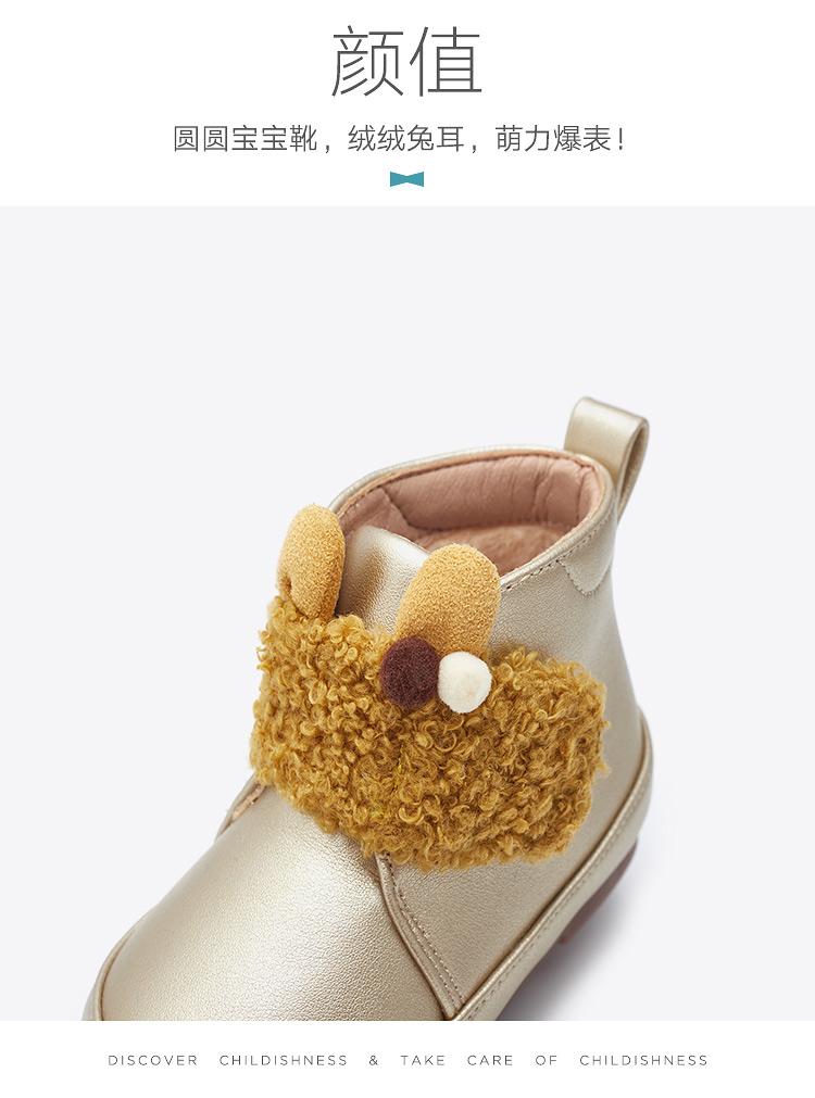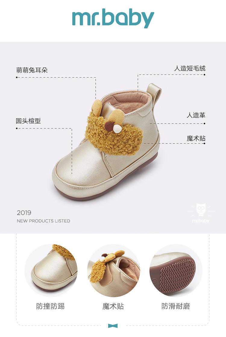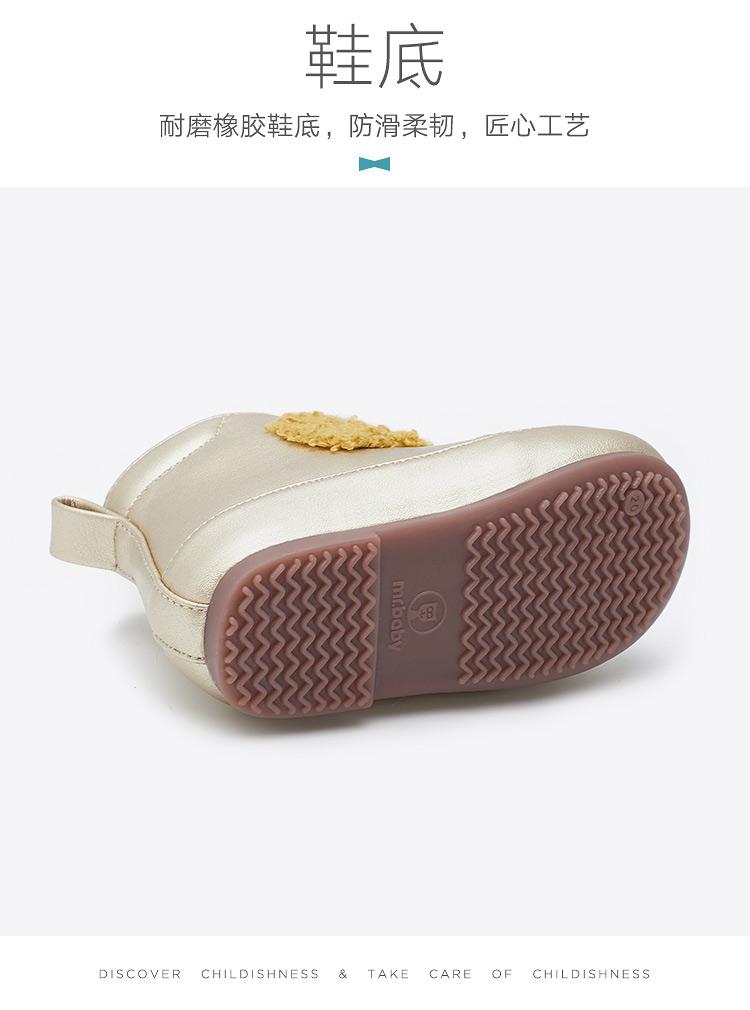 mrbaby童鞋 2020冬季新款 魔术贴加绒防滑保暖小童公主宝宝短靴