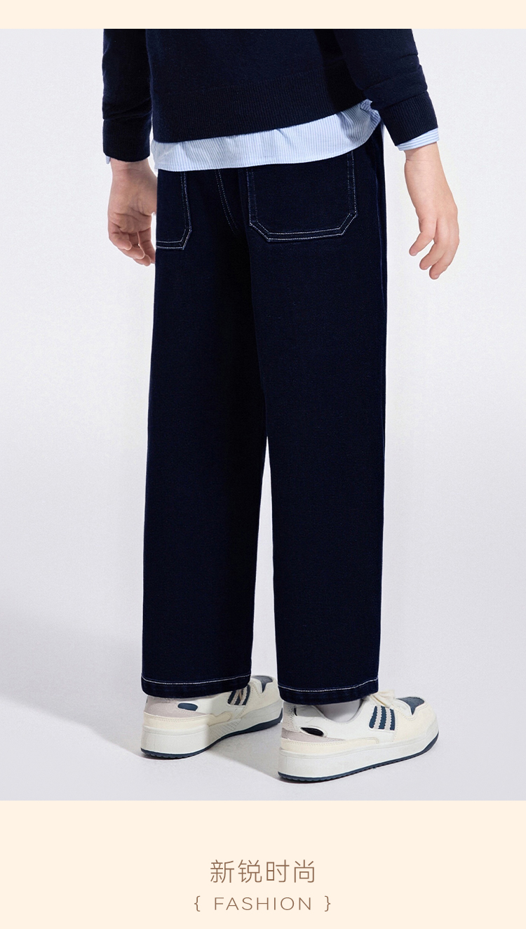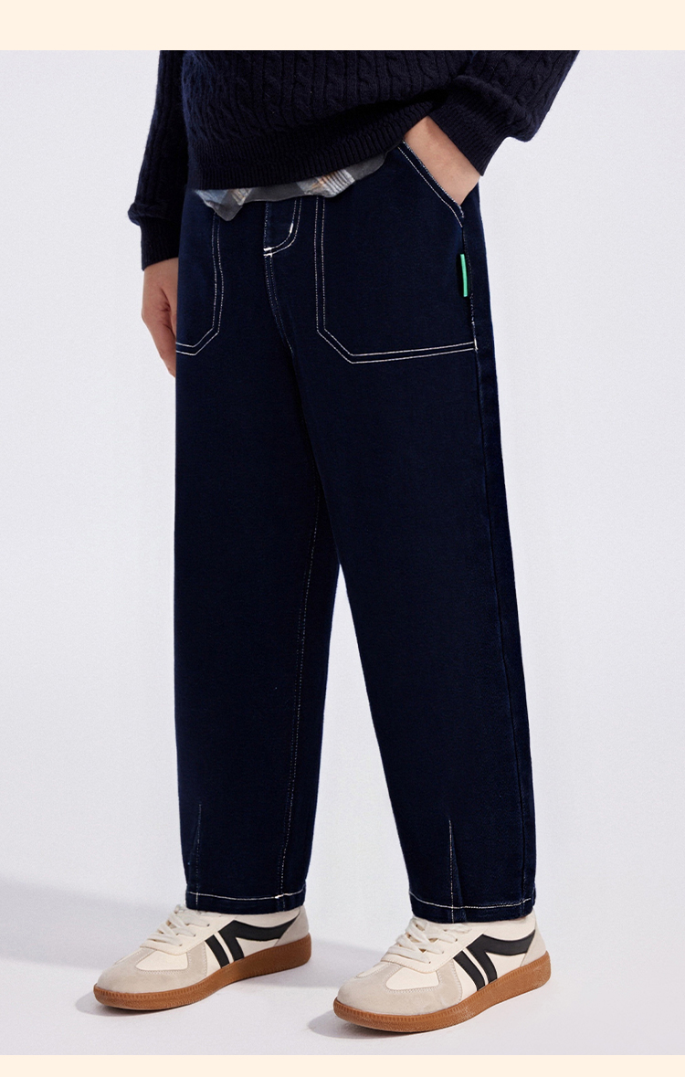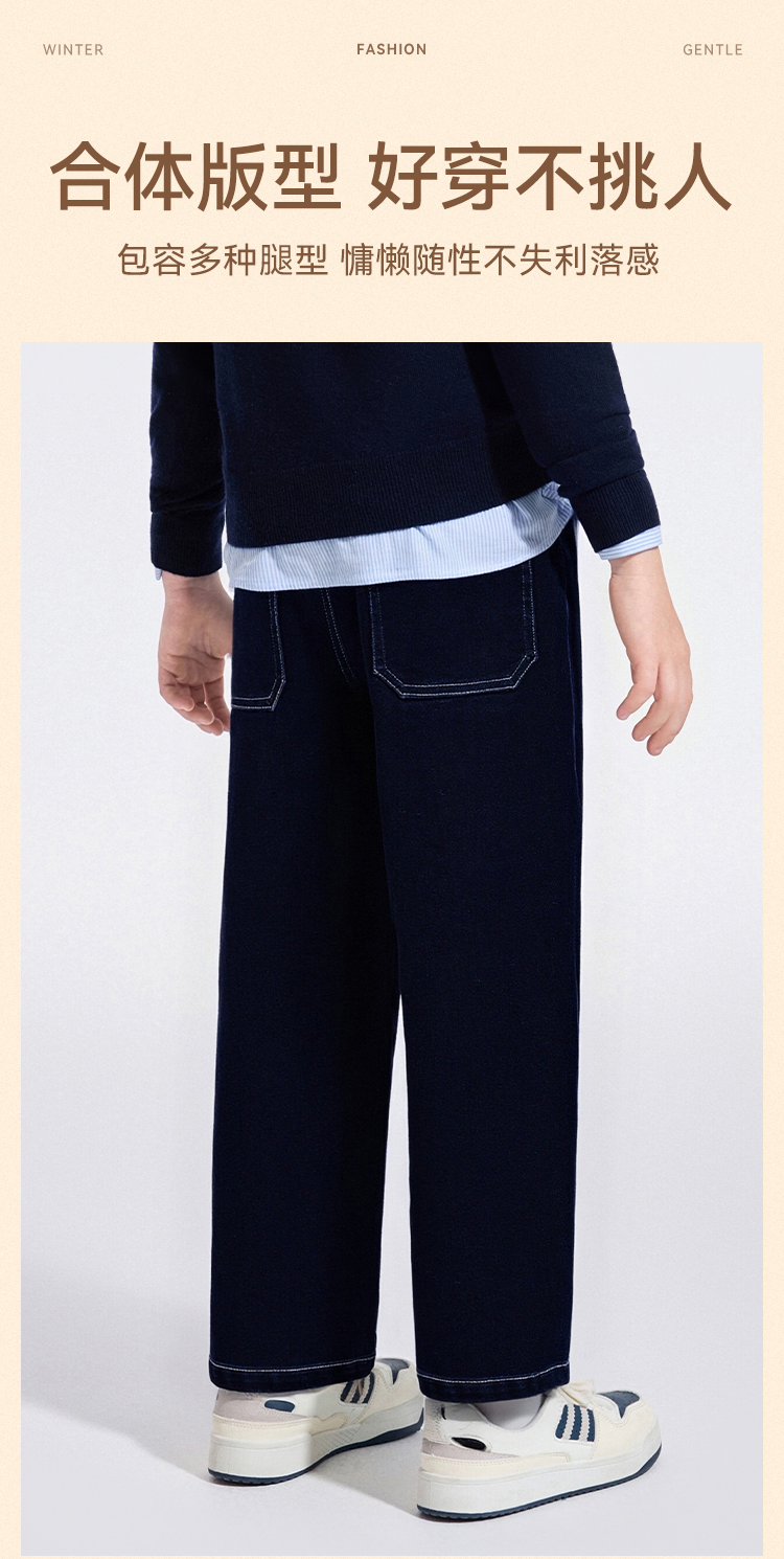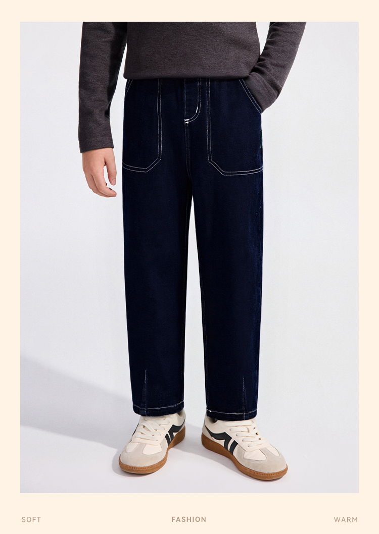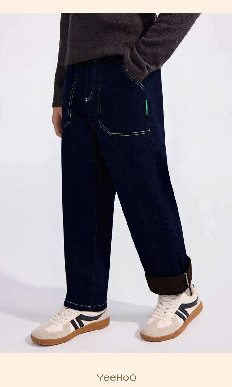 【英氏】【加绒】【110-175】男童牛仔裤儿童保暖裤子
