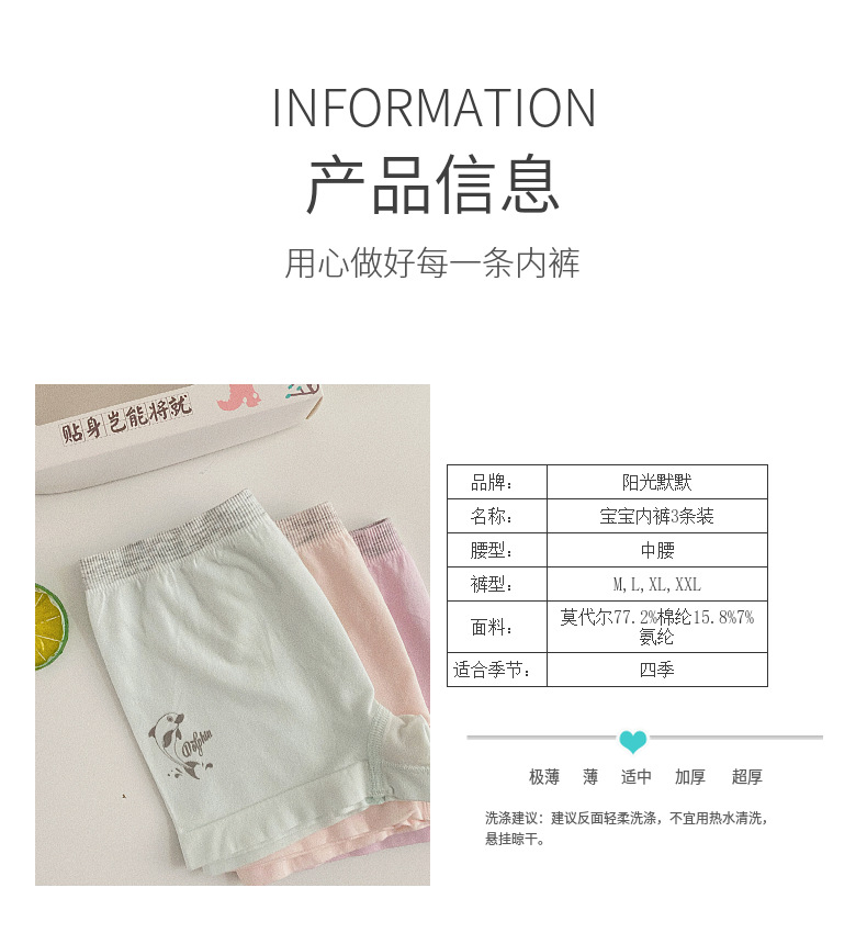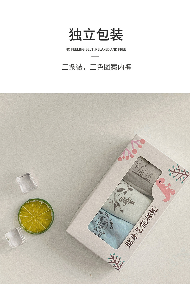 【品牌直发】【3条1盒装】儿童感温内裤盒套装 卡通莫代尔蚕丝儿童内裤 宝宝内裤