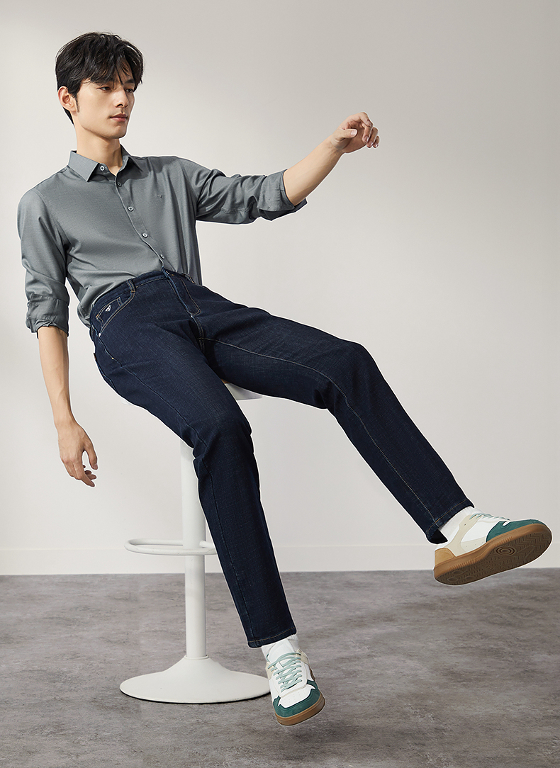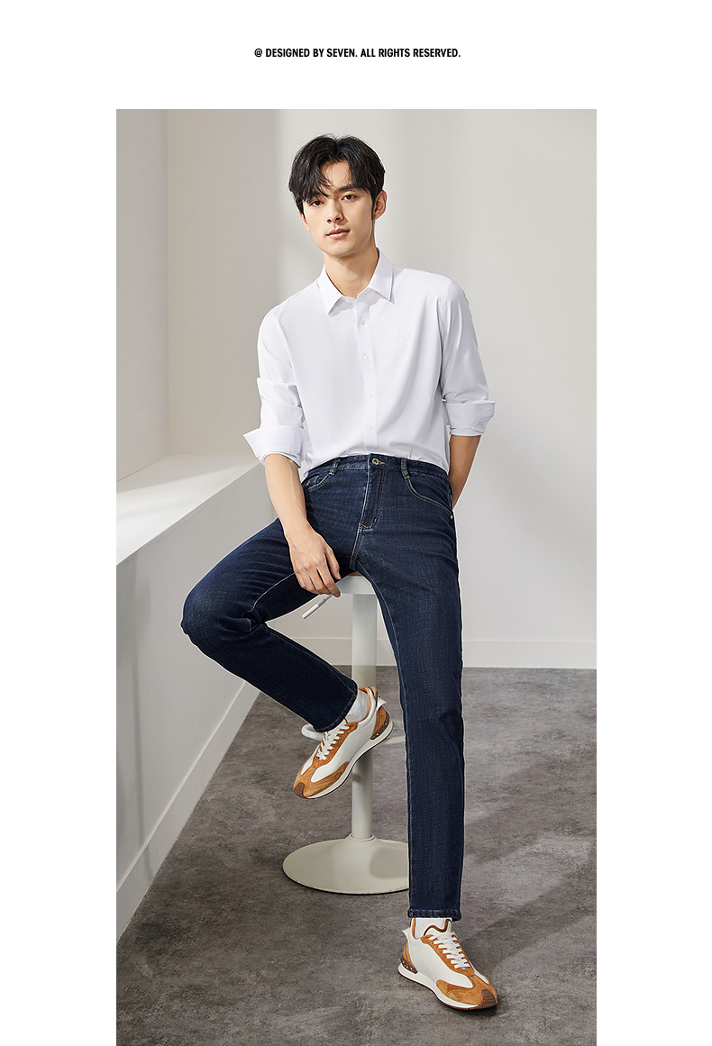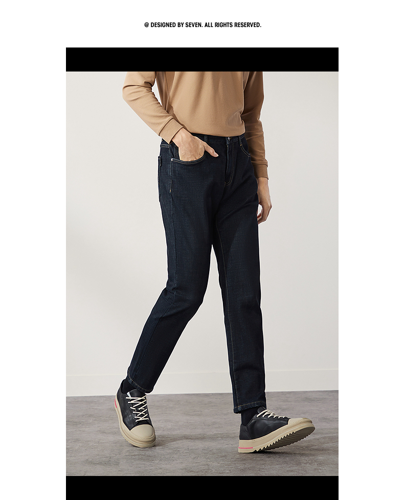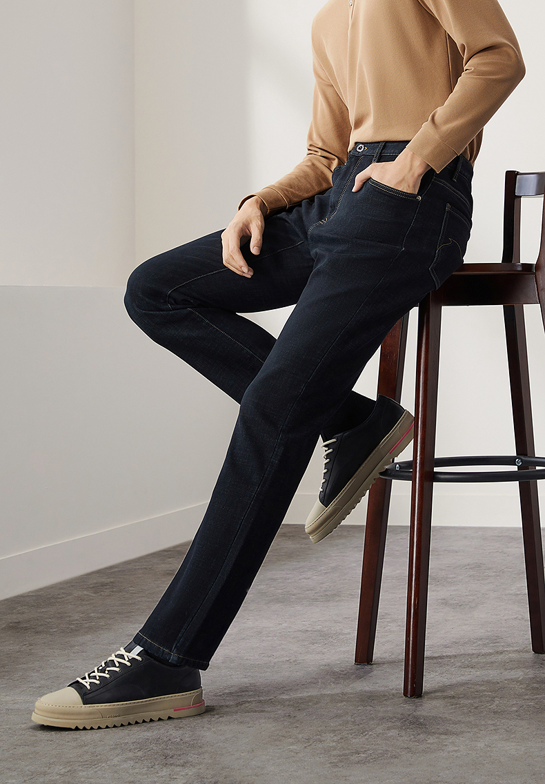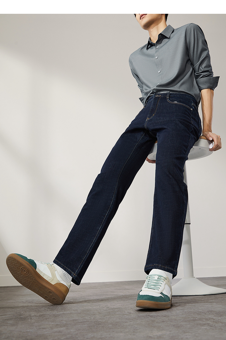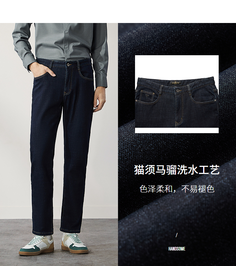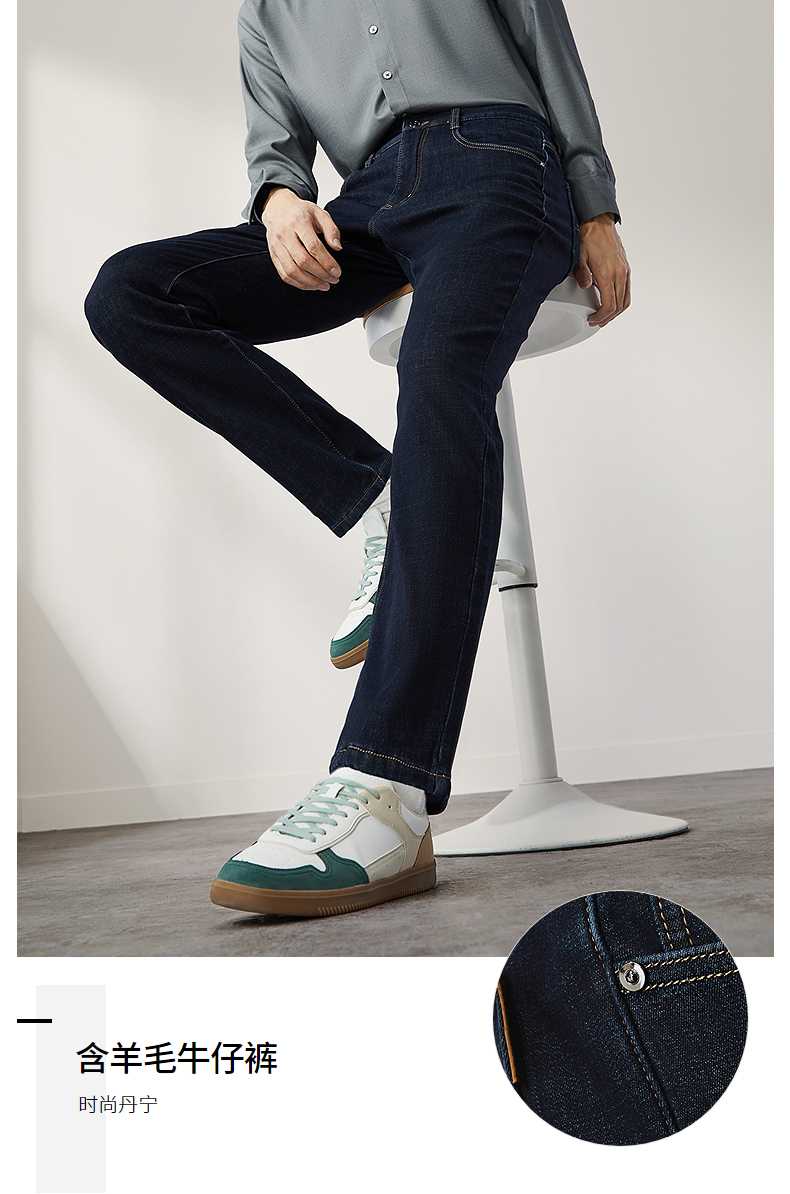 【含羊毛】柒牌水洗牛仔裤男2024冬季厚款复合绒保暖舒适男士长裤 127H71340