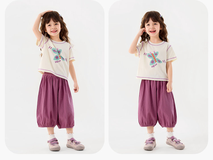 嘟嘟家女童套装2026夏季新款女孩短袖夏装女宝气球裤两件套童装潮C6BTZ222