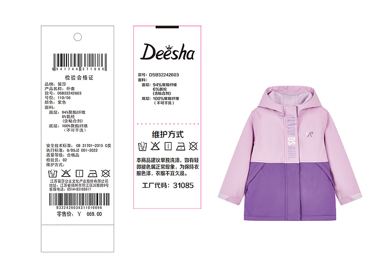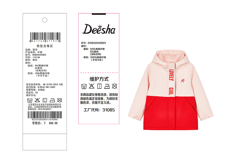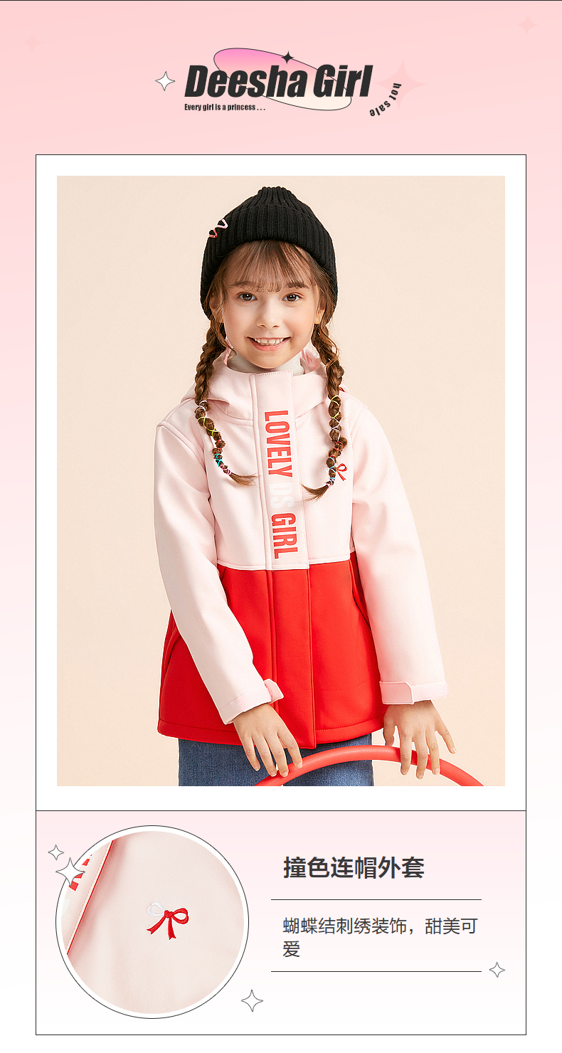 笛莎童装女童外套春季2023新款中大童衣服时尚撞色儿童冲锋衣潮