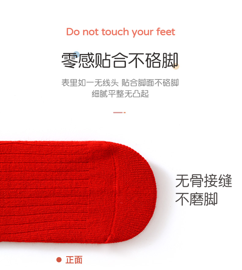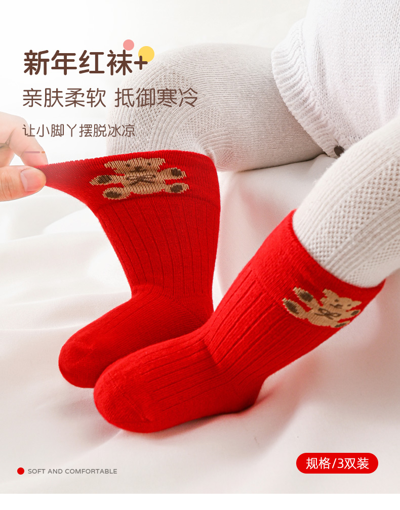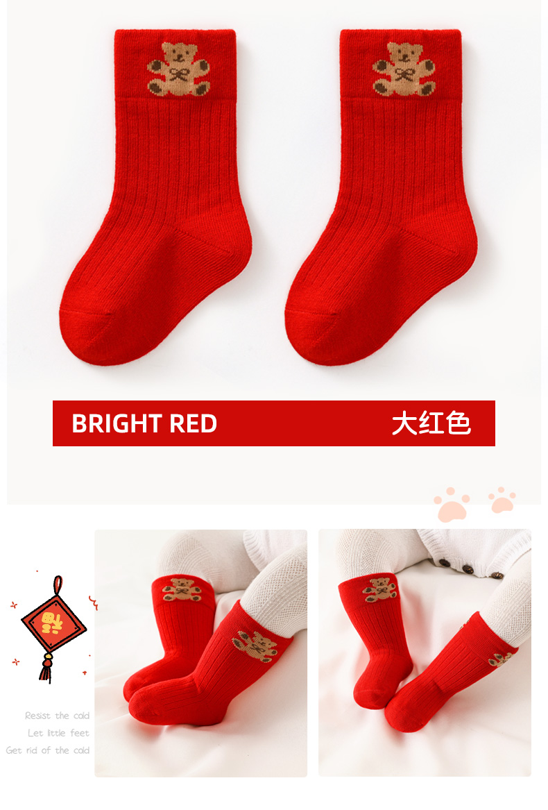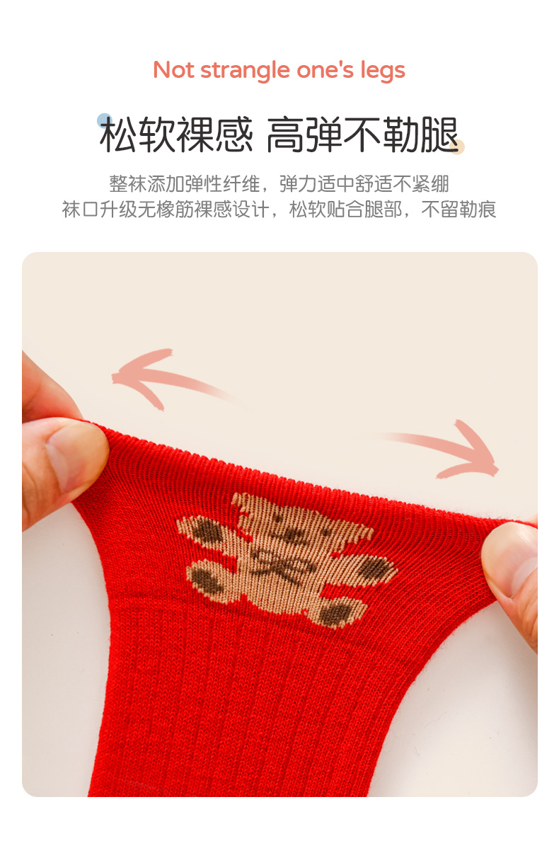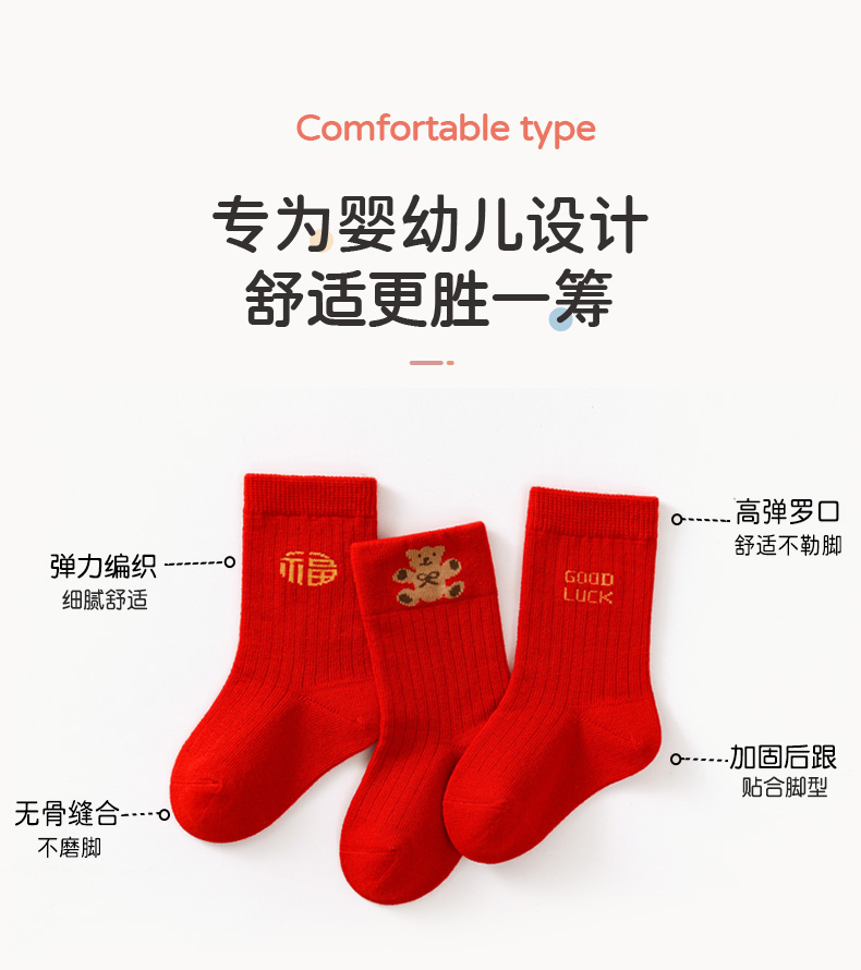 贝肽斯婴儿袜子春秋新年袜新生儿童男女新年红宝宝周岁中筒棉袜