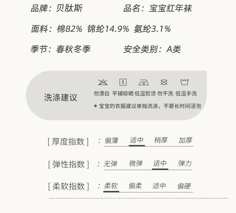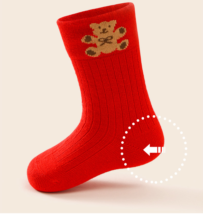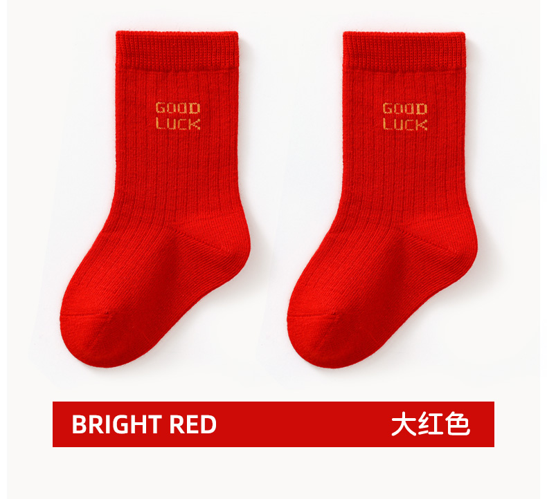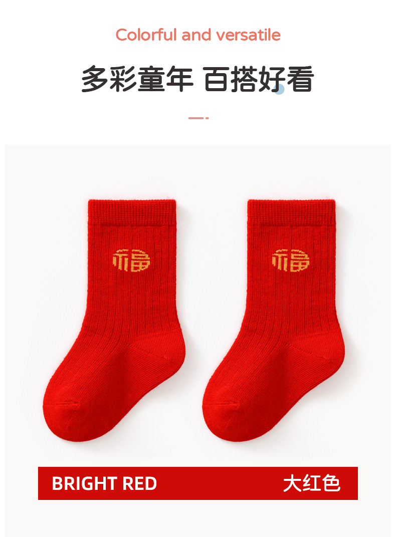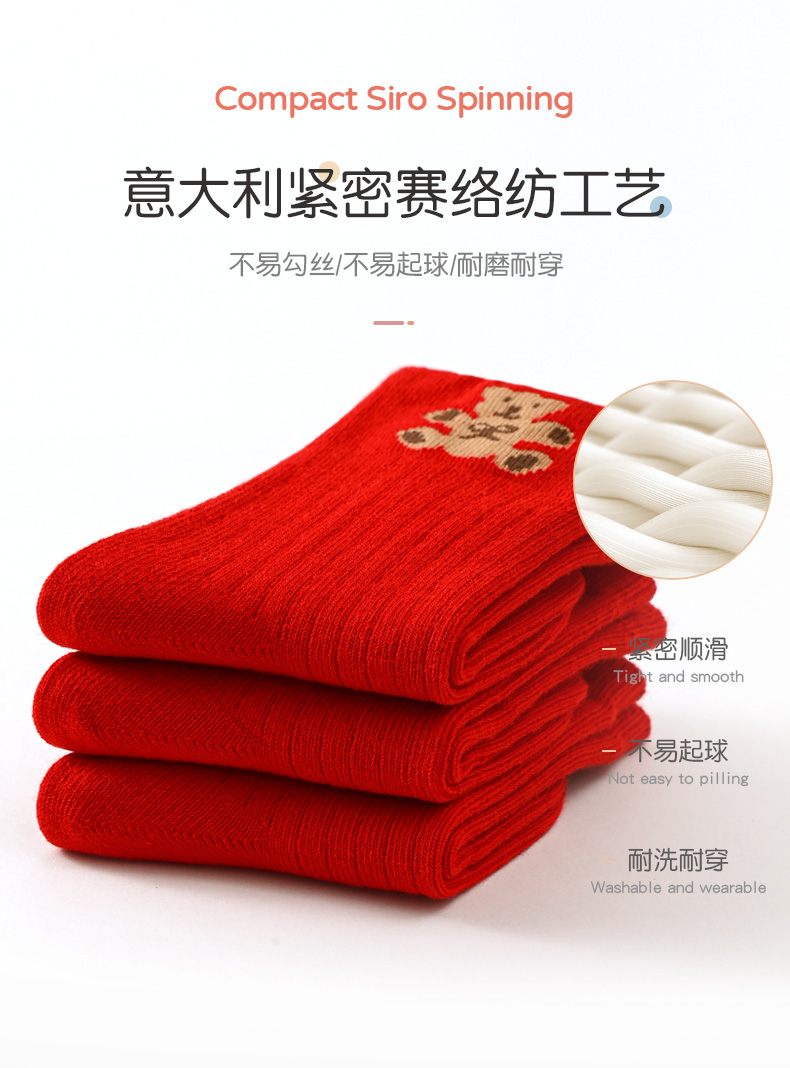 贝肽斯婴儿袜子春秋新年袜新生儿童男女新年红宝宝周岁中筒棉袜