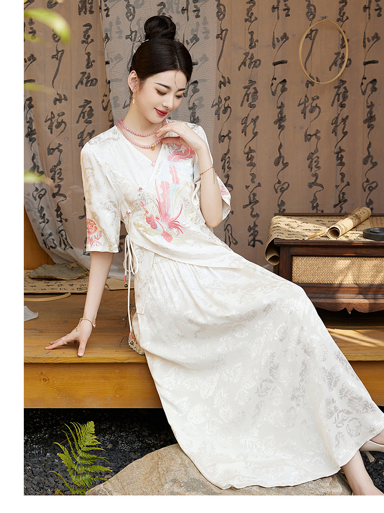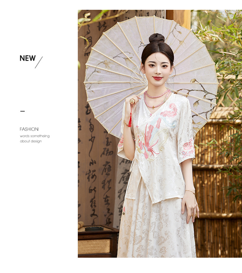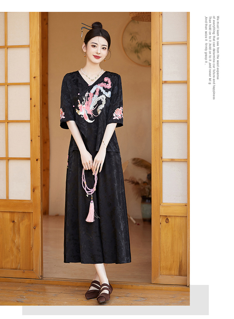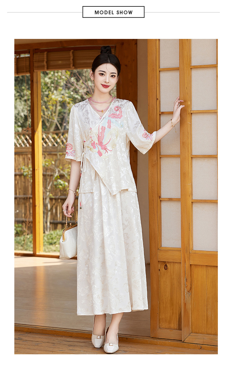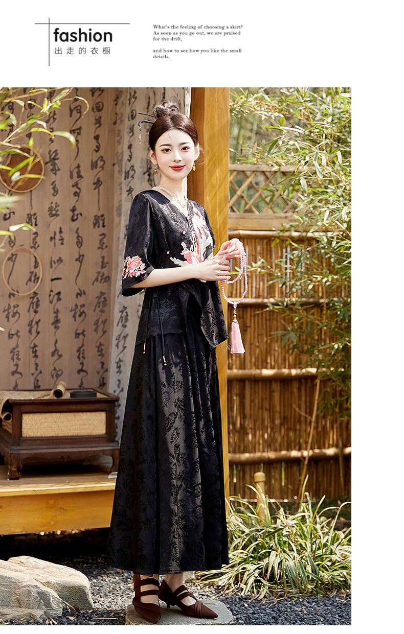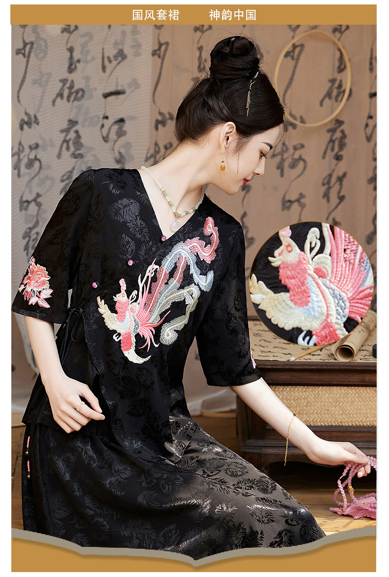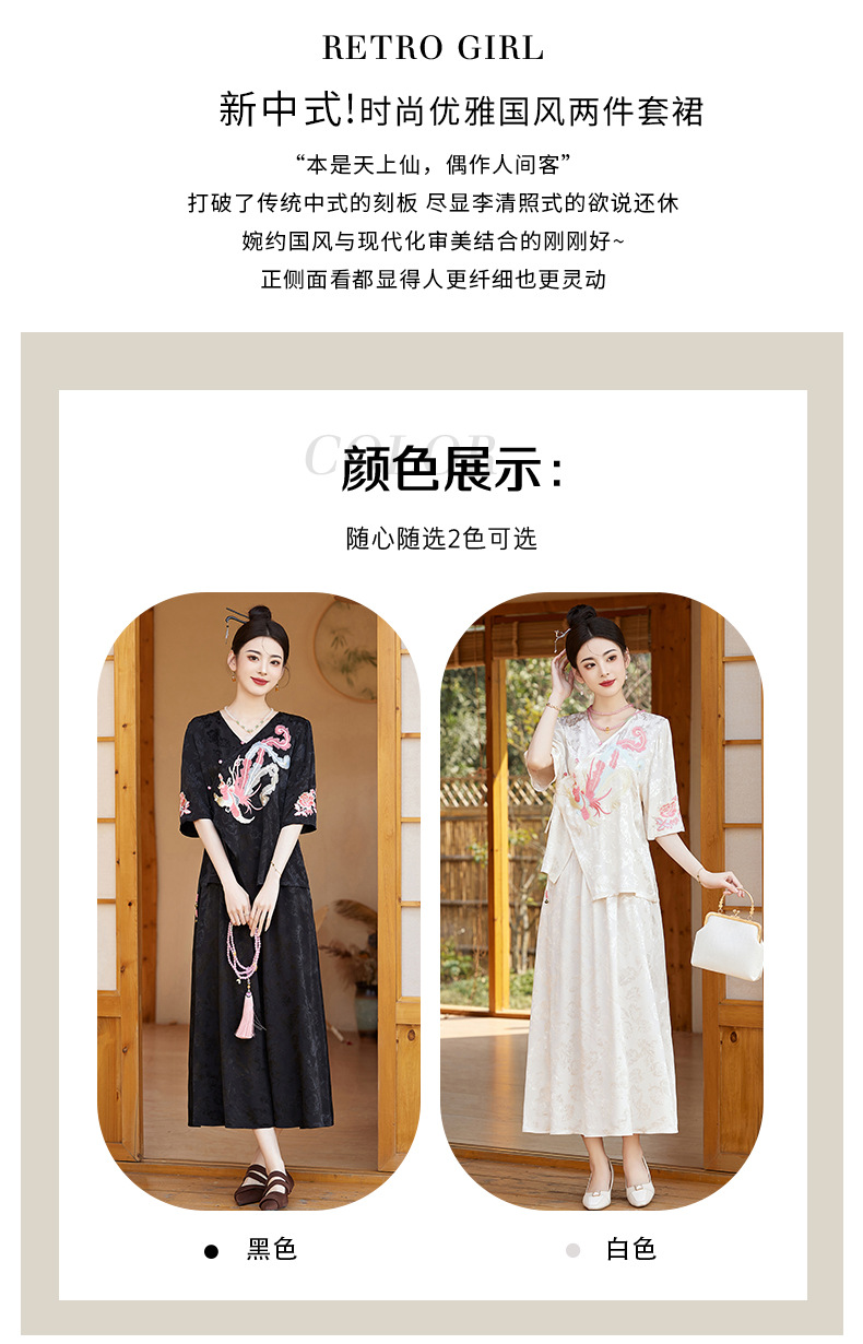 新中式刺绣套装女2025夏季新款时尚显瘦改良汉服旗袍半身裙两件套HR-YBER110