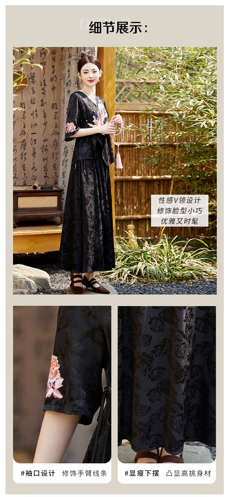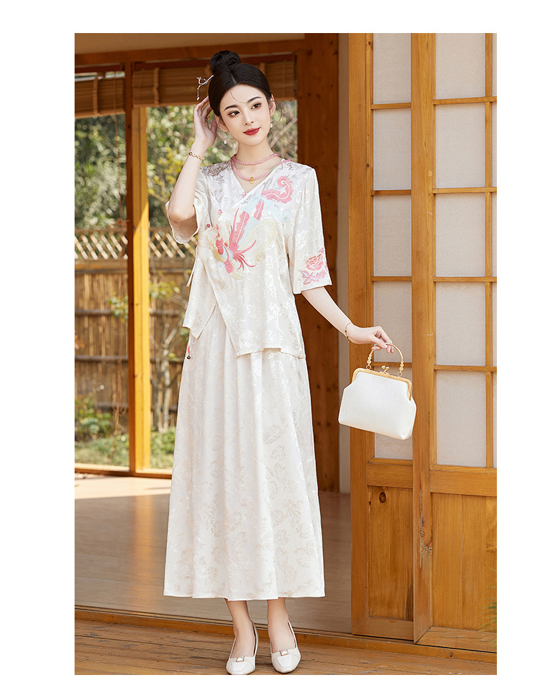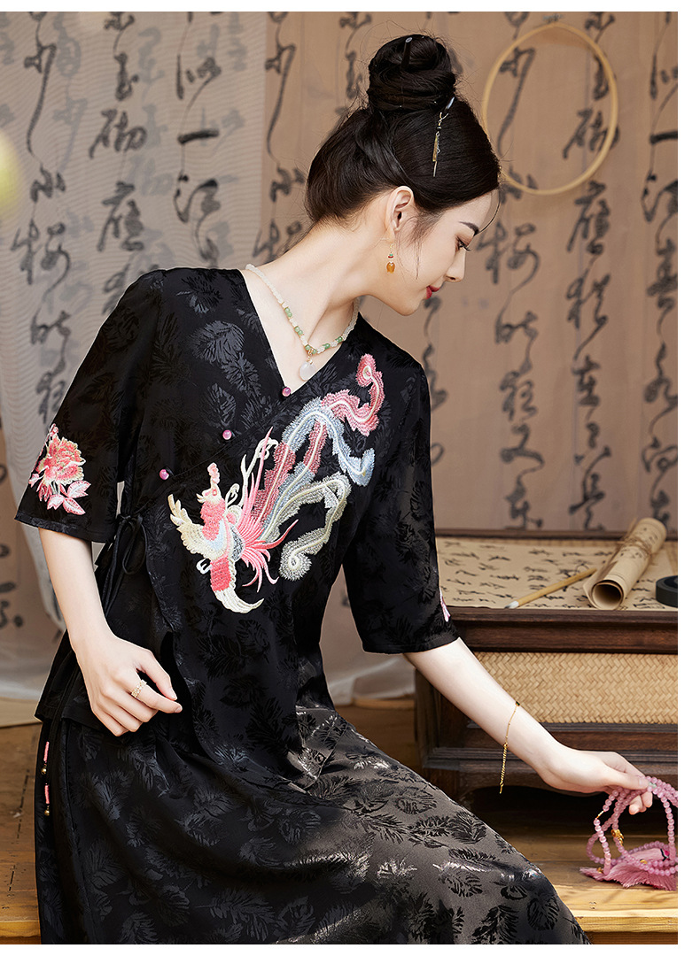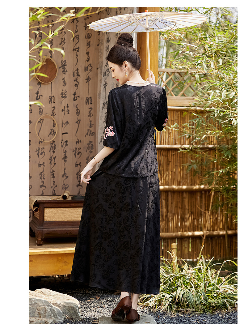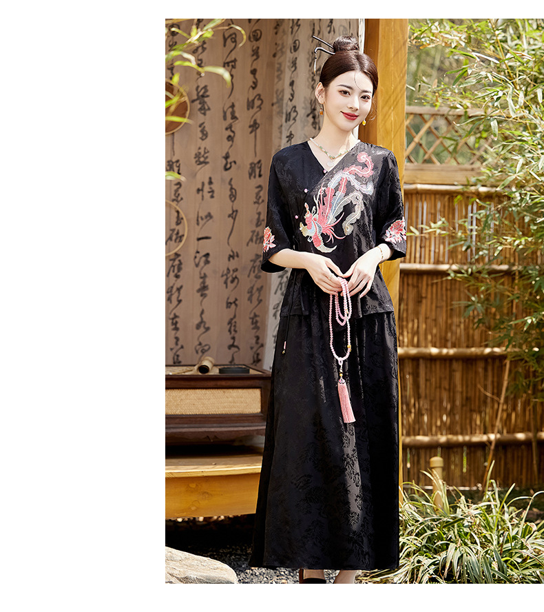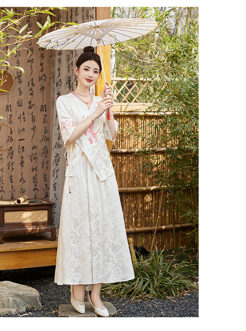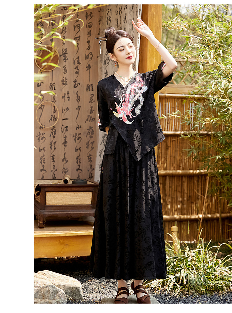 新中式刺绣套装女2025夏季新款时尚显瘦改良汉服旗袍半身裙两件套HR-YBER110