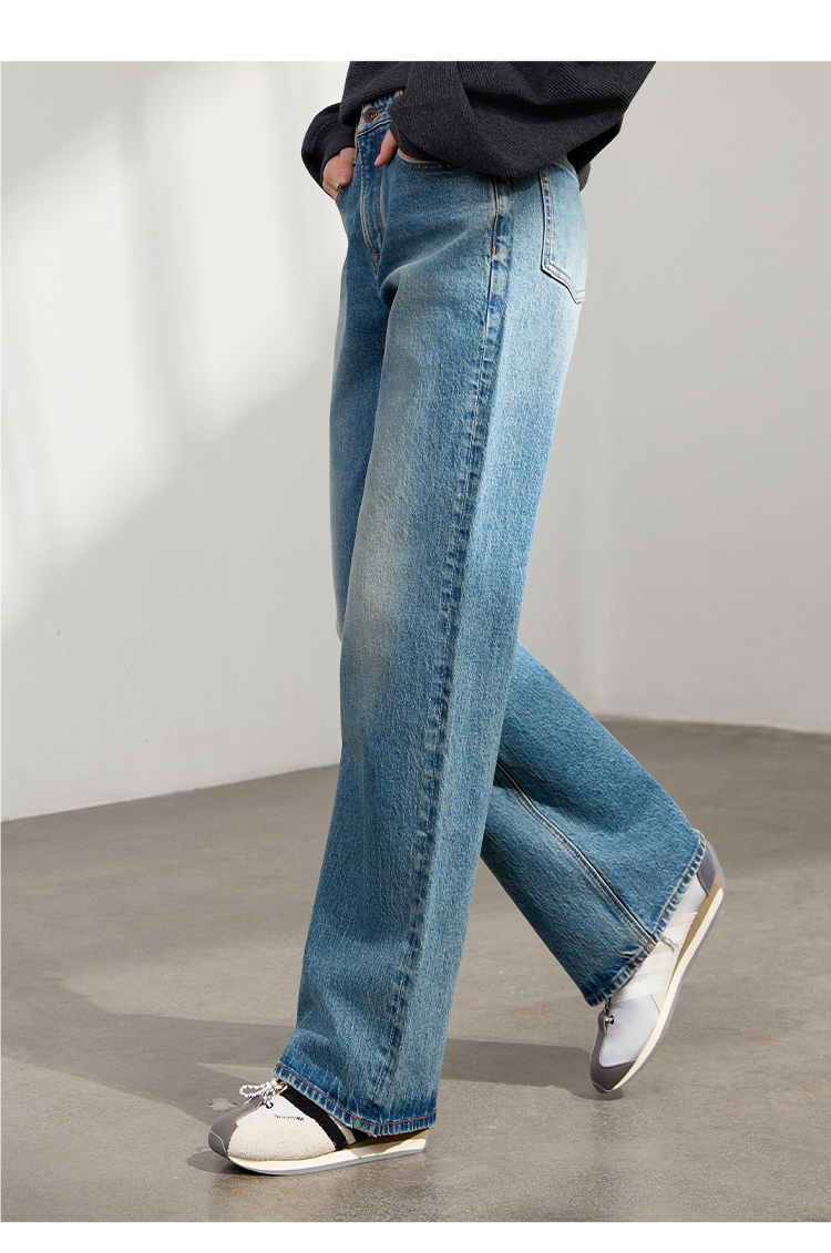 DENYBULES天丝木棉法棍裤直筒休闲女士水洗高腰弹力百搭时尚
