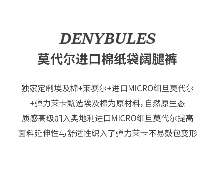 DENYBULES莫代尔进口棉纸袋阔腿裤