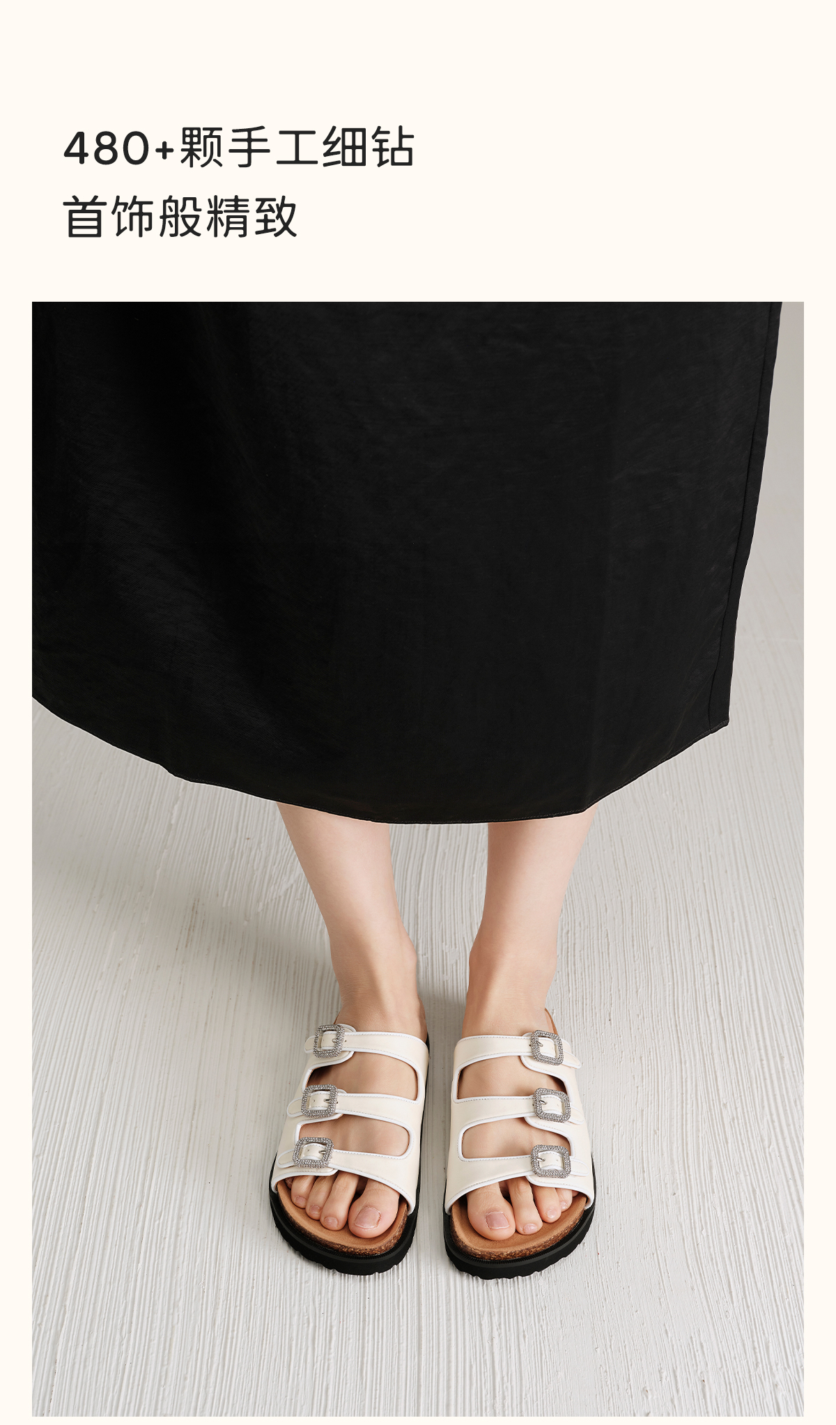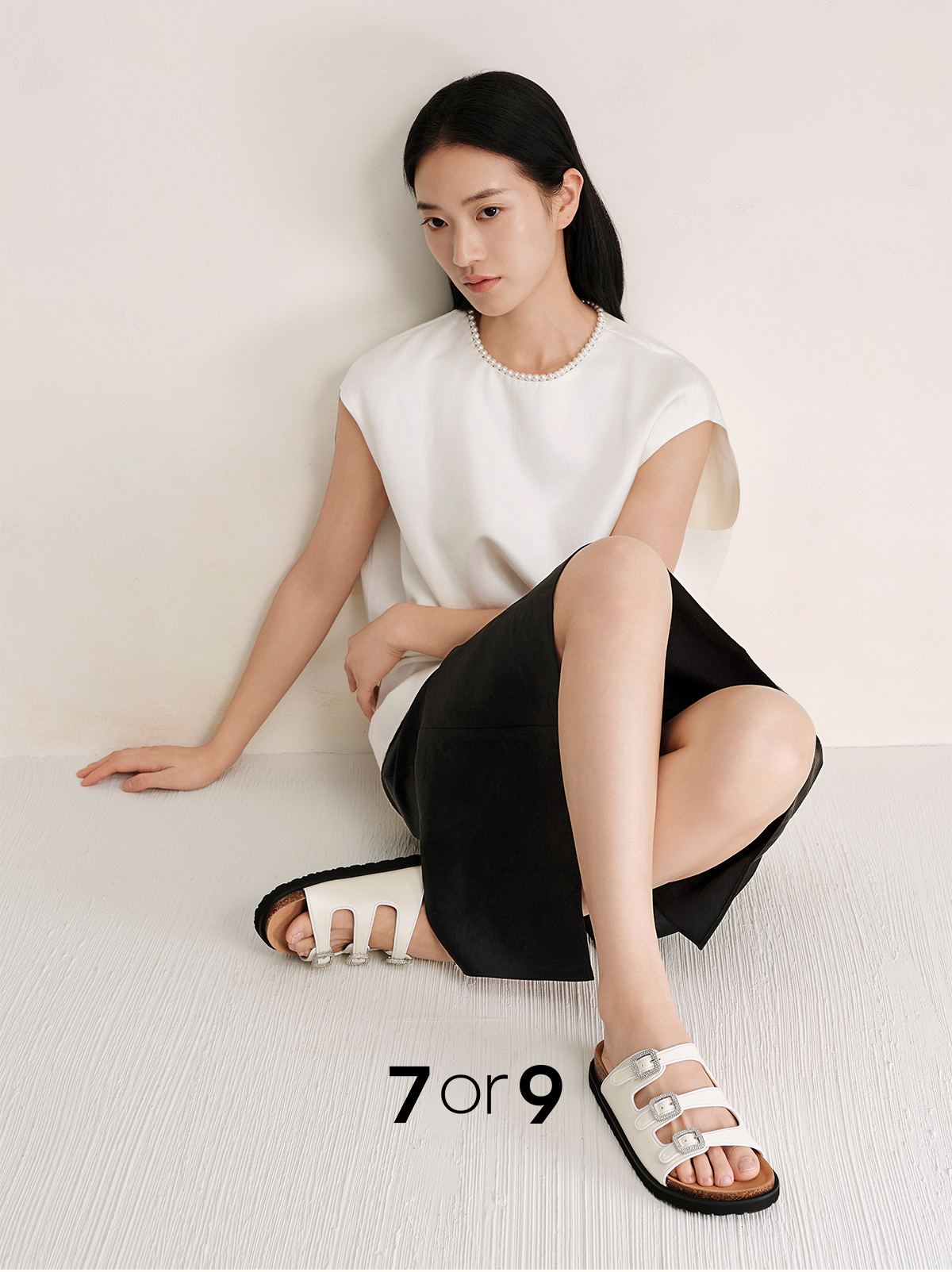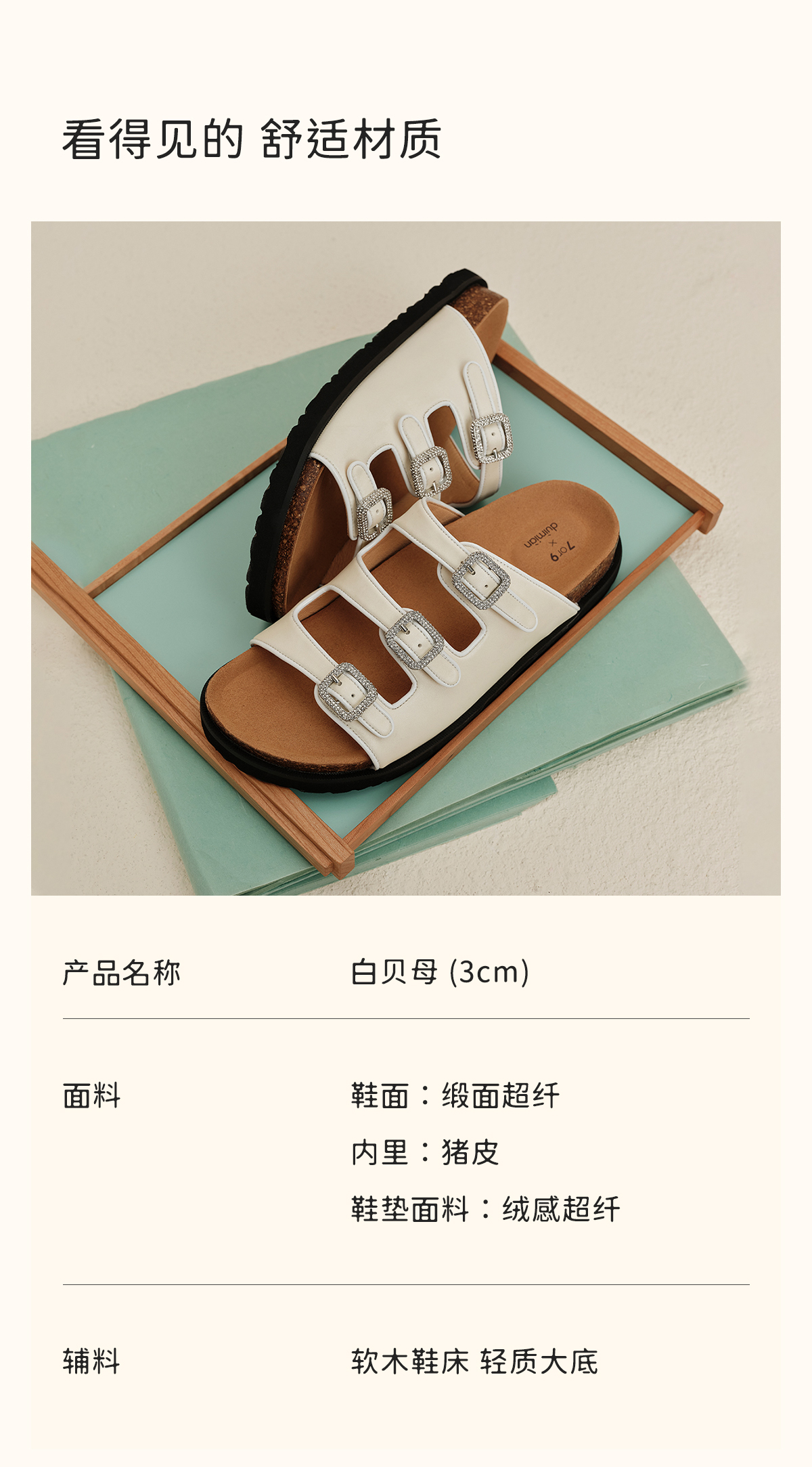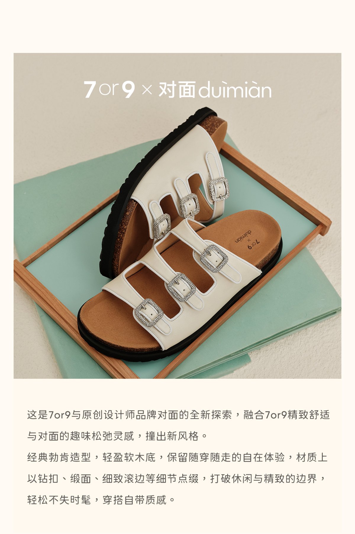 7or9&duimian联名款三字扣凉拖凉鞋白贝母