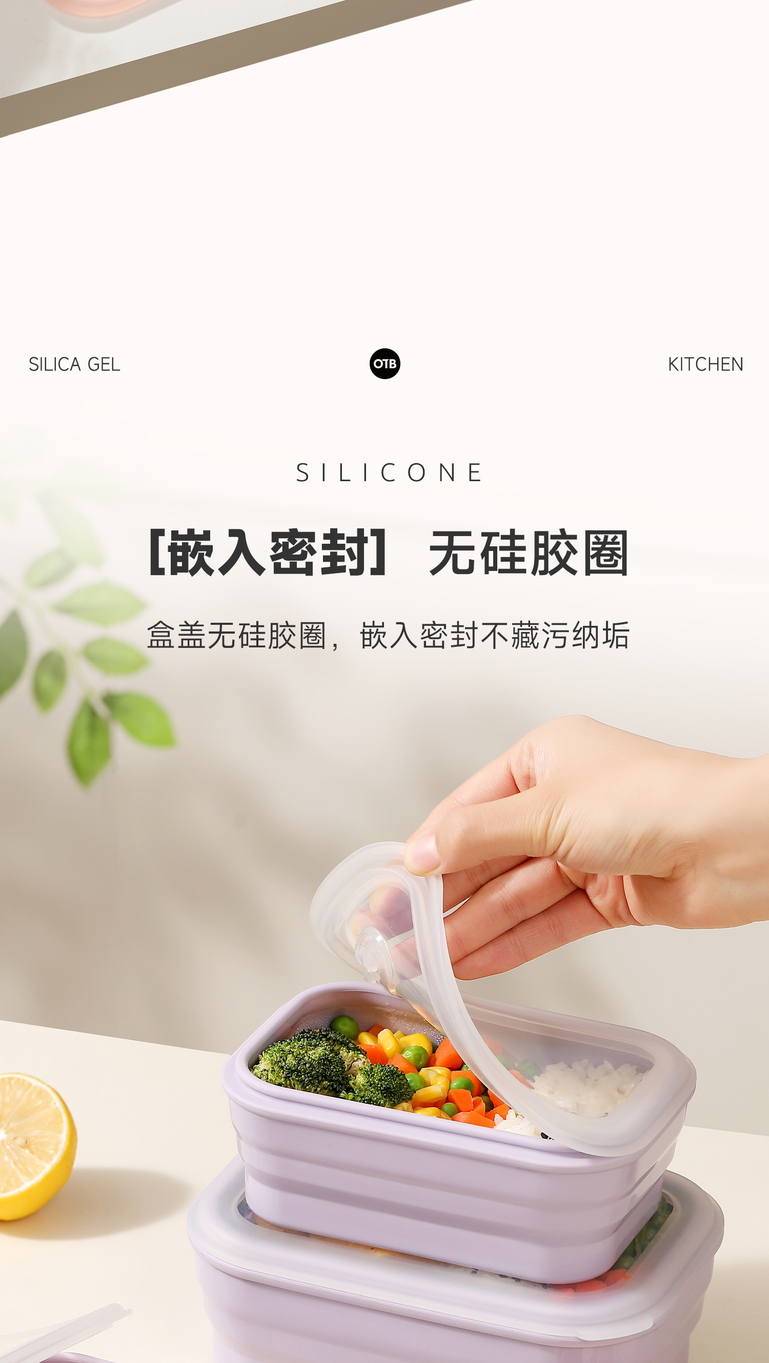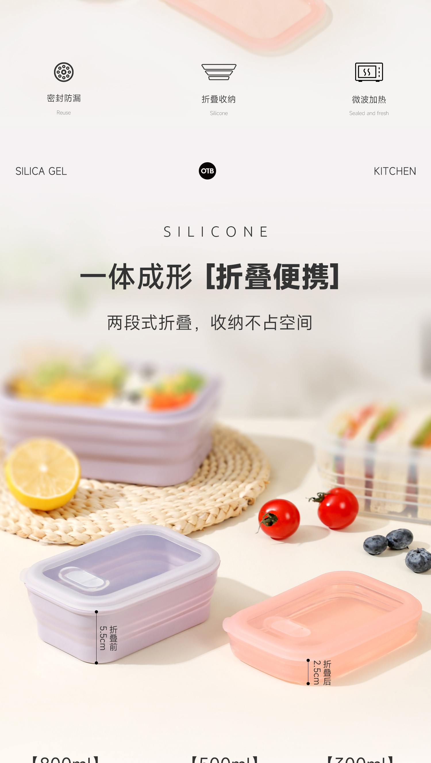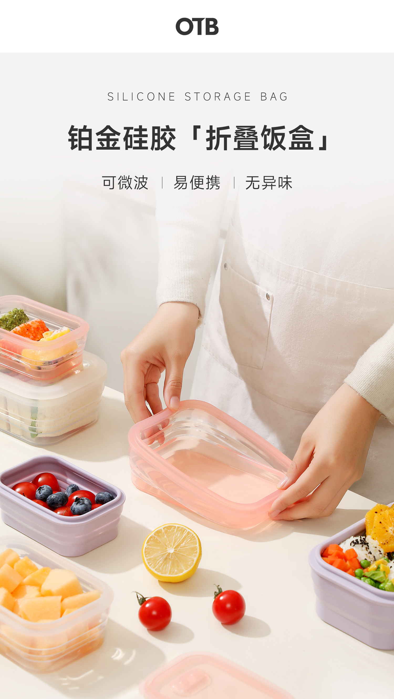 【折叠饭盒】OTB铂金硅胶 折叠饭盒 德国LFGB食品接触标准 可微波