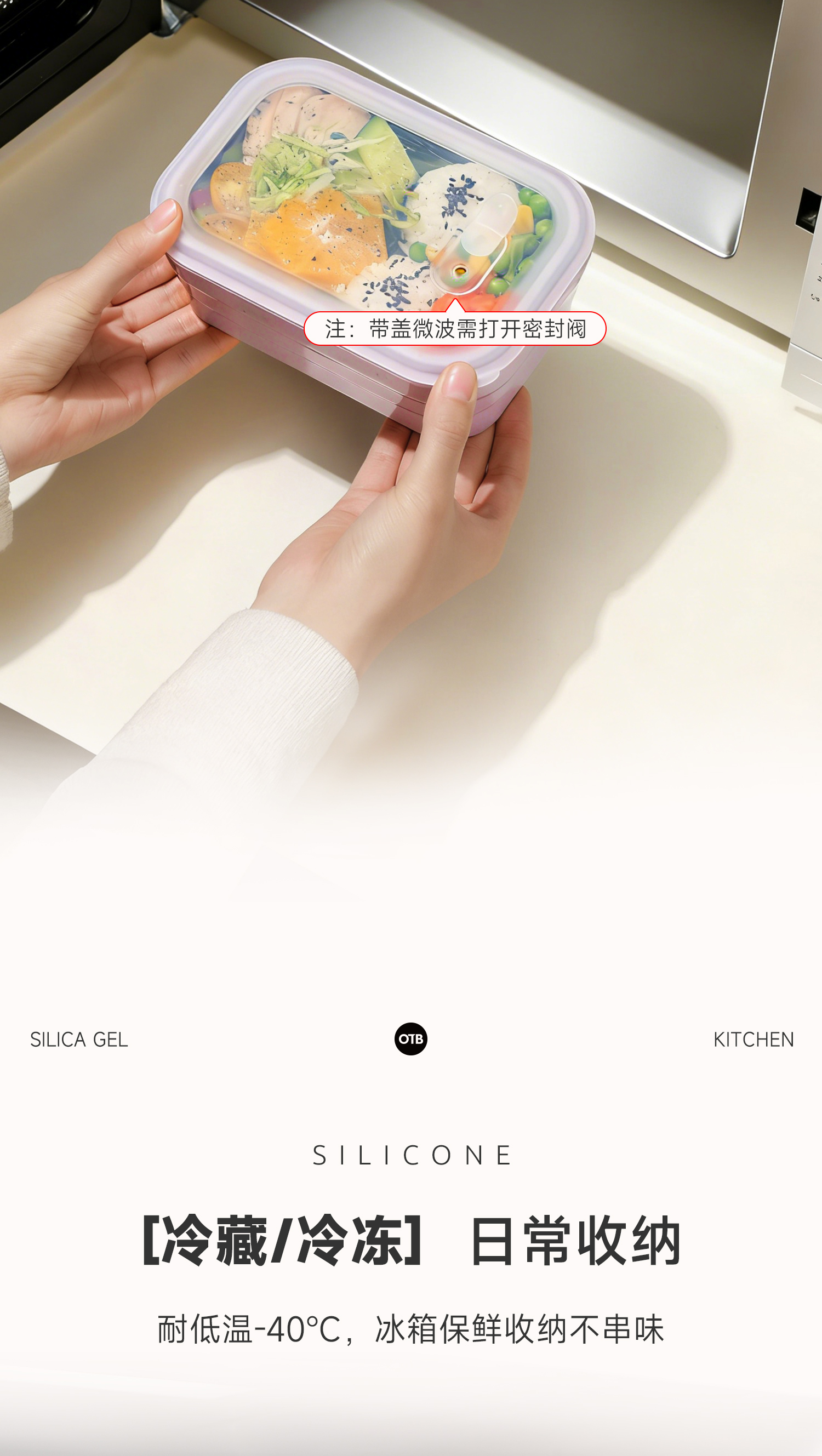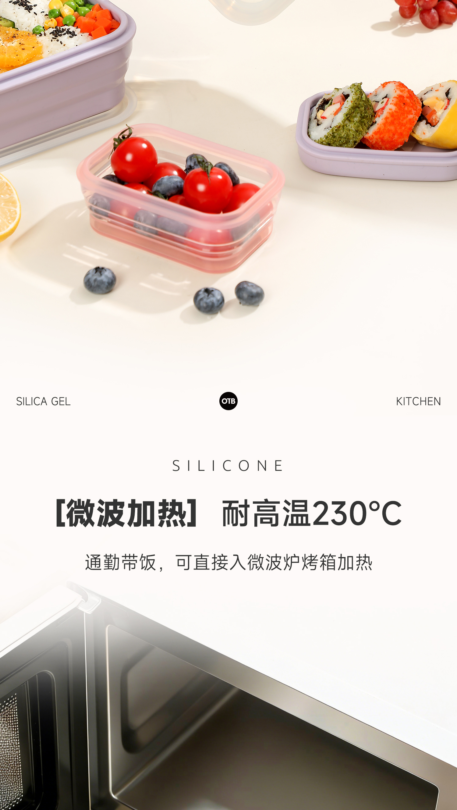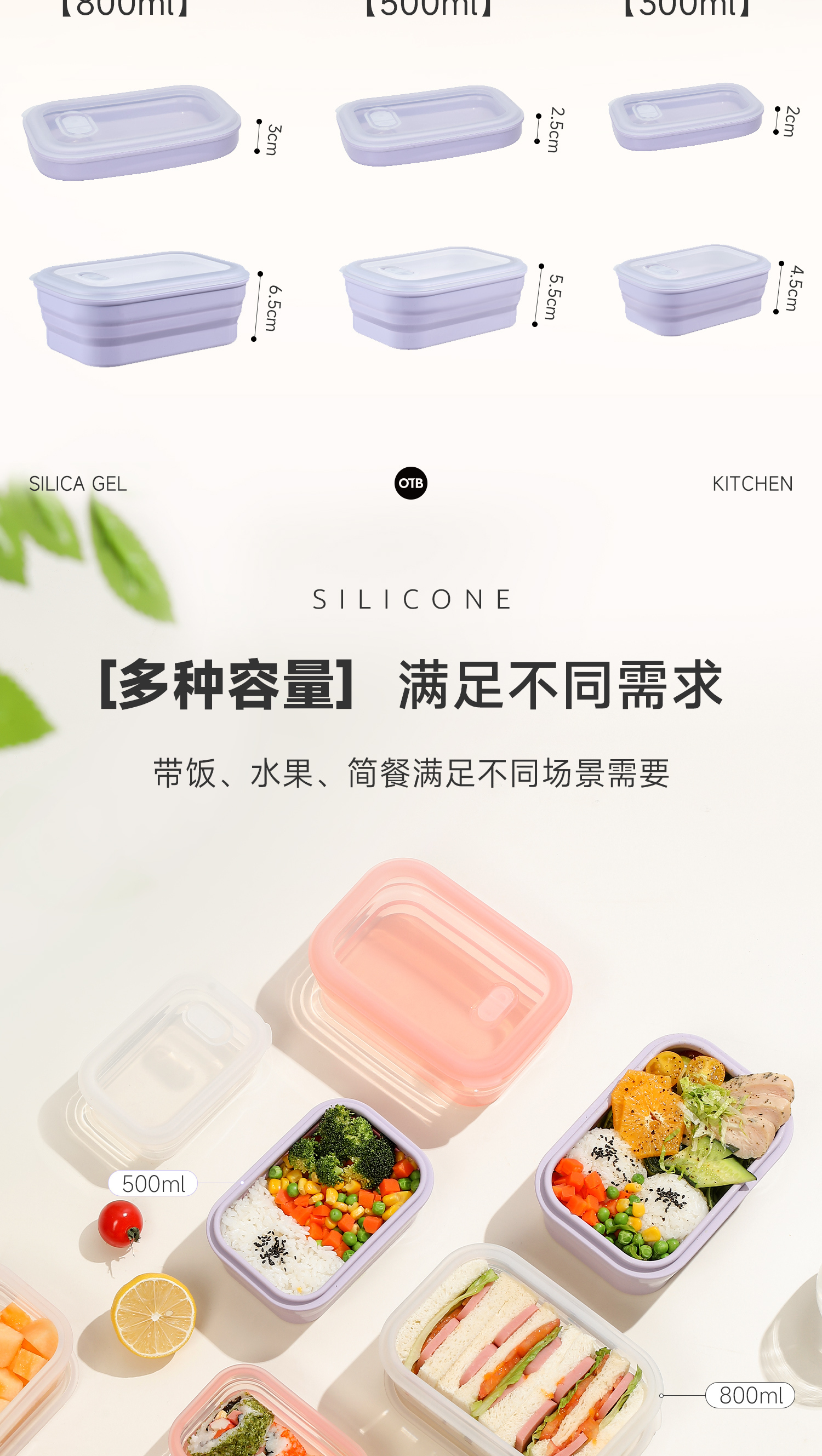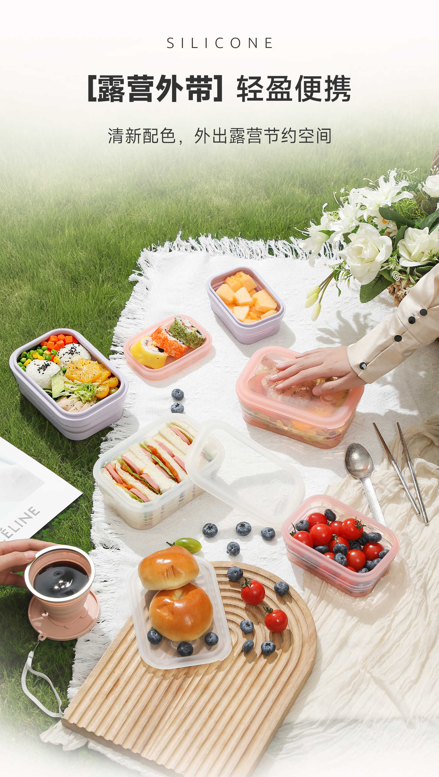 【折叠饭盒】OTB铂金硅胶 折叠饭盒 德国LFGB食品接触标准 可微波